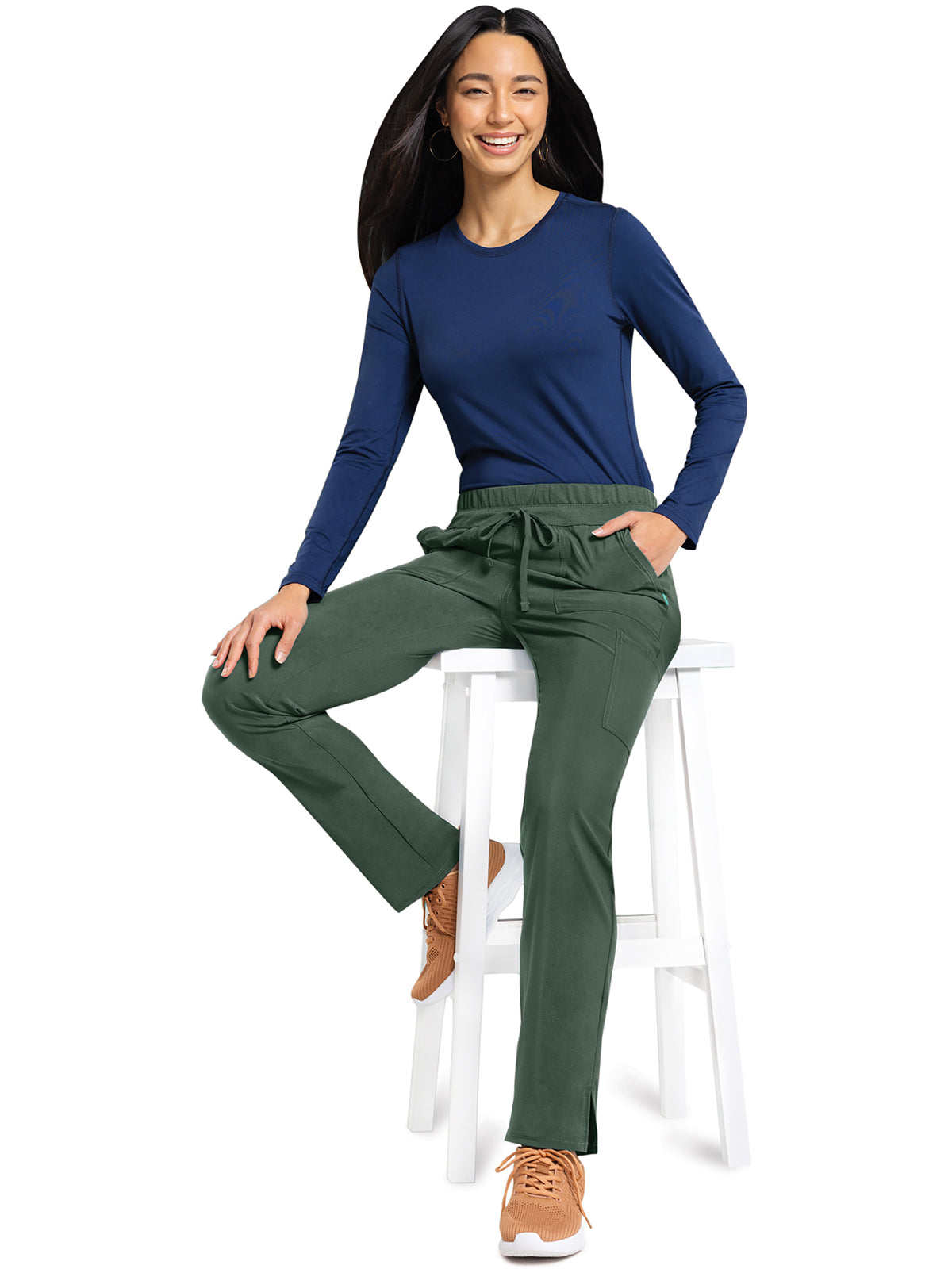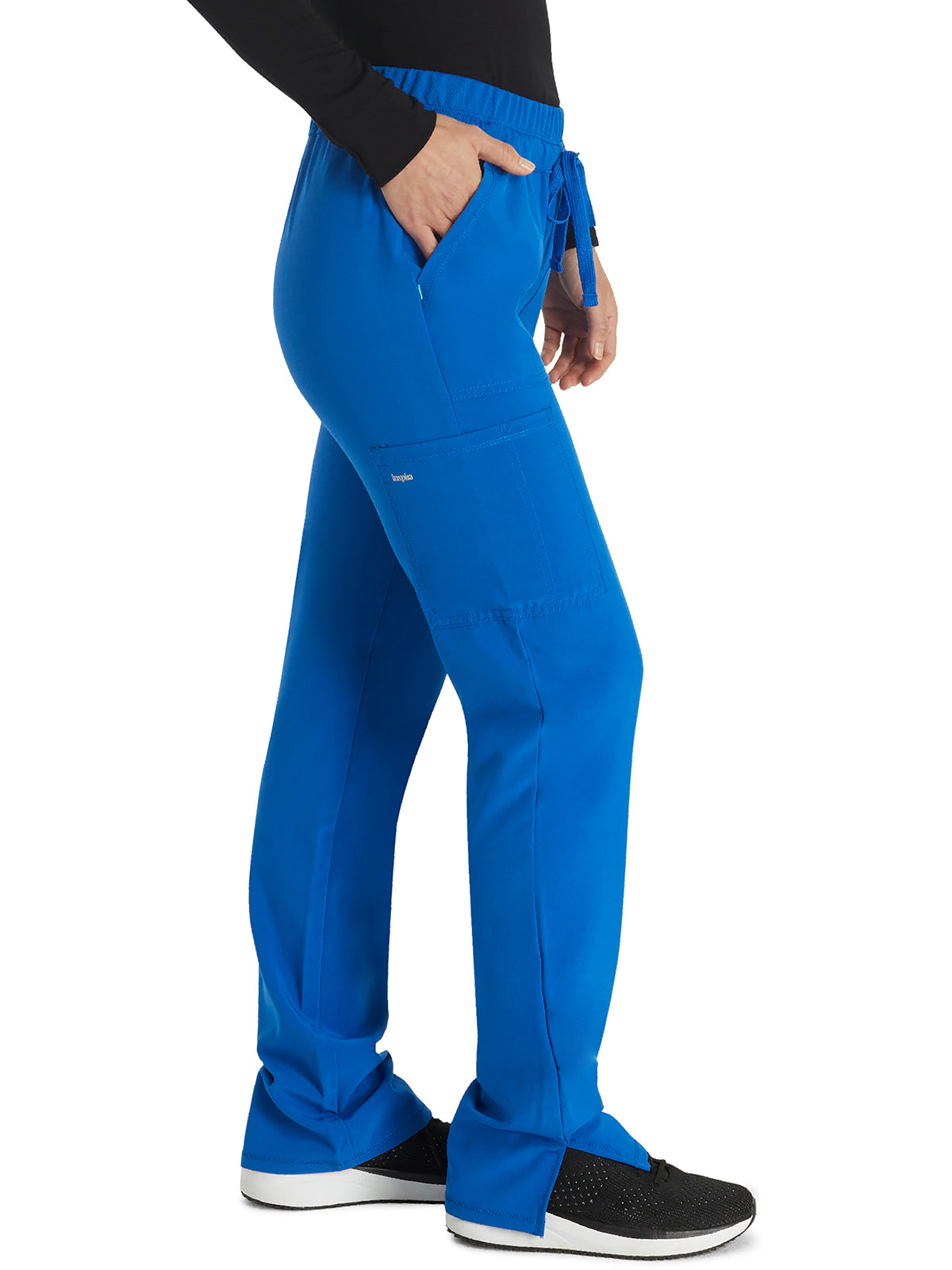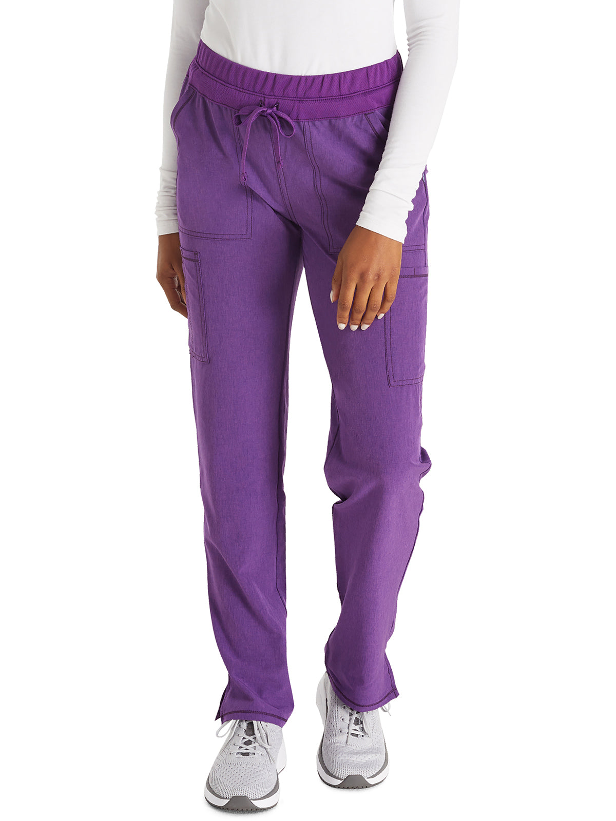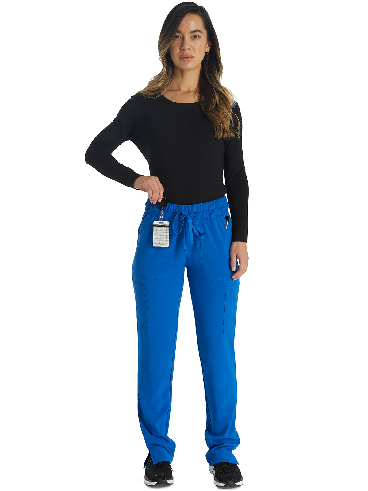 This Contemporary fit natural rise pant has a knit mesh interior elastic waistband with drawstring. There are four pockets: two front pockets and two cargo pockets. Other features include a pen slot on the wearer's left cargo pocket and side vents. Straight leg, 14" opening. Inseam: 30 1/2".