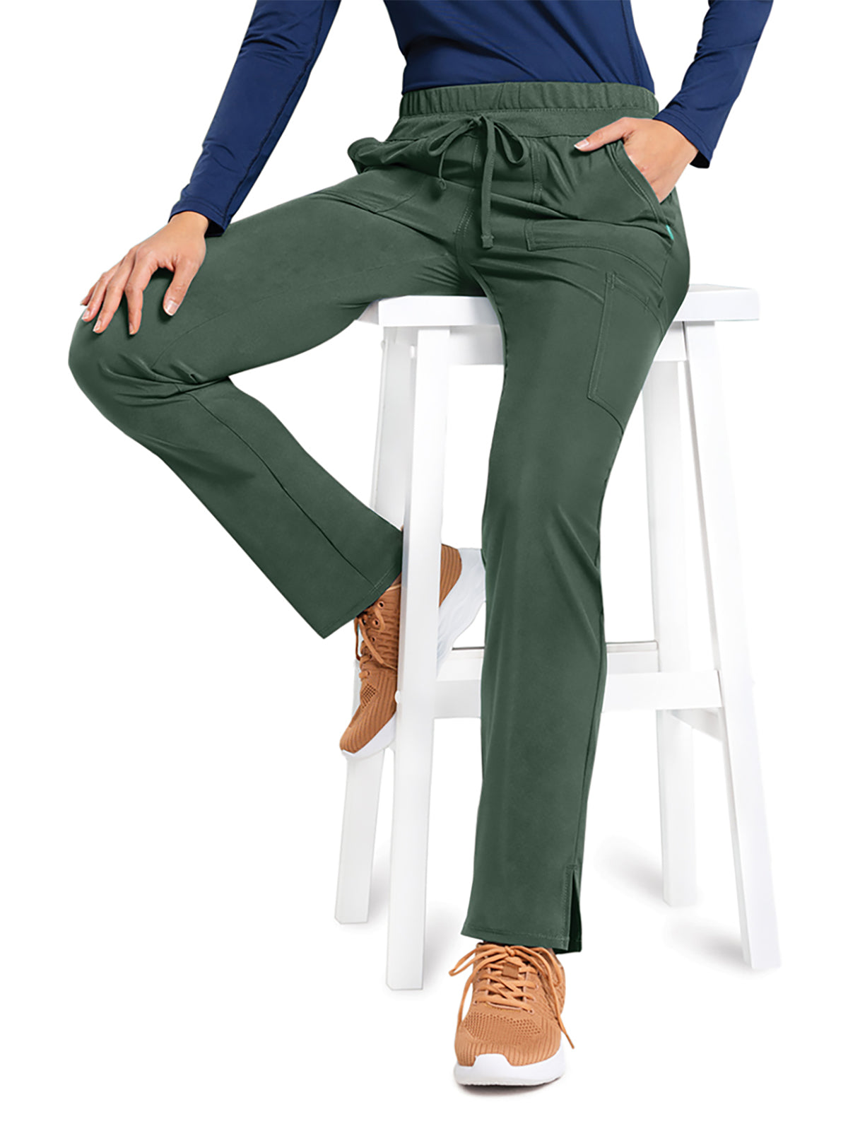 This Contemporary fit natural rise pant has a knit mesh interior elastic waistband with drawstring. There are four pockets: two front pockets and two cargo pockets. Other features include a pen slot on the wearer's left cargo pocket and side vents. Straight leg, 14" opening. Inseam: 30 1/2".