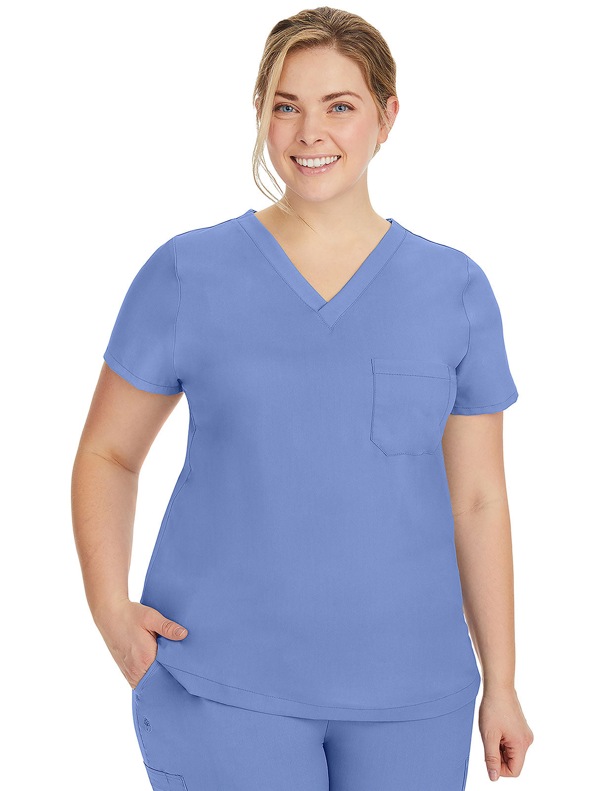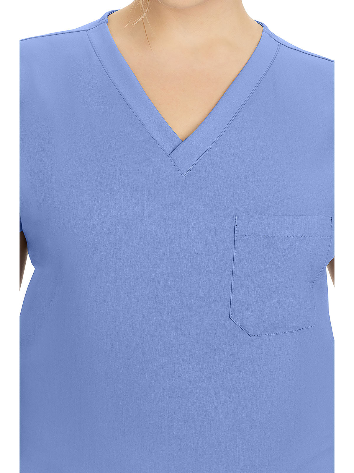 This V-neck top is kept fitted by the back yoke and darts, so no worrying about extra fabric getting in your way.