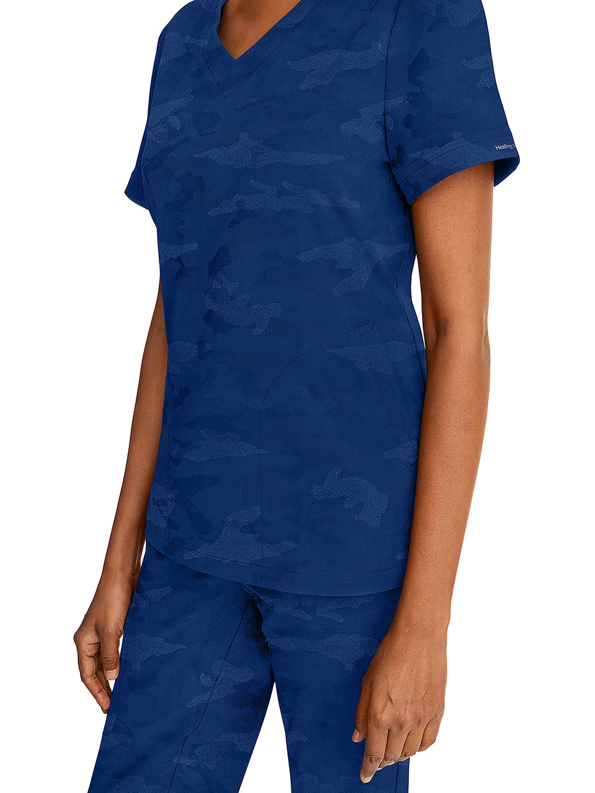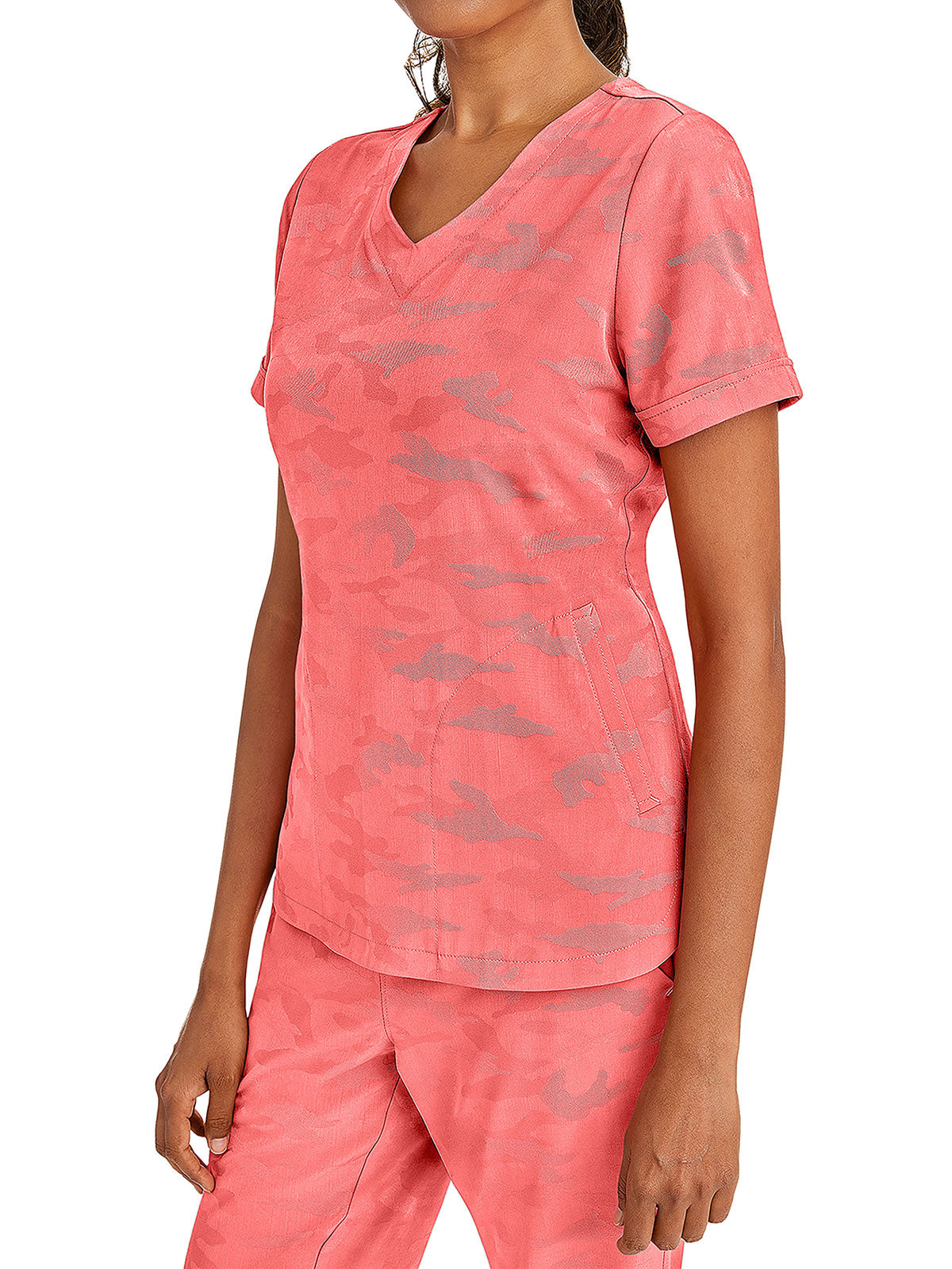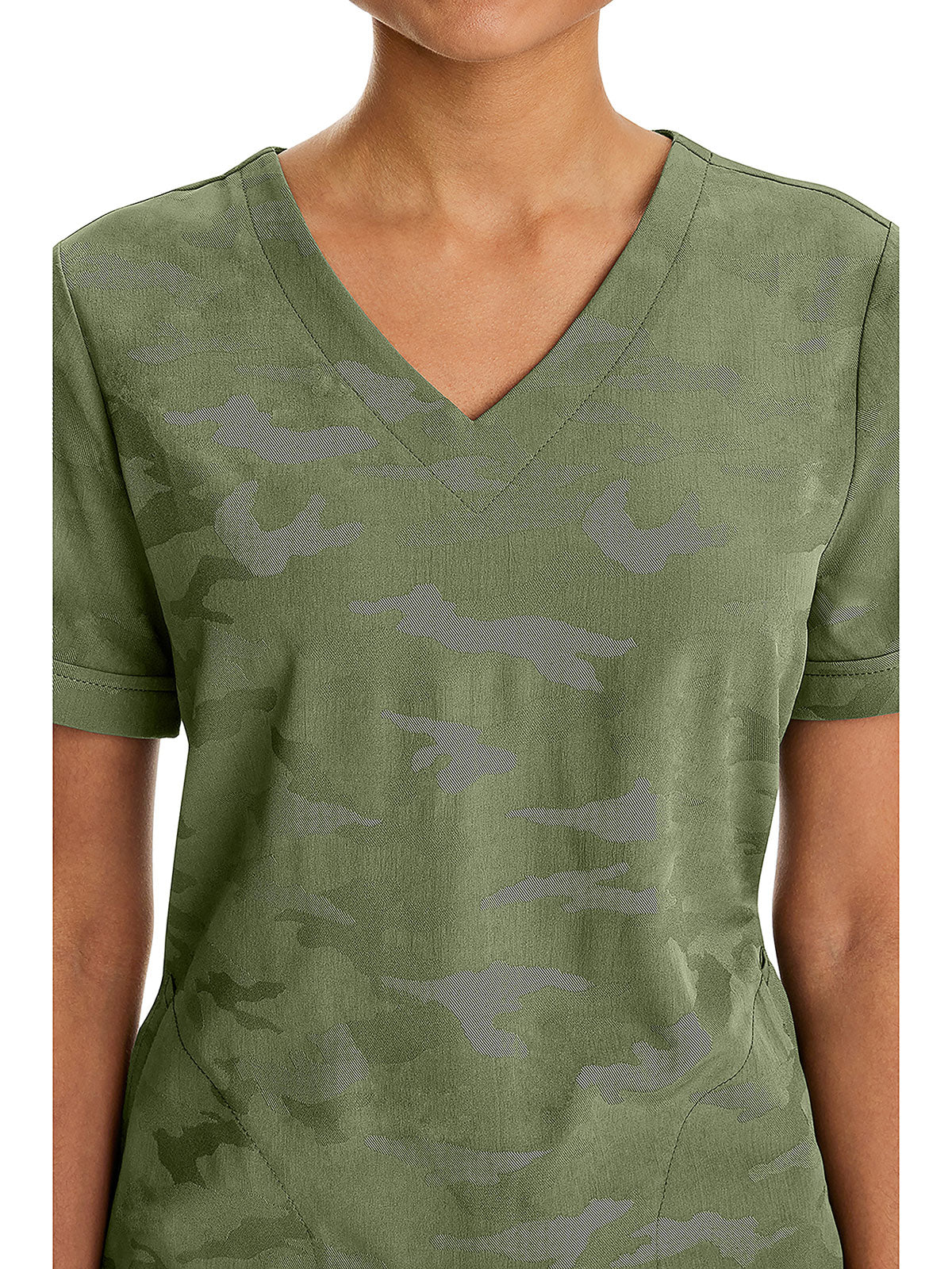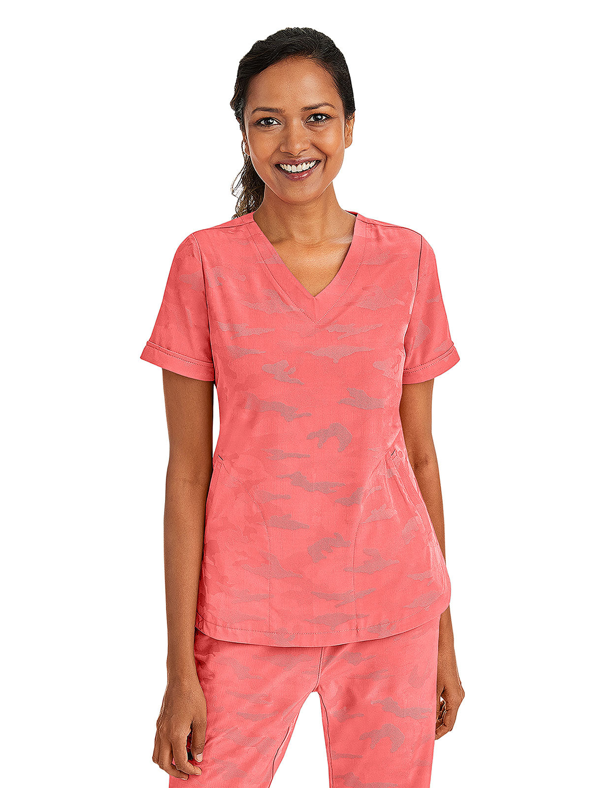 The Joy Top has jacquard fabric which is durable and wrinkle-resistant while also being super stretchy and soft.
