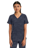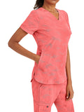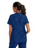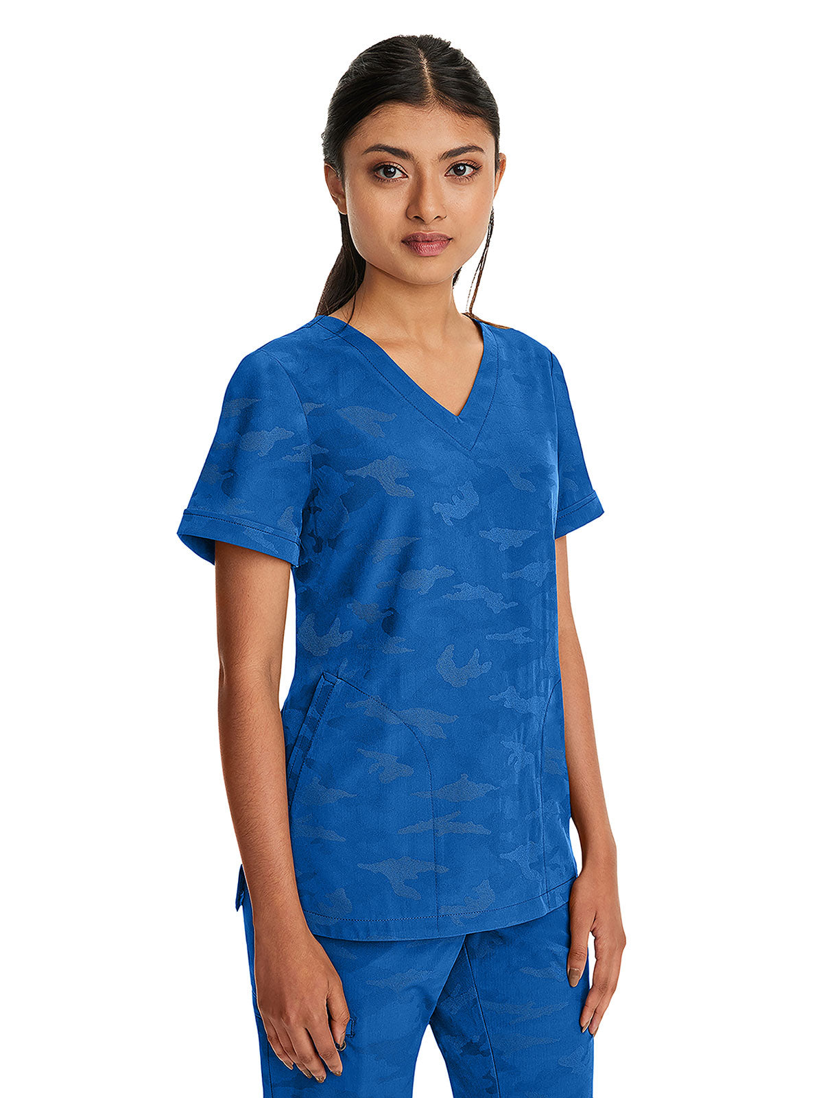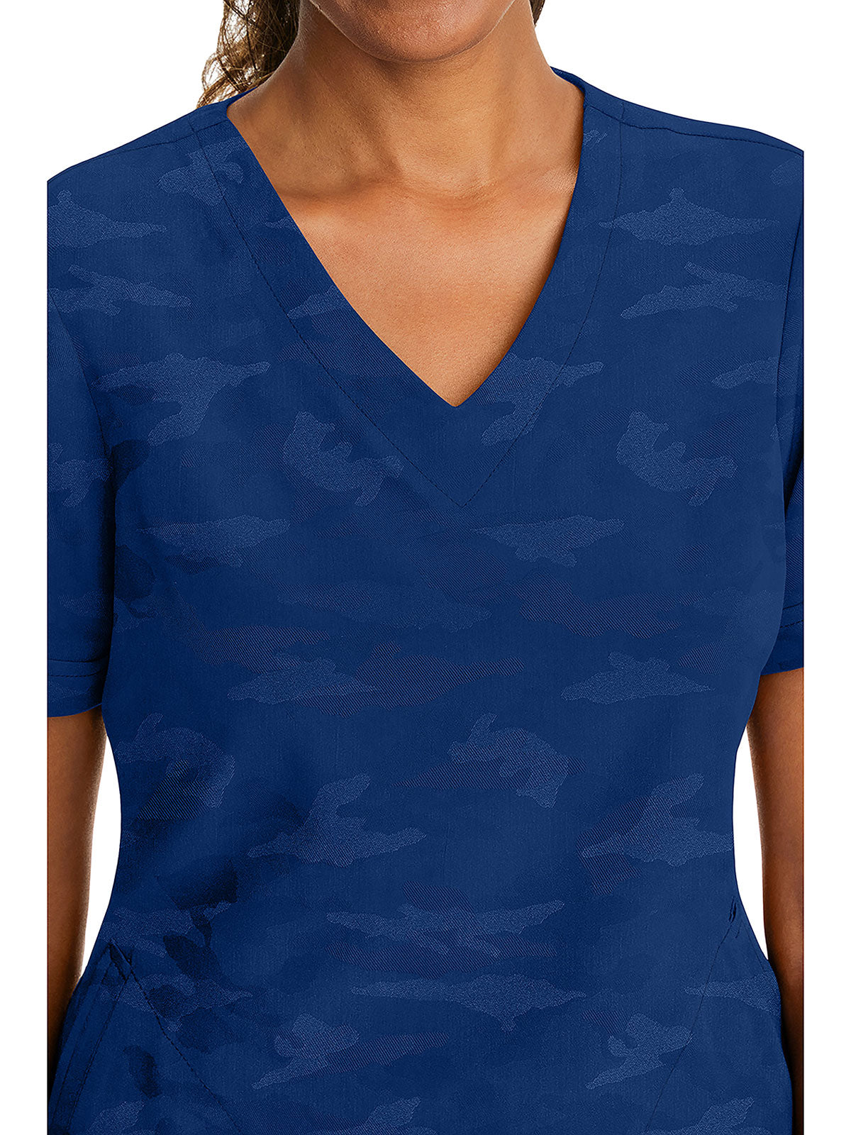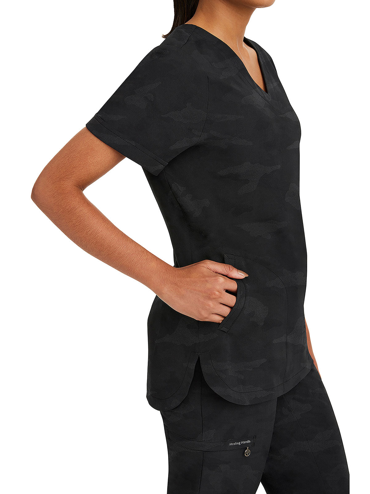 The Joy Top has jacquard fabric which is durable and wrinkle-resistant while also being super stretchy and soft.