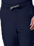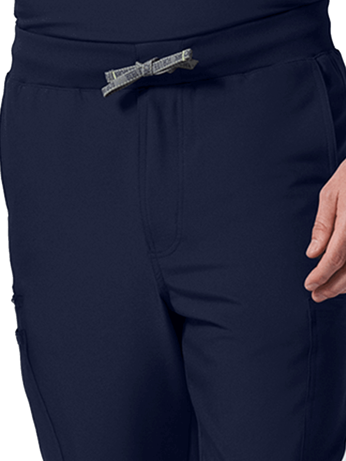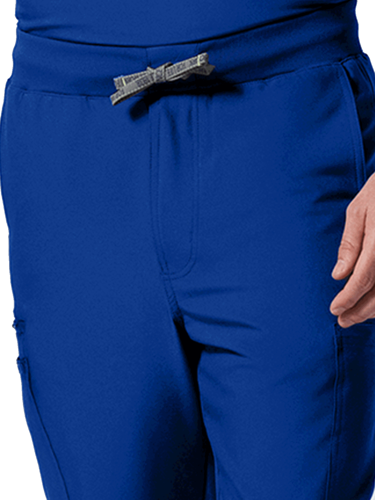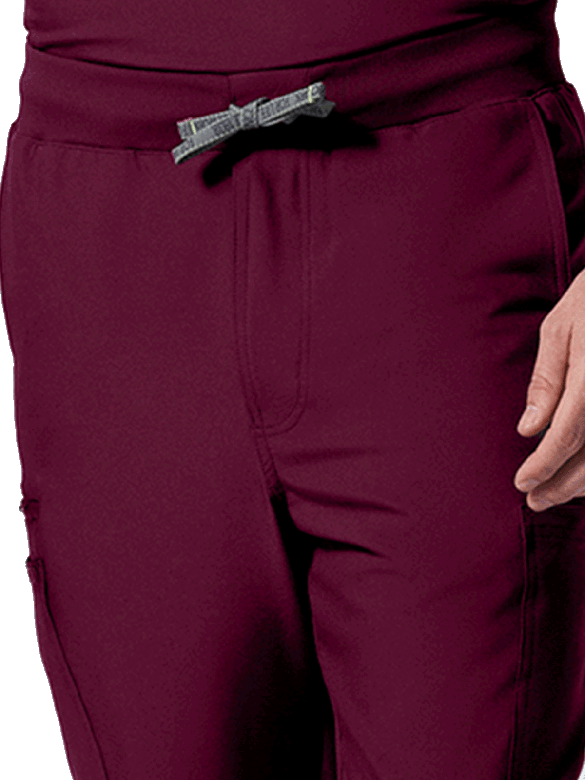 Landau jogger scrubs have 7 pockets in them. The two of them are Hip pockets, which are used to carry small things. The other two pockets are cargo pockets, which medical employees and professionals use to carry their pieces of equipment with them. The other two pockets are back pockets used to carry wallets and money. And the one is a zipper cargo pocket.