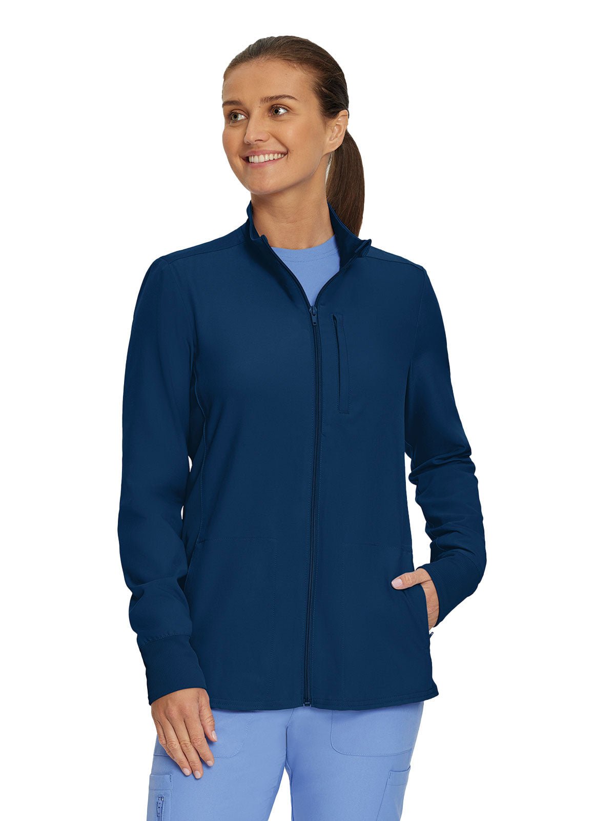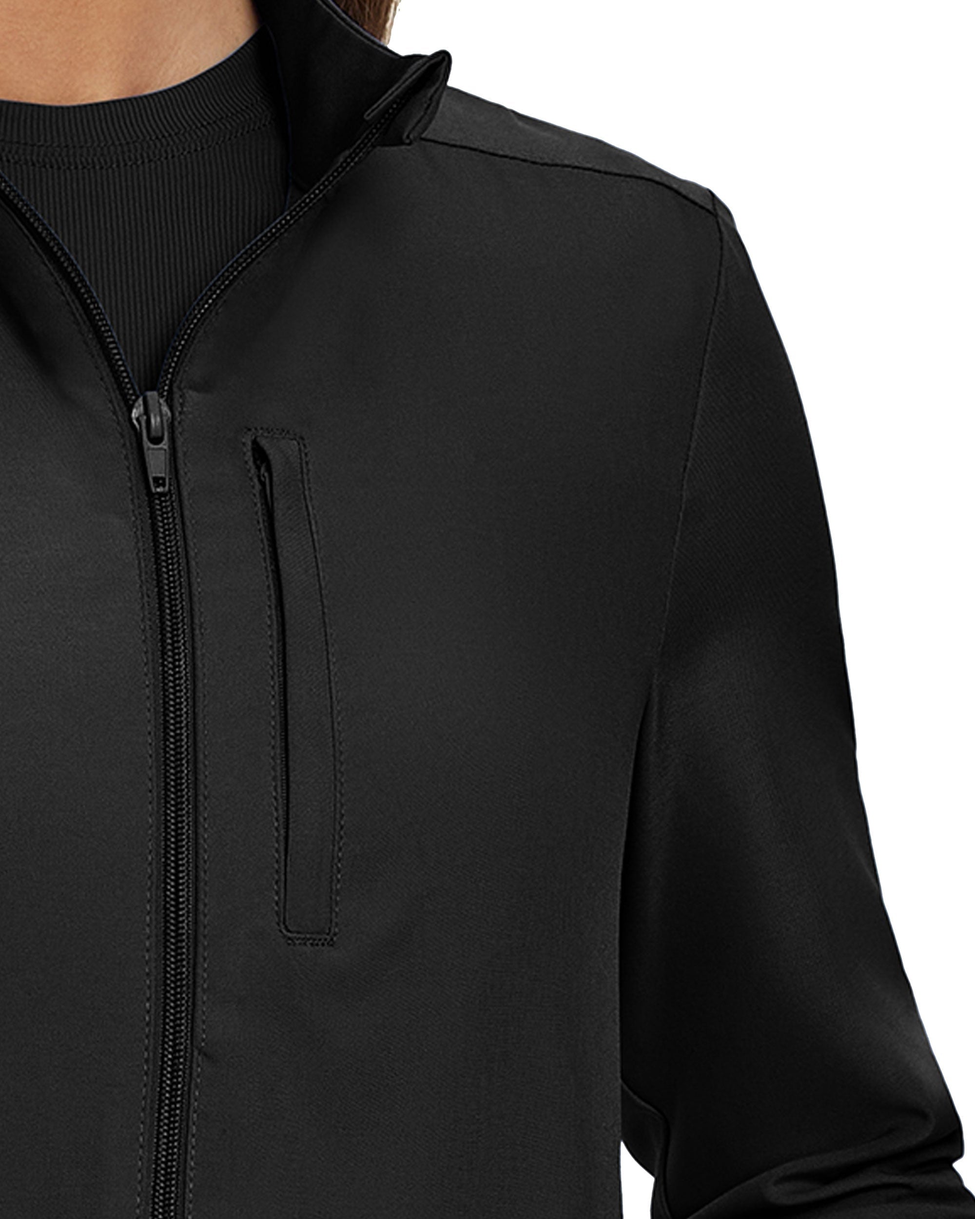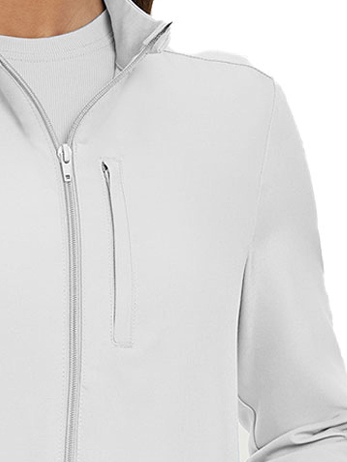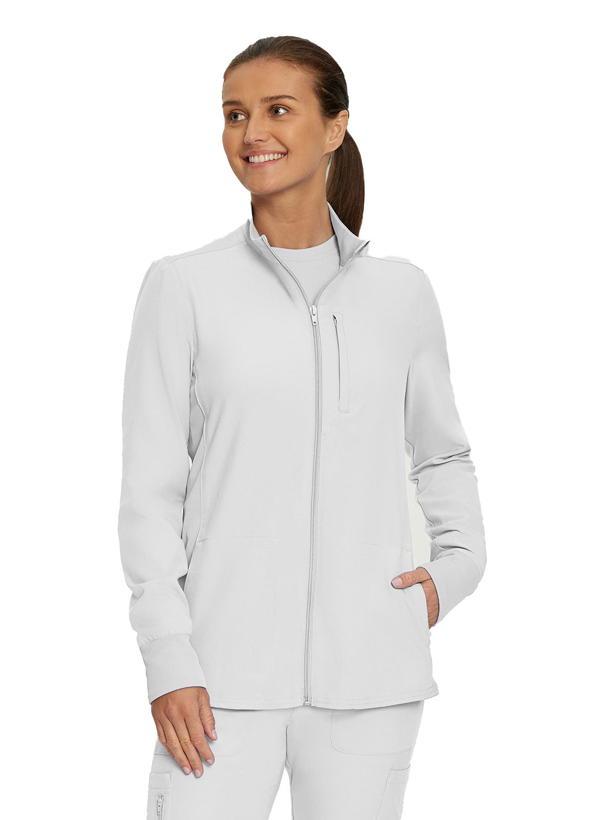 This must-have women's sporty zip-front scrub jacket is the perfect layering outerwear over your scrub top and has great functional side seam pockets and a zipper chest pocket to secure your personal essentials. Our modern tailored fit flatters your shape, while our moisture-wicking super stretch fabric provides the comfort and flexibility your work requires throughout the day.
