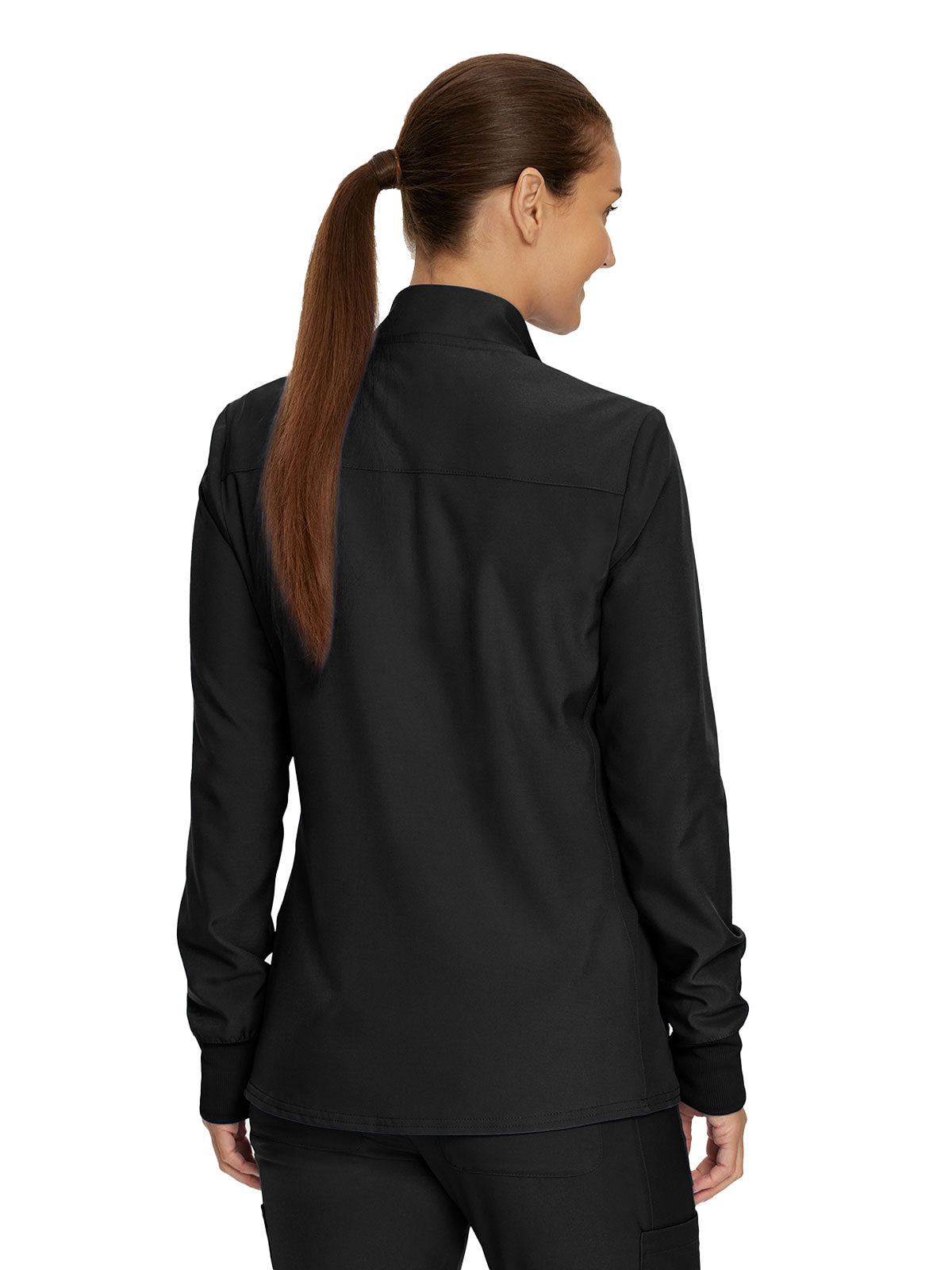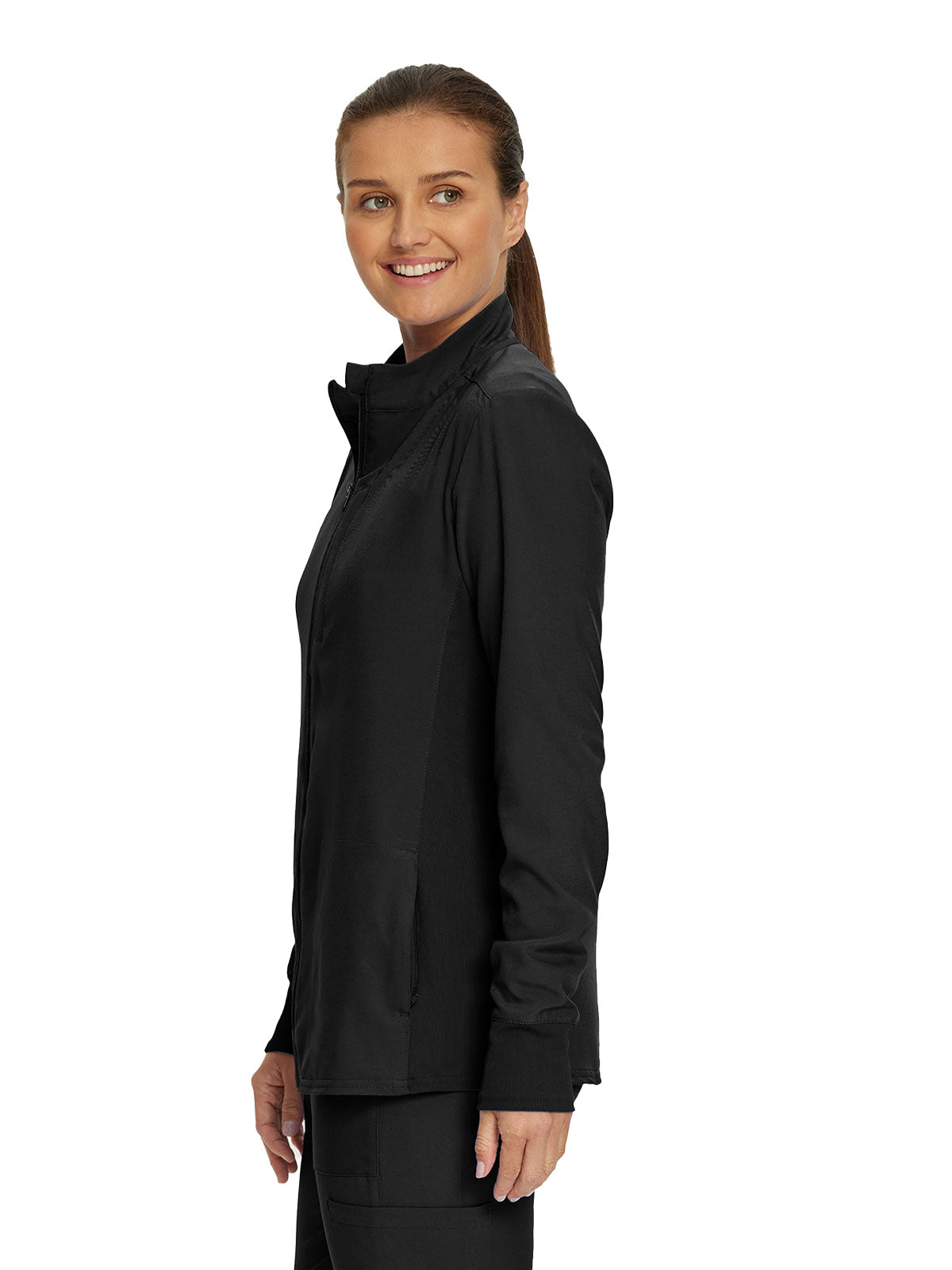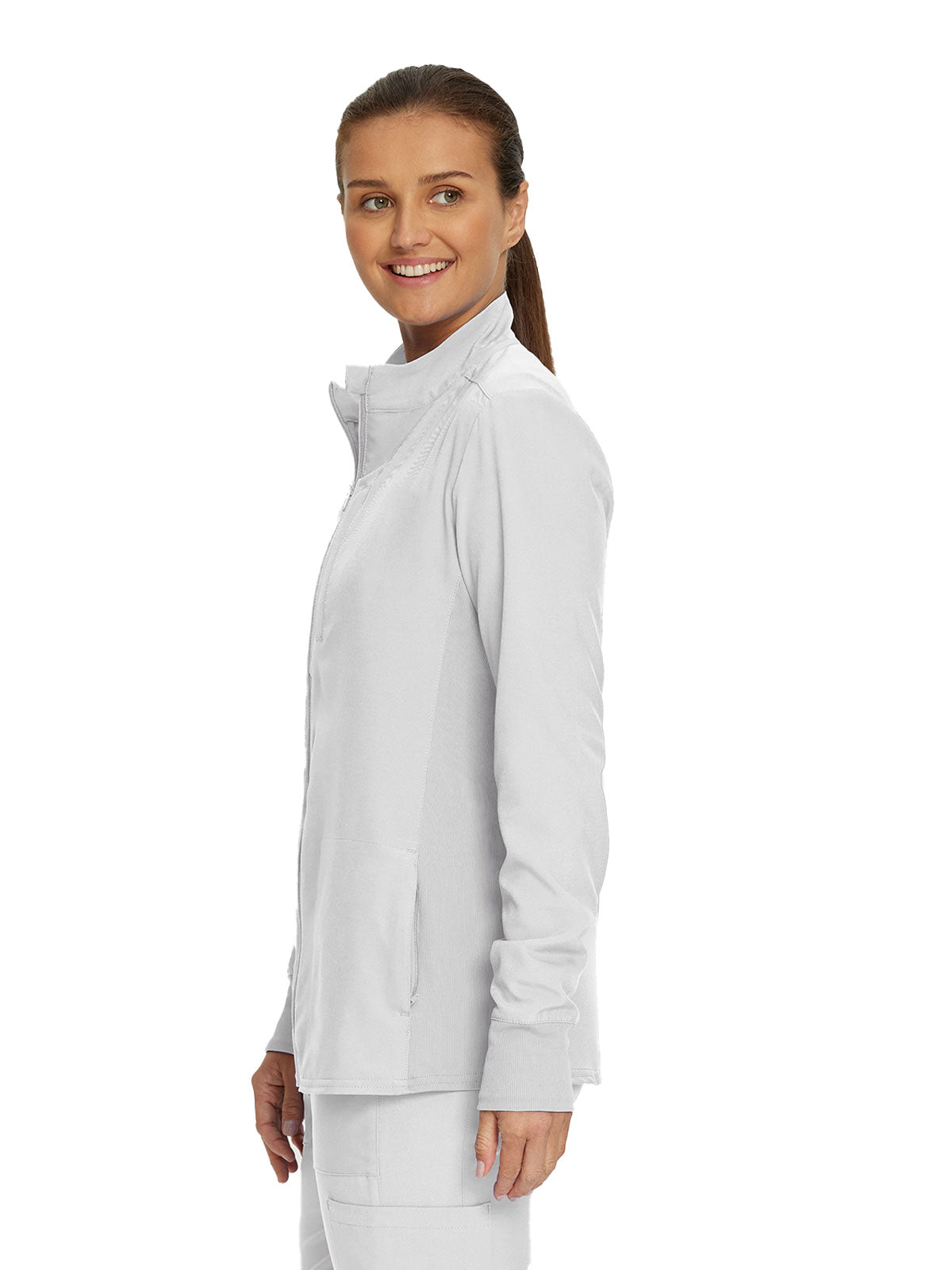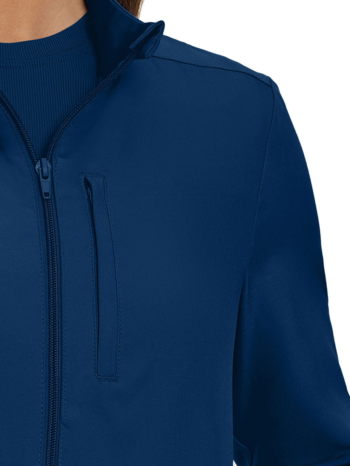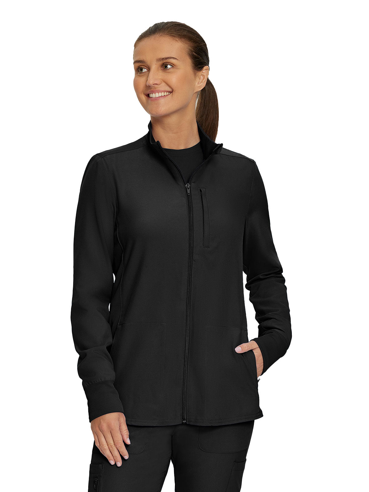 This must-have women's sporty zip-front scrub jacket is the perfect layering outerwear over your scrub top and has great functional side seam pockets and a zipper chest pocket to secure your personal essentials. Our modern tailored fit flatters your shape, while our moisture-wicking super stretch fabric provides the comfort and flexibility your work requires throughout the day.