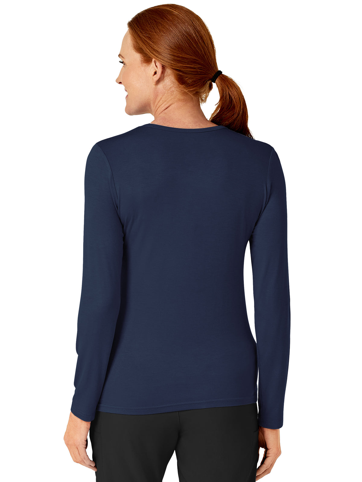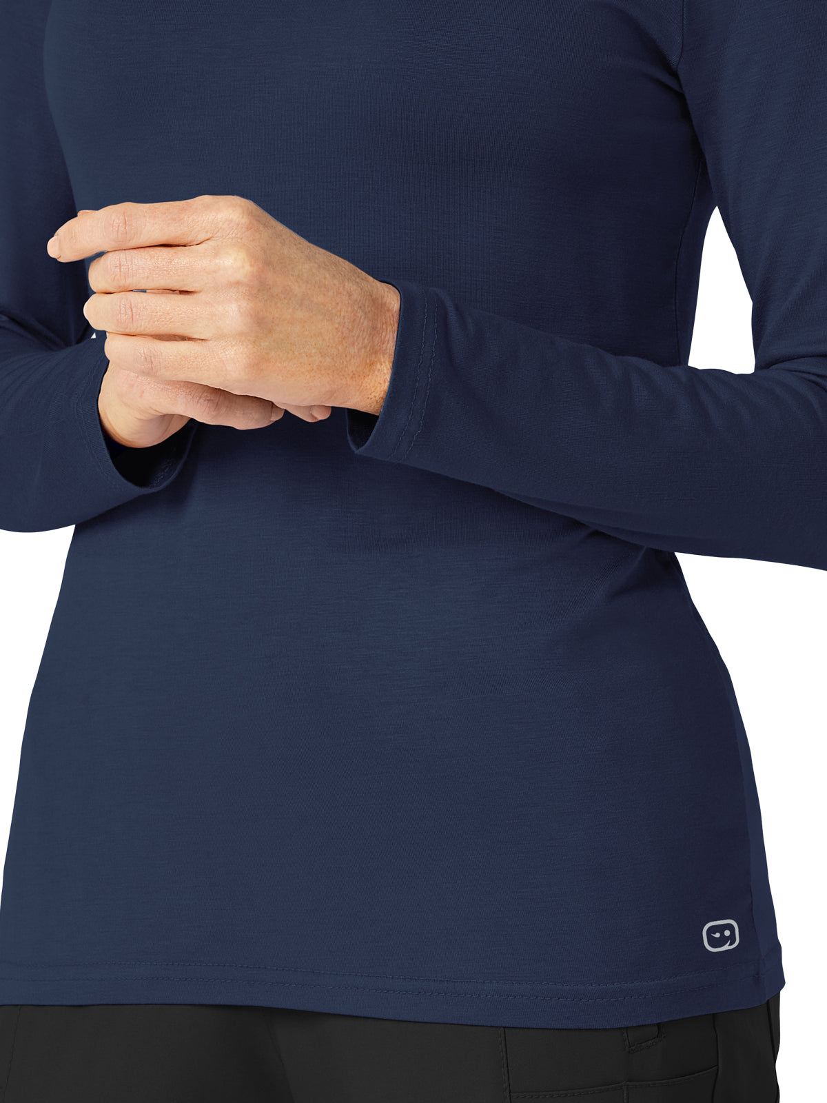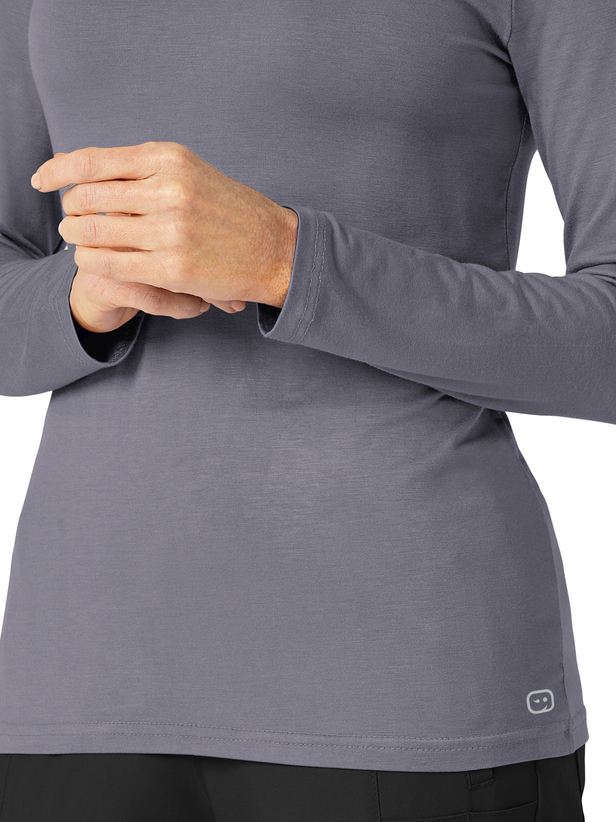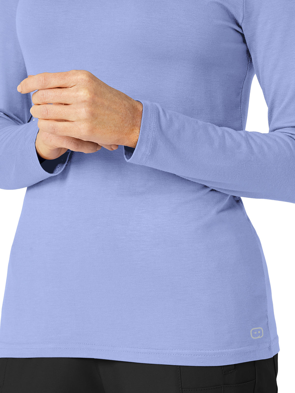 The Wink Silky Long Sleeve Tee is a comfortable and luxurious layering piece made from soft rayon and spandex with a longer length for added coverage. It comes in vibrant colors, pairs well with Wink scrubs, and is suitable for all occasions.