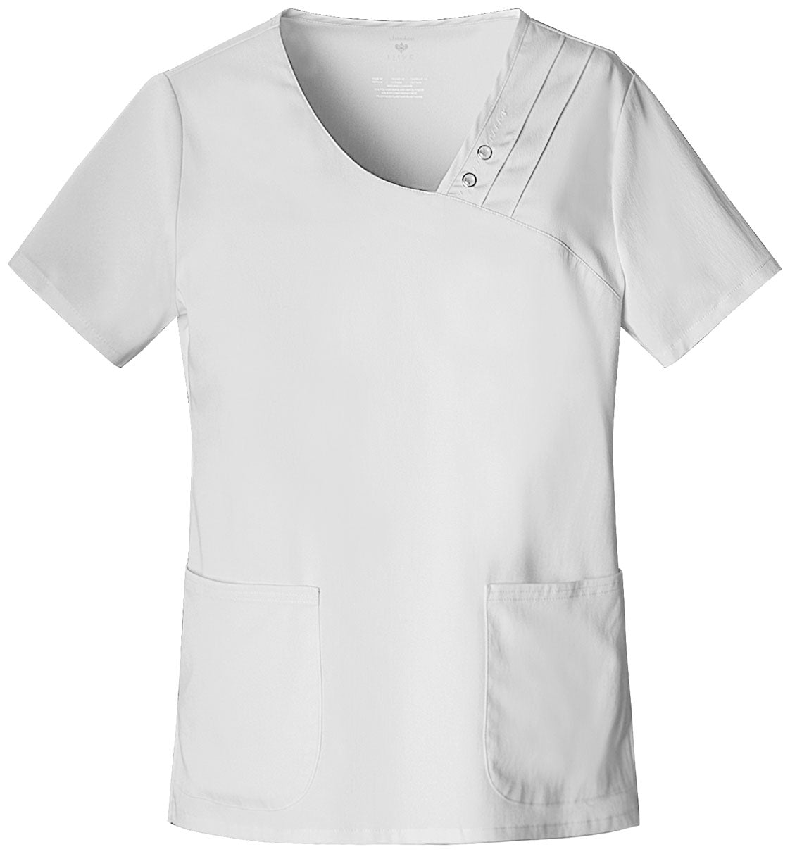 | A Modern Classic fit, asymmetrical V-neck top features multiple pin-tucks, Luxe logo snaps and zigzag stitching at neckline. Back release pleats, front curved patch pockets, and side vents complete the picture. Center back length: 26" |