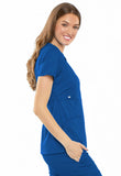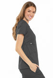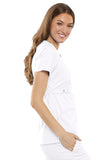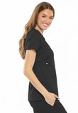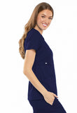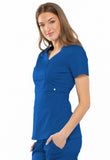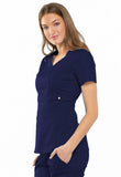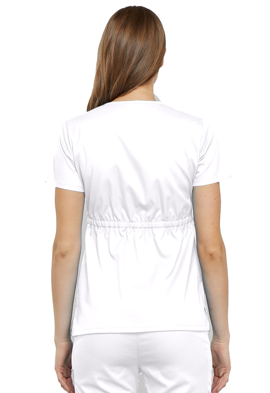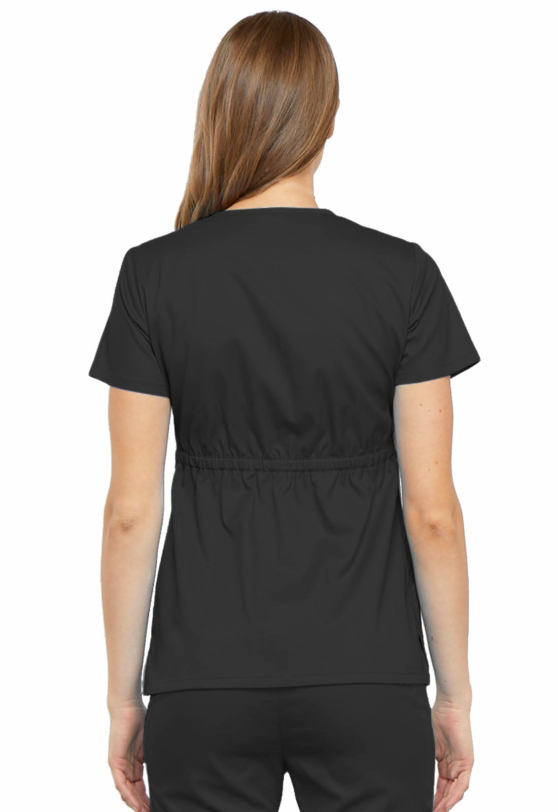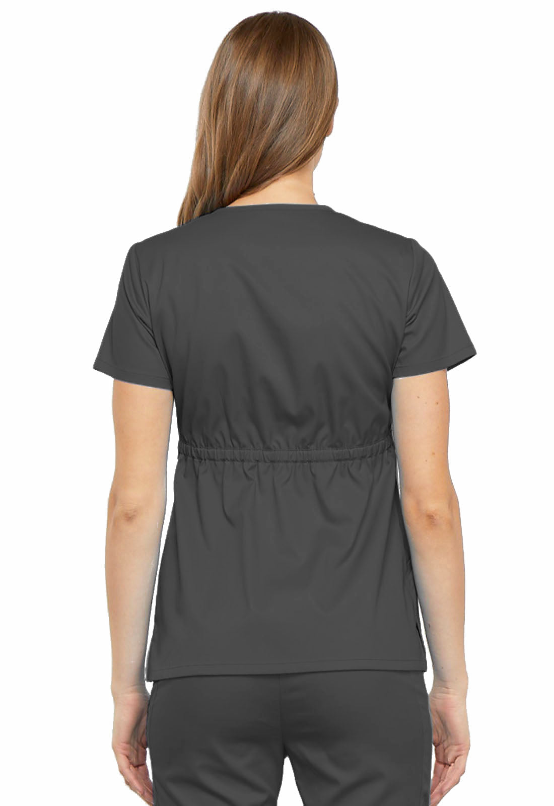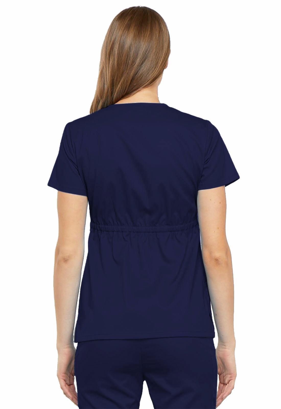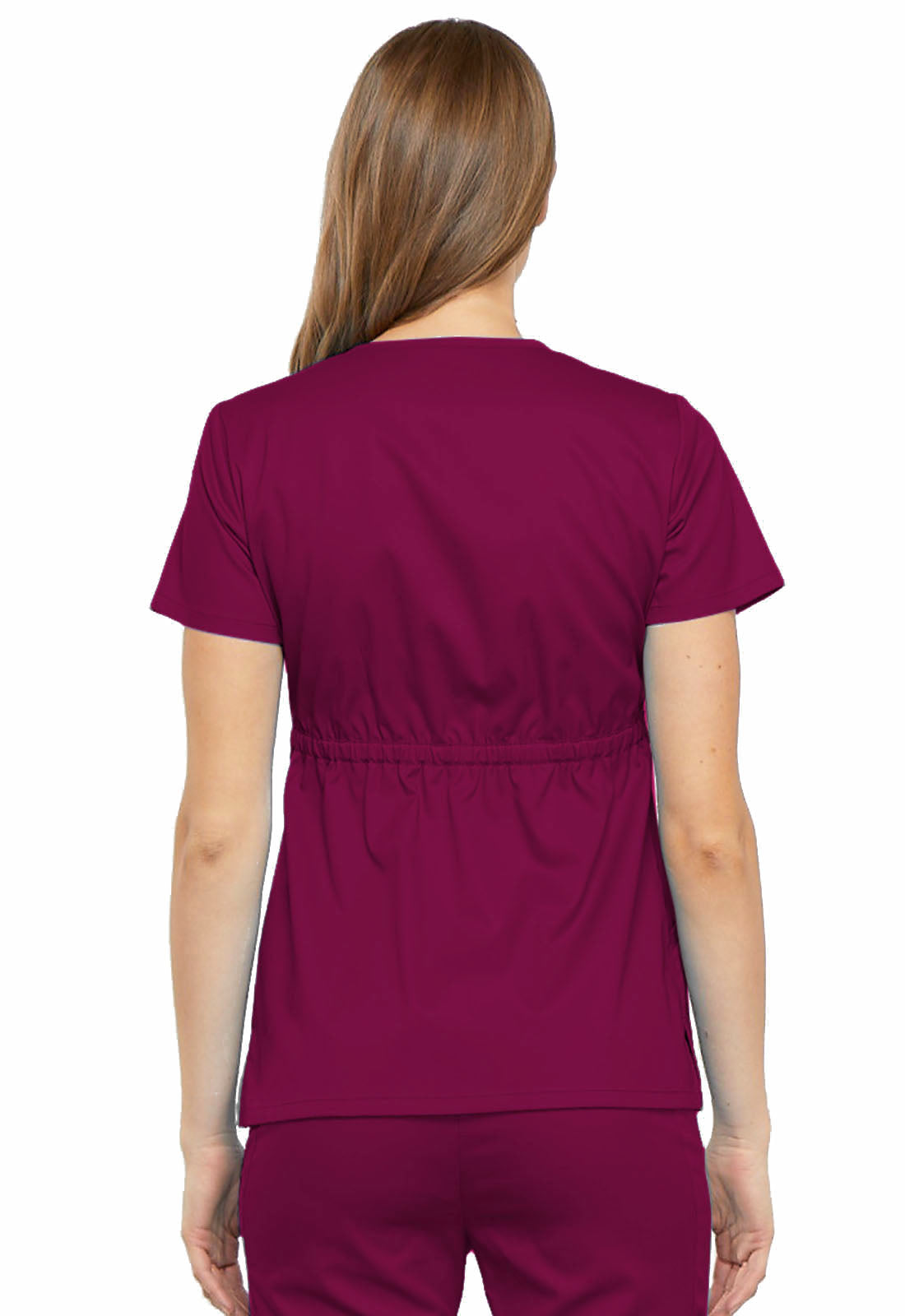| A Contemporary fit mock wrap top has piping around front neckline, front princess seams, self belt at empire waist with Luxe logo snaps, angled patch pockets, back elastic, and side vents. Center back length: 25 1/2" |