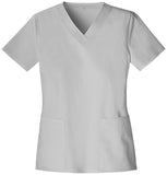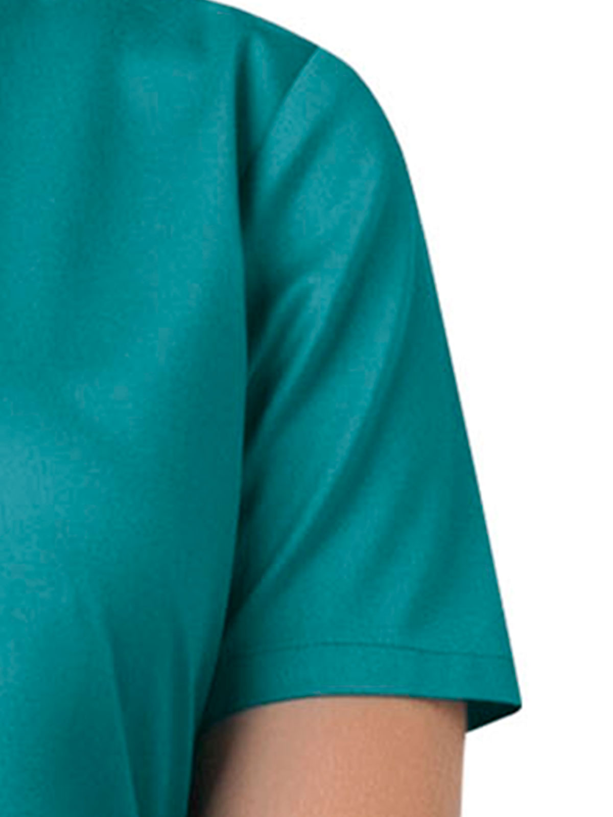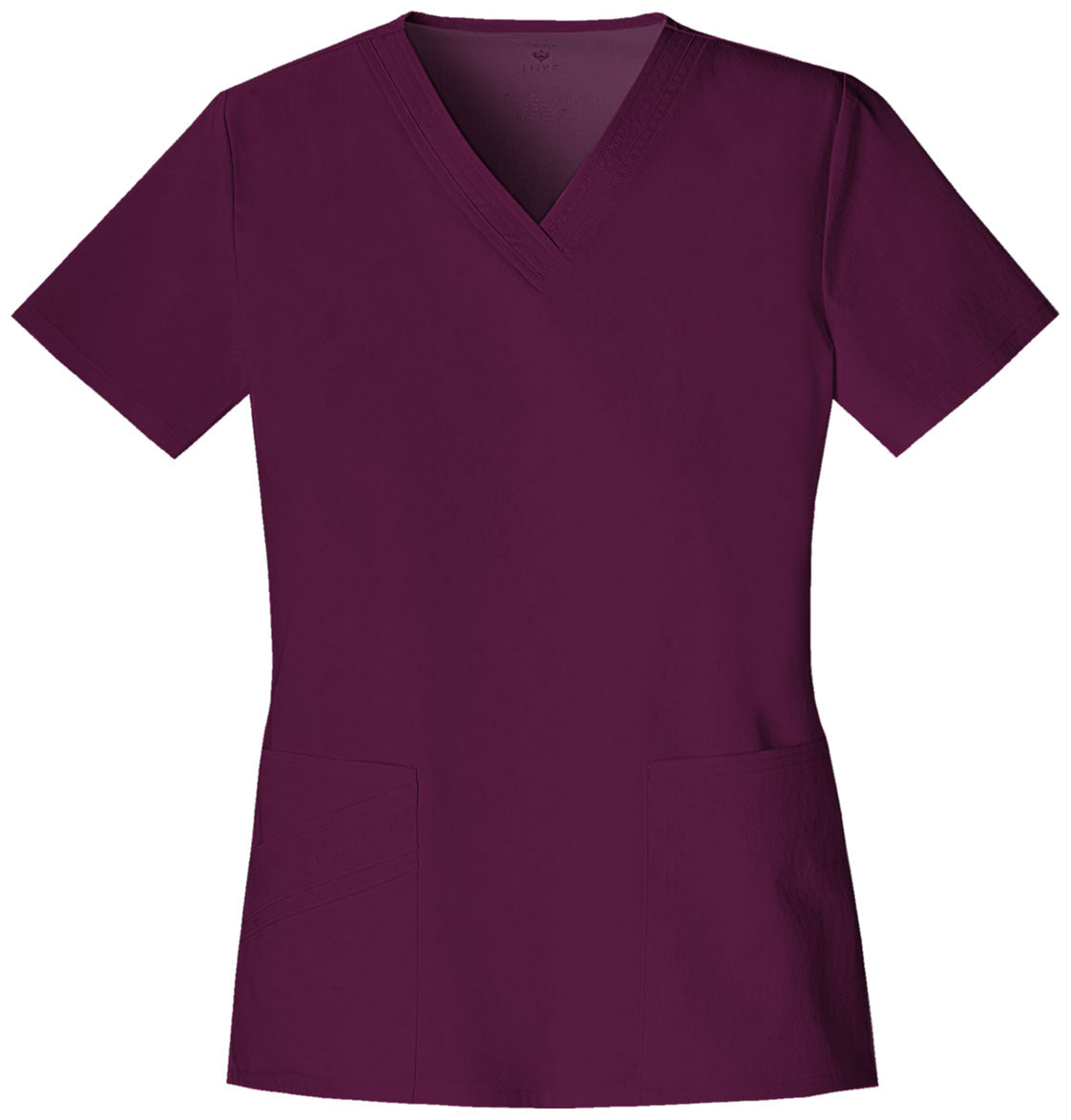 A Modern Classic fit V-neck top features tonal zigzag stitching detail on the left neckband, two patch pockets, and an additional angled pocket with pin-tucks and tonal zigzag stitching. Back release pleats and side vents complete this picture. Center back length: 26"