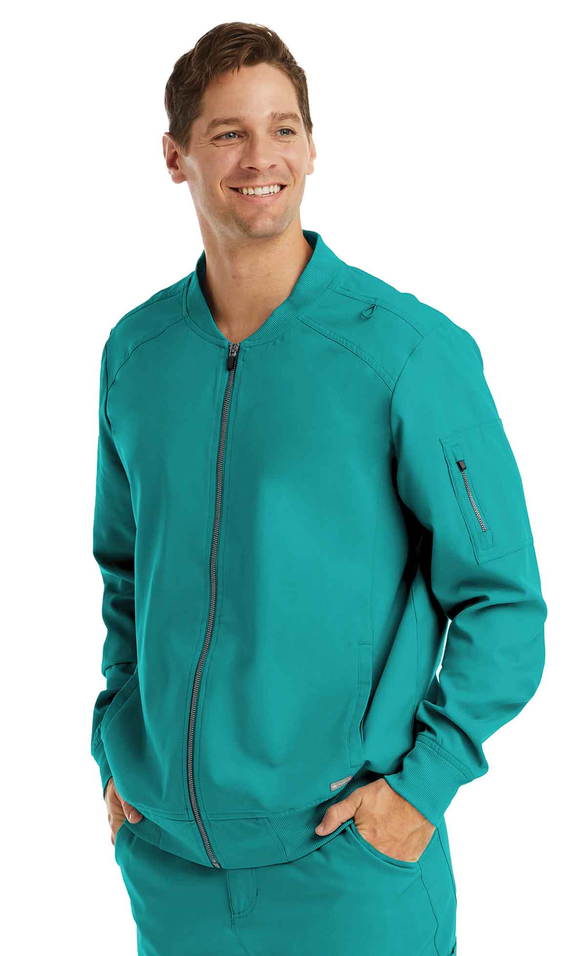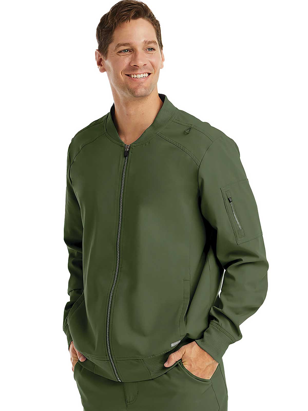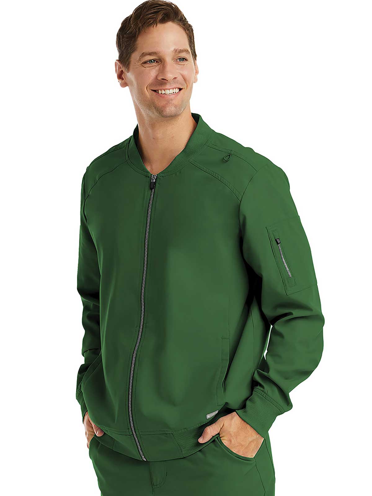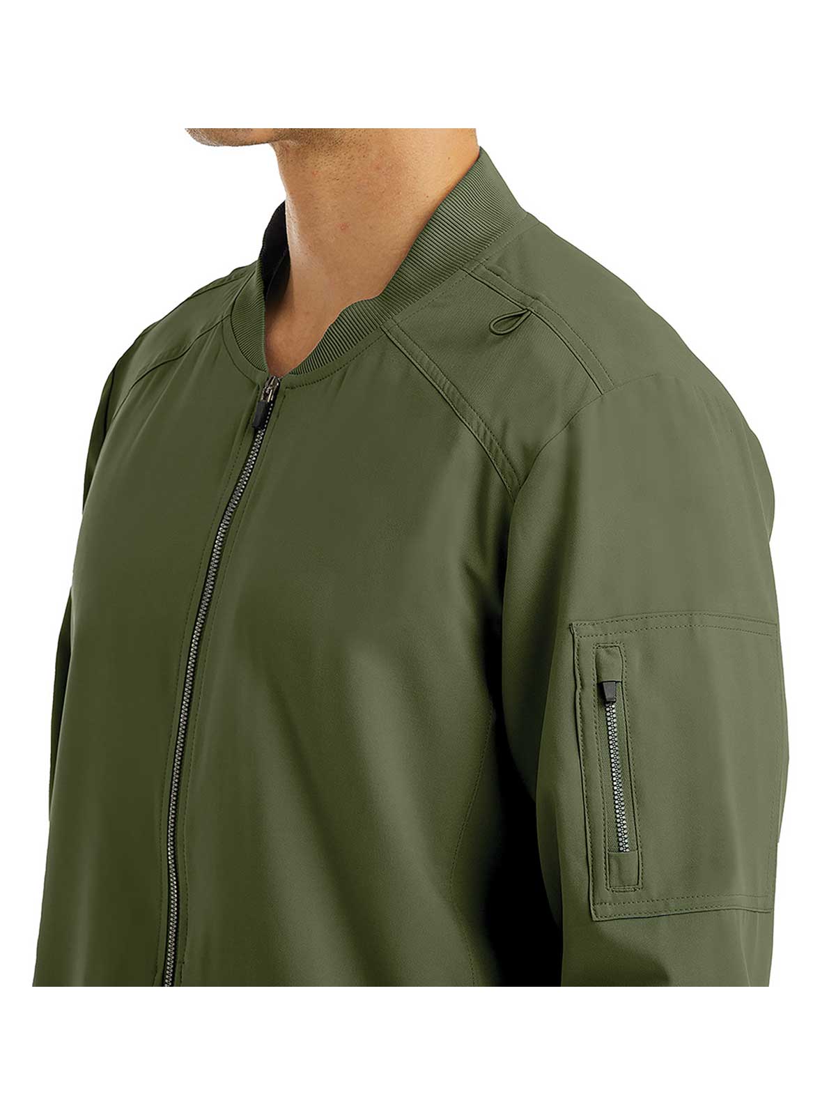 - Zippered patch pocket at sleeve