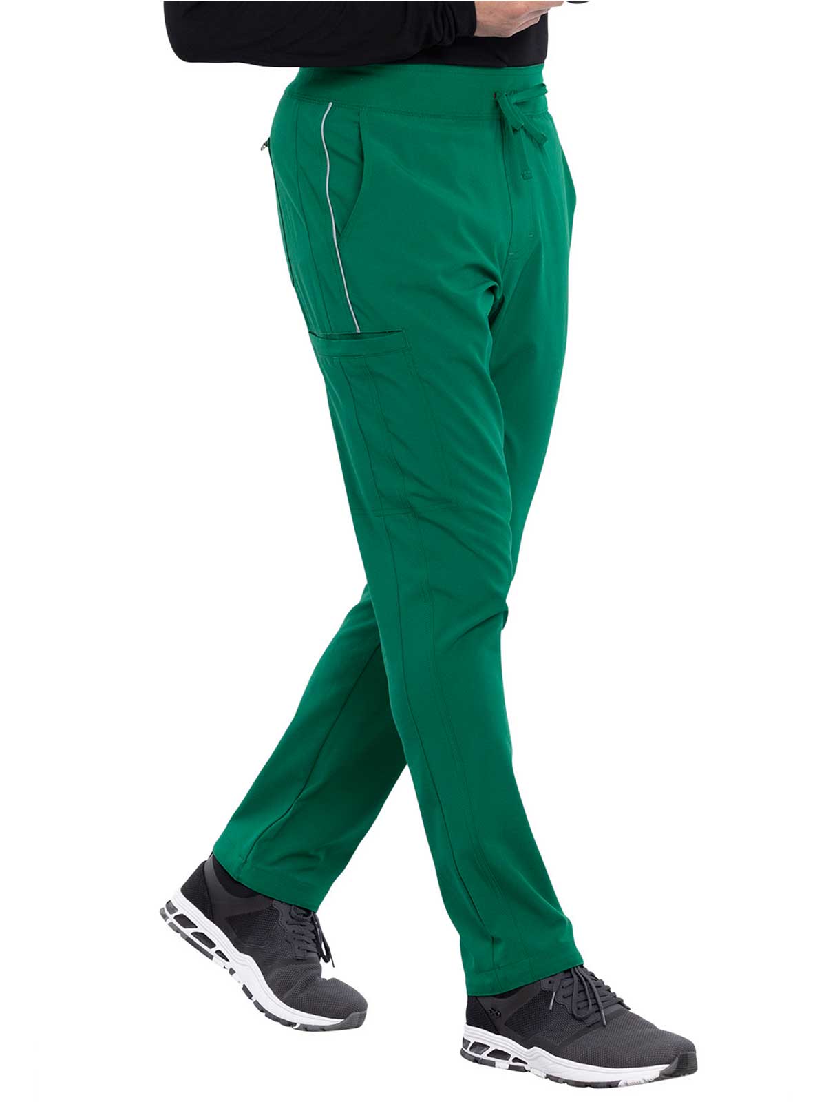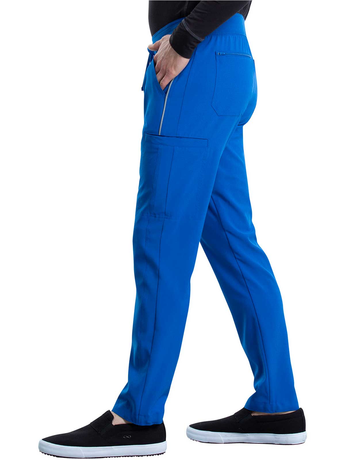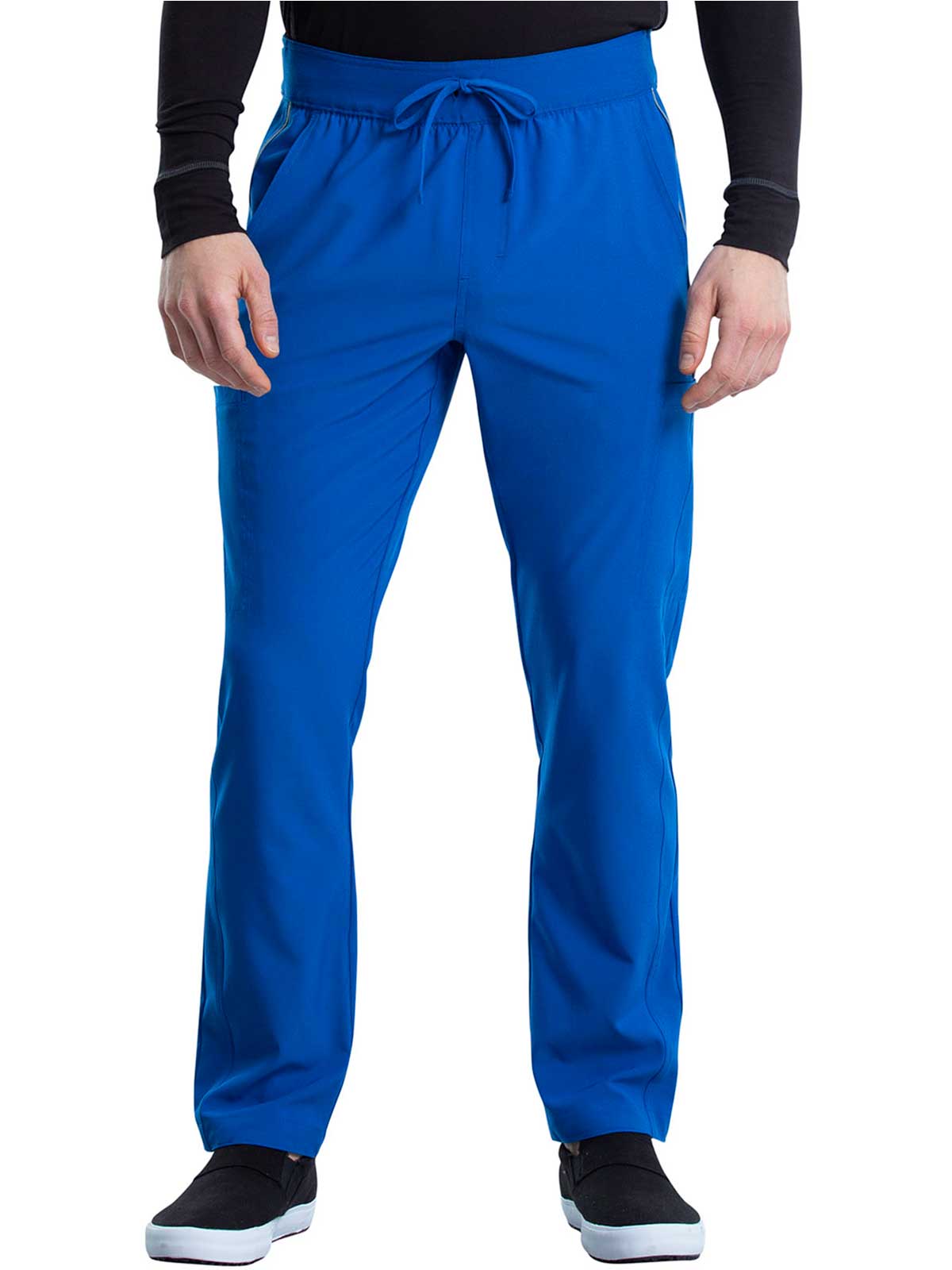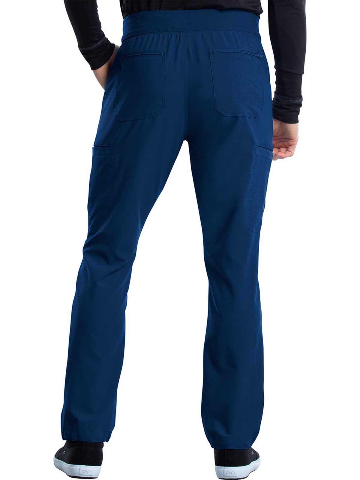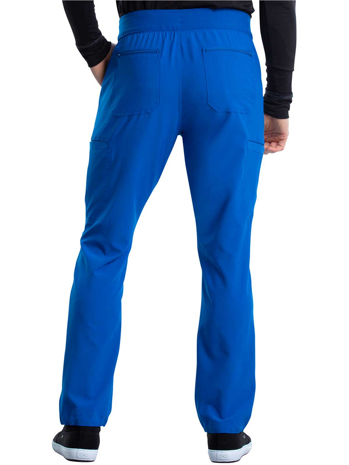 The Iflex by Cherokee Men's Tapered Cargo Scrub Pant. This Men's Modern fit pant has a knit waistband backed with logo elastic and drawstring. Versatile look and takes the guess work out of your morning routine.