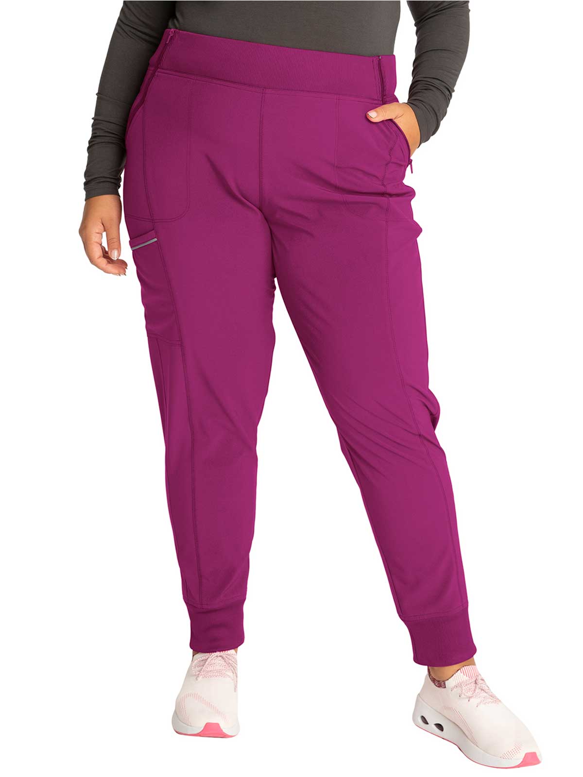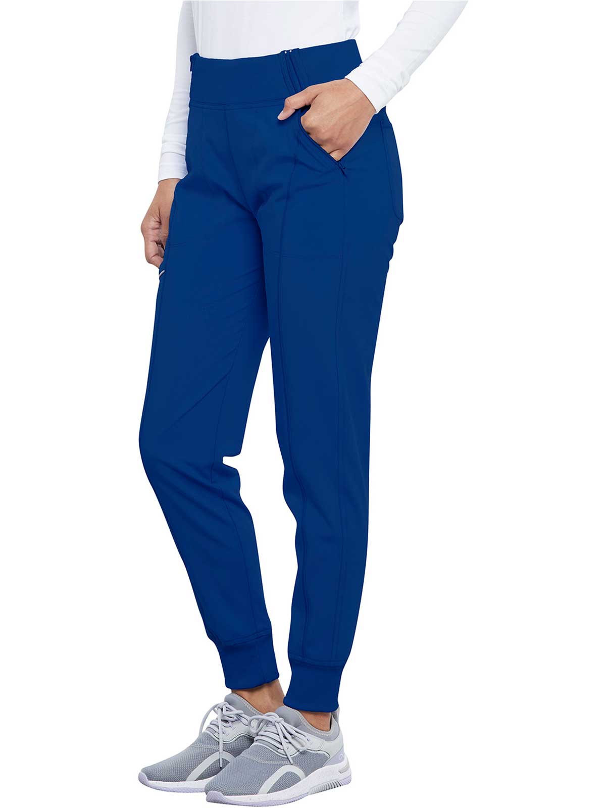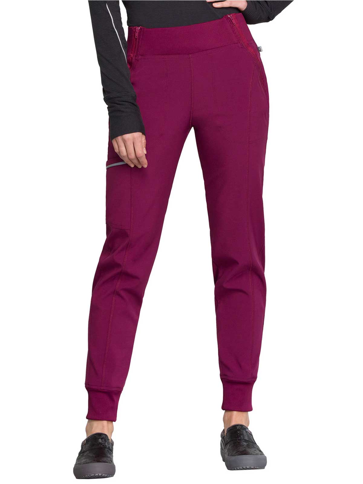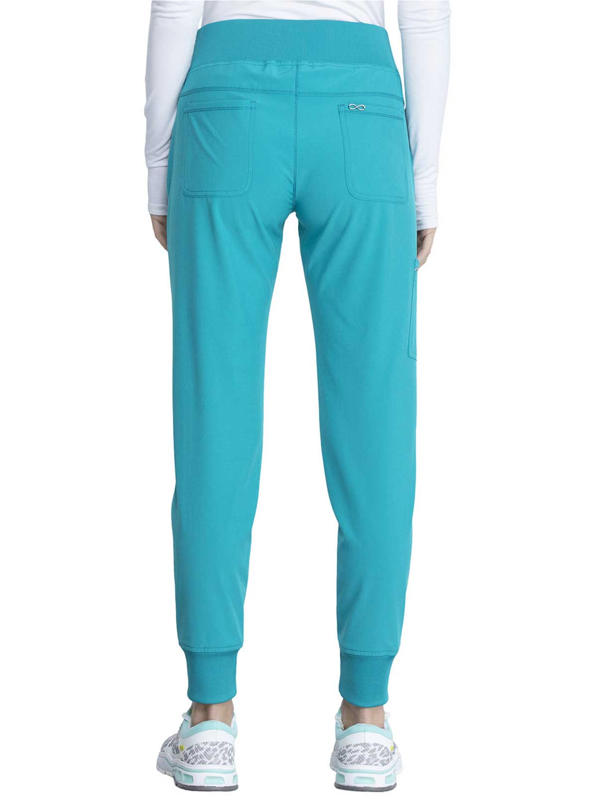 The Infinity Women's Elastic Waistband Jogger Scrub Pant. has a Rib-knit jogger band at the ankles The comfortable stretch poplin fabric and super stretchy rib knit are the perfect combo for healthcare professionals. soft knit for an athletic feel and look.