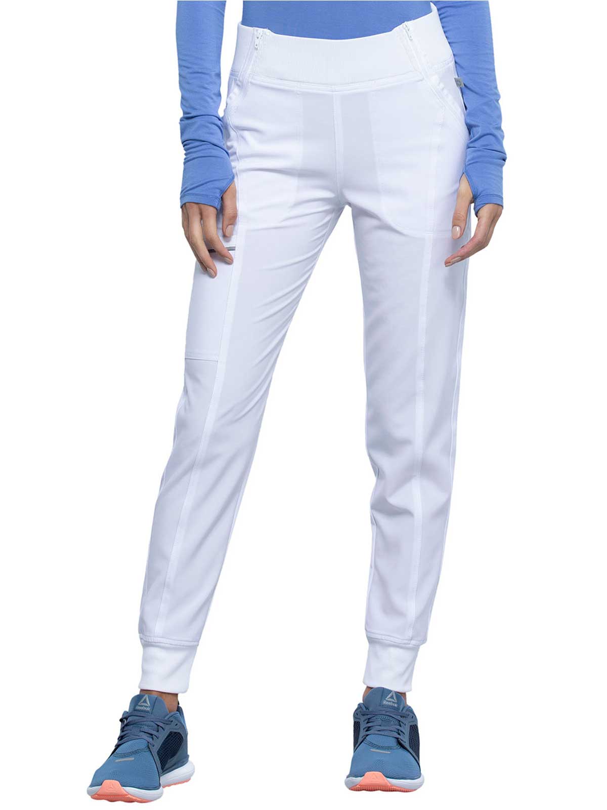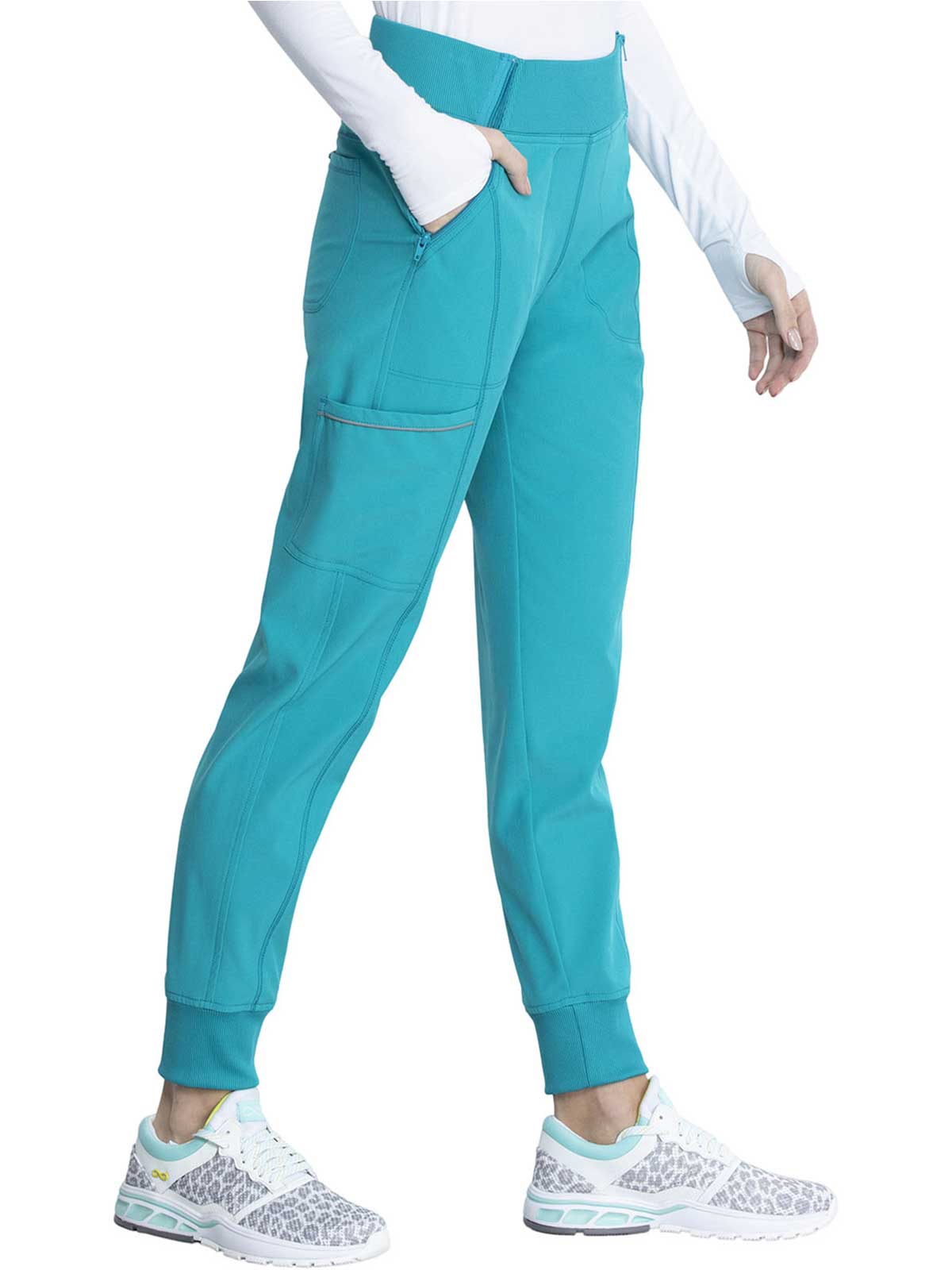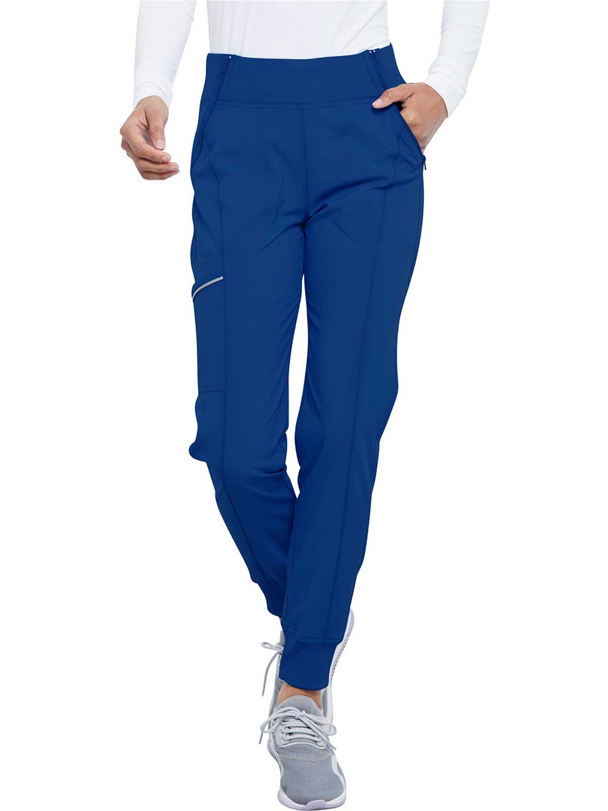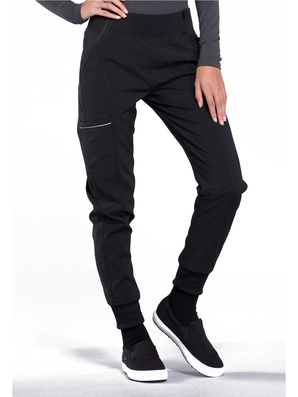 The Infinity Women's Elastic Waistband Jogger Scrub Pant. has a Rib-knit jogger band at the ankles The comfortable stretch poplin fabric and super stretchy rib knit are the perfect combo for healthcare professionals. soft knit for an athletic feel and look.