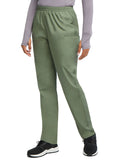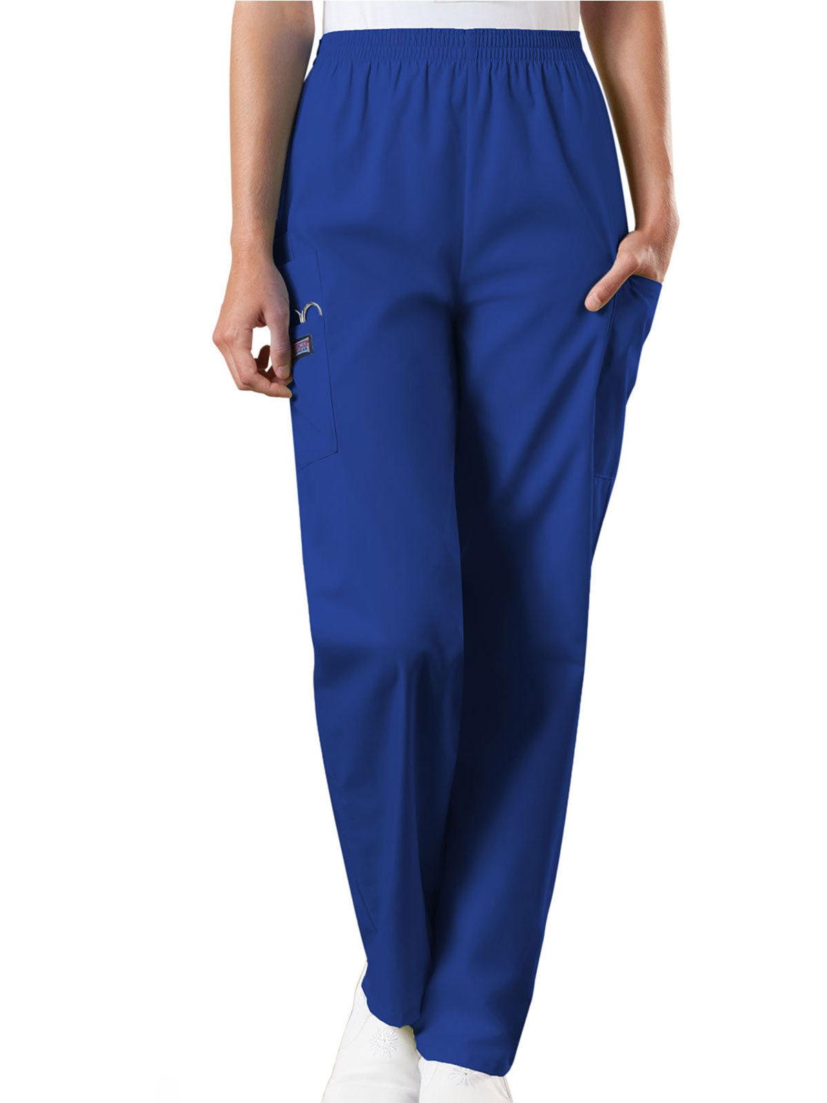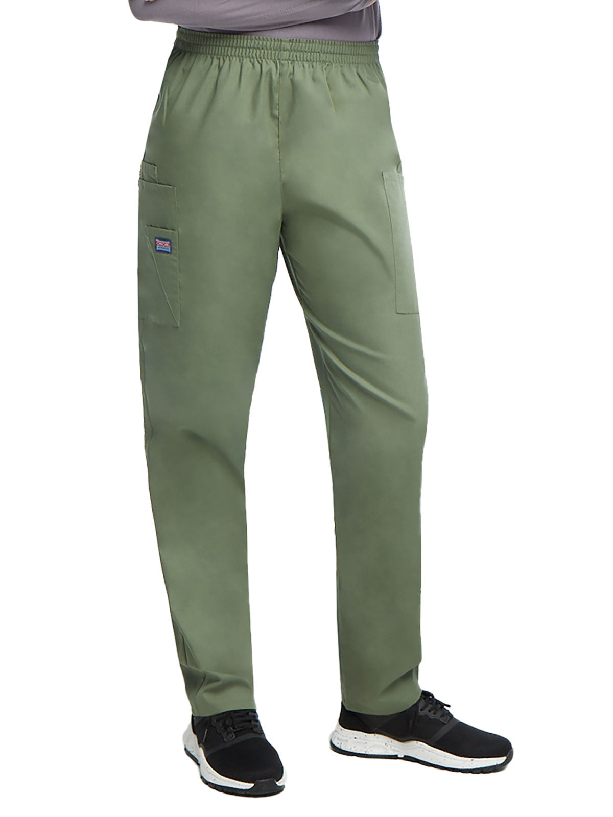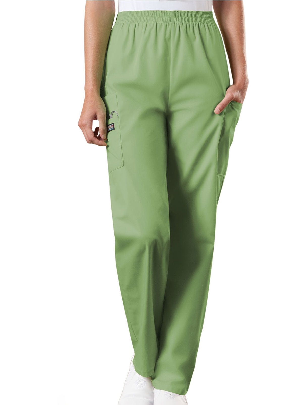 This Traditional fit, elastic waist utility pant features a natural rise and tapered leg, two cargo pockets, a cell phone pocket and an outside scissor pocket. Inseam: 33"
