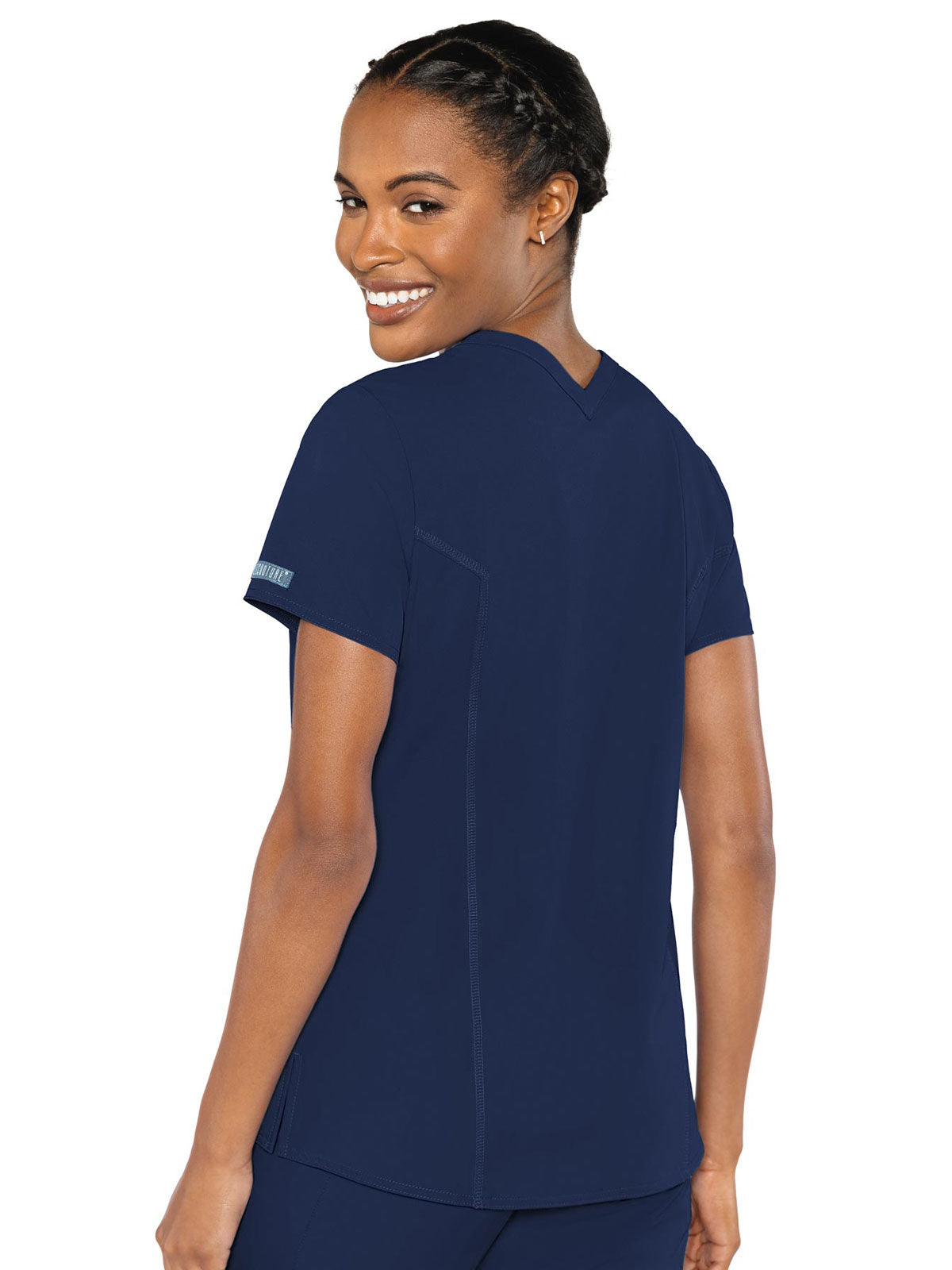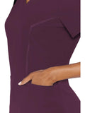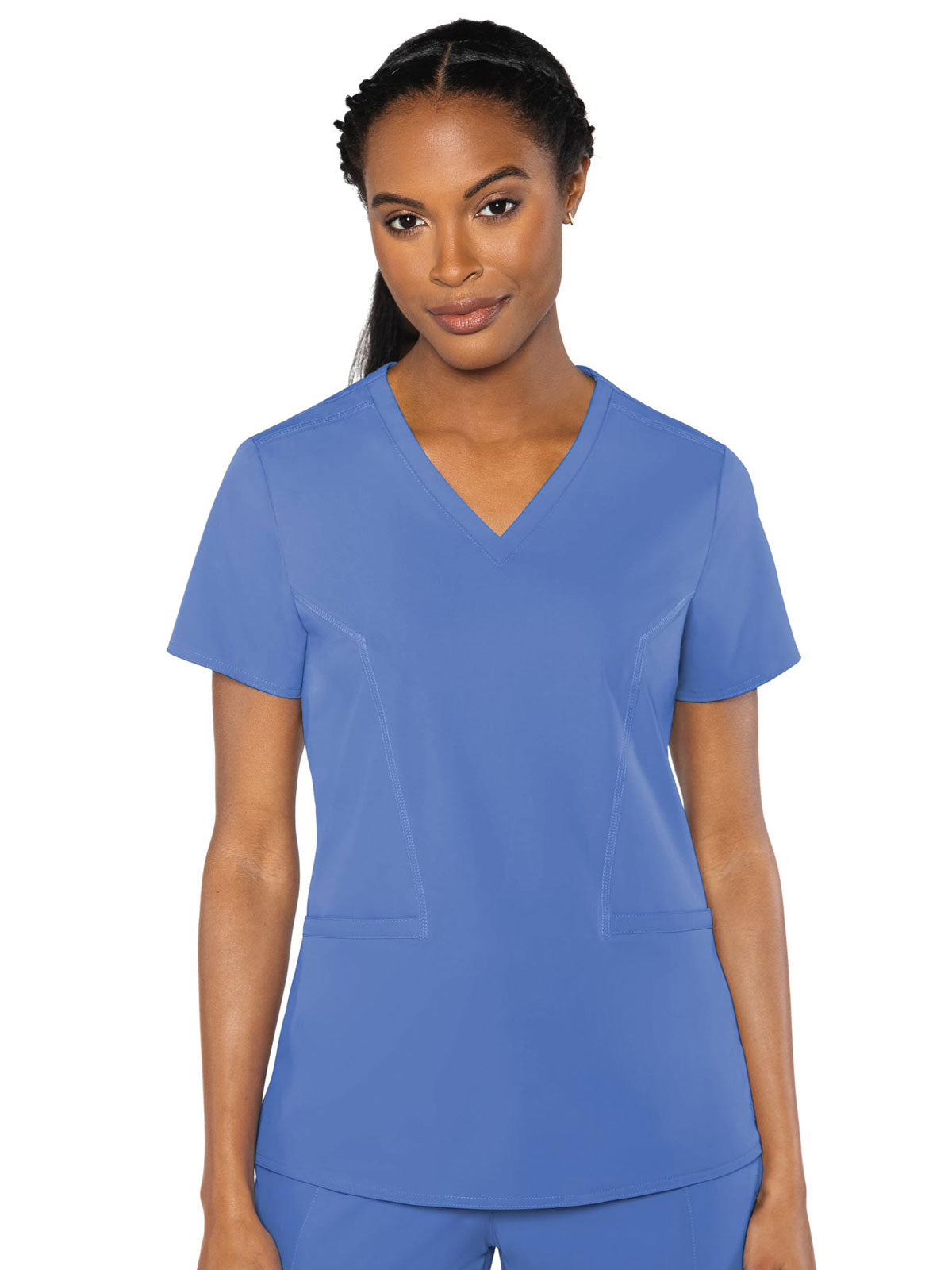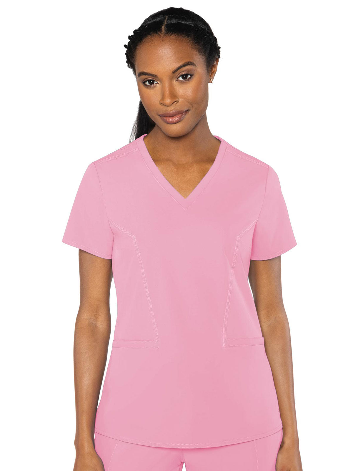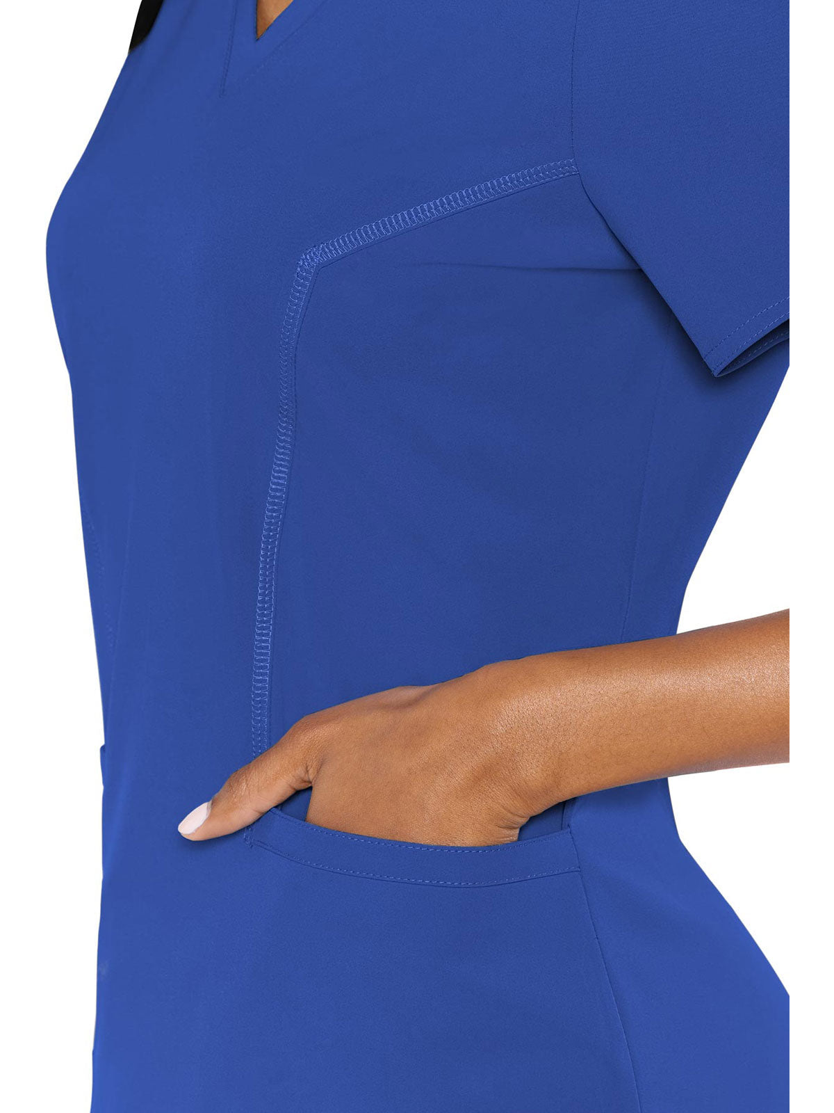 Ultra soft fabric and authentic, original design are the cornerstone of the Peaches by Med Couture Women's Mirror V-Neck Solid Scrub Top. This unique look is defined by a slimming fit and unique details that make the solid scrub top feel luxurious.