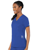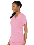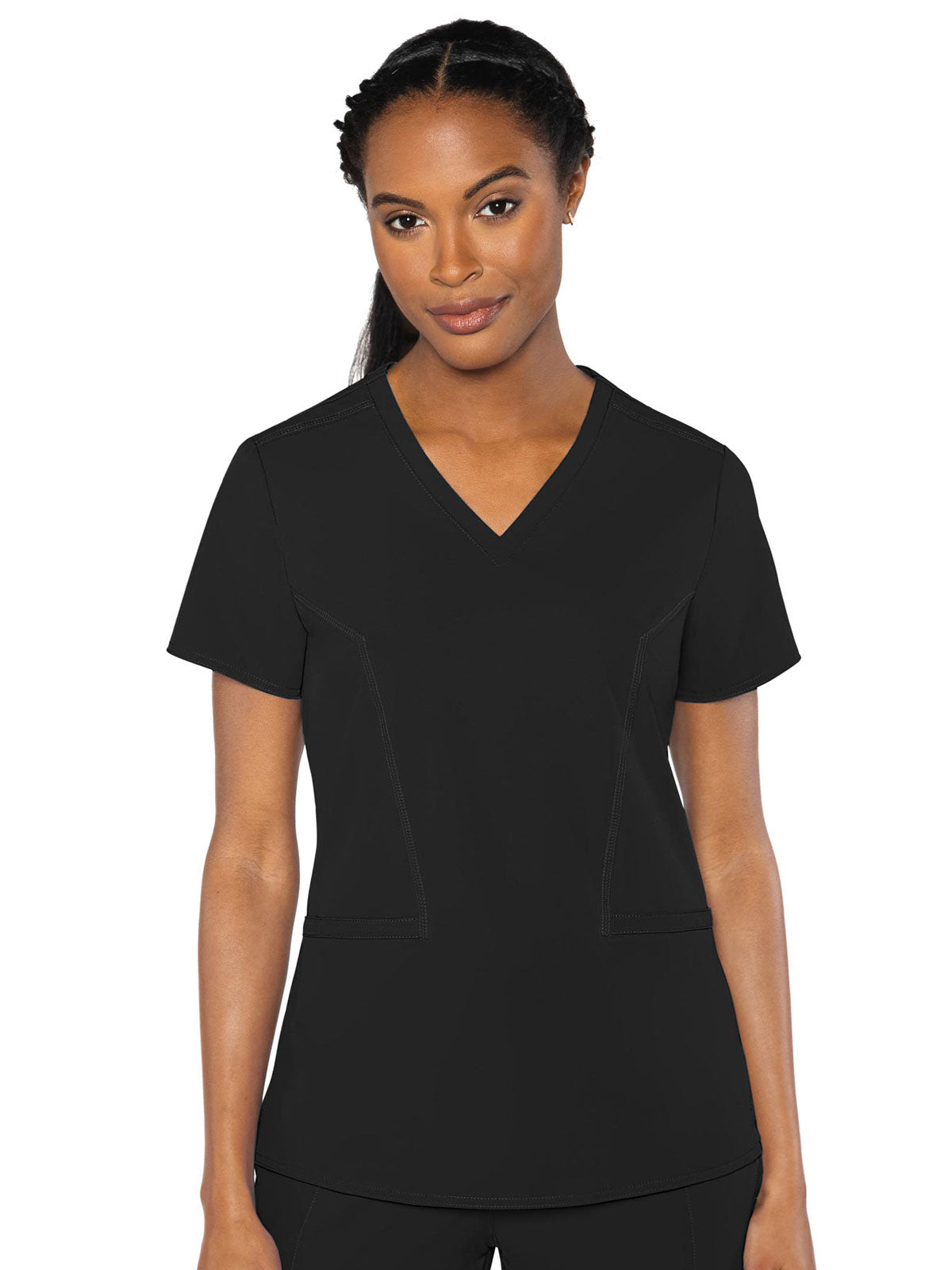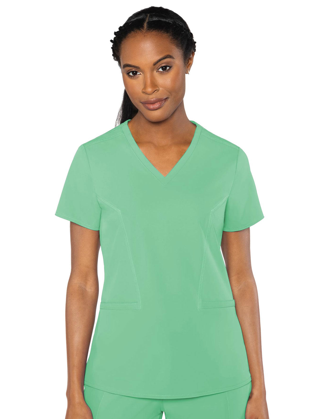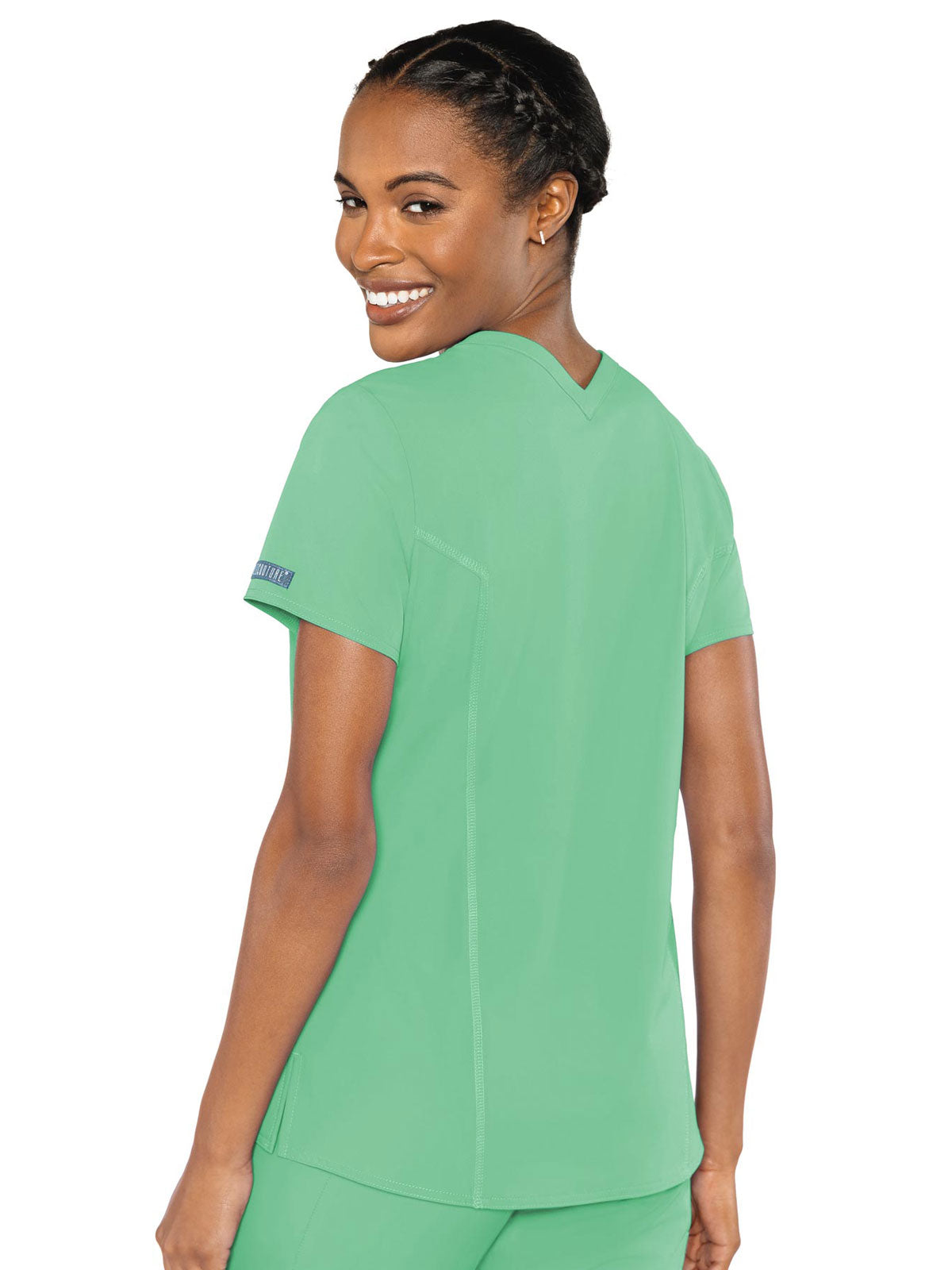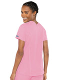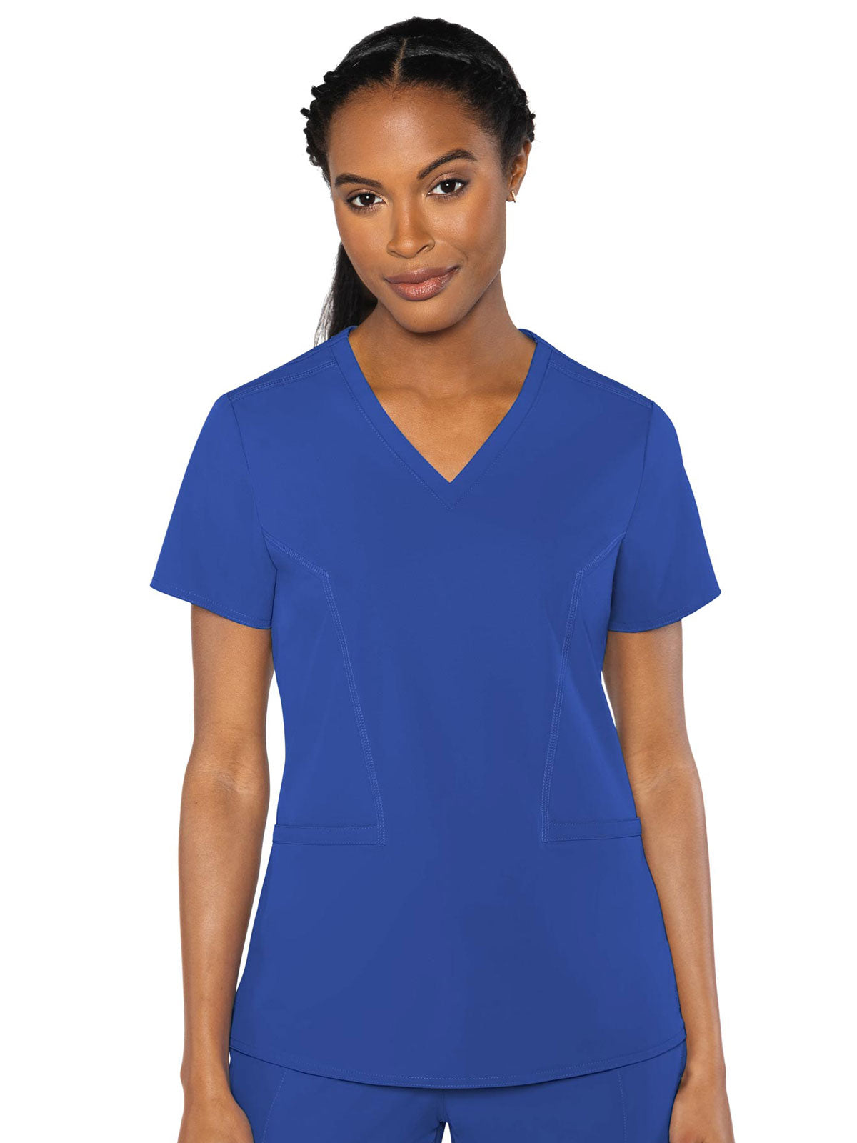Ultra soft fabric and authentic, original design are the cornerstone of the Peaches by Med Couture Women's Mirror V-Neck Solid Scrub Top. This unique look is defined by a slimming fit and unique details that make the solid scrub top feel luxurious.
