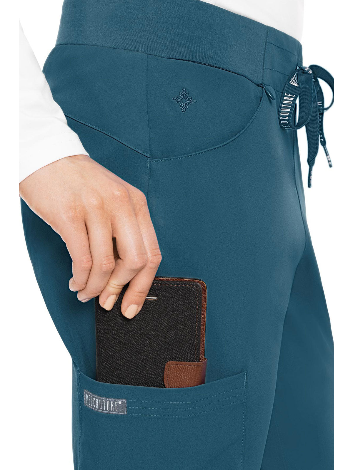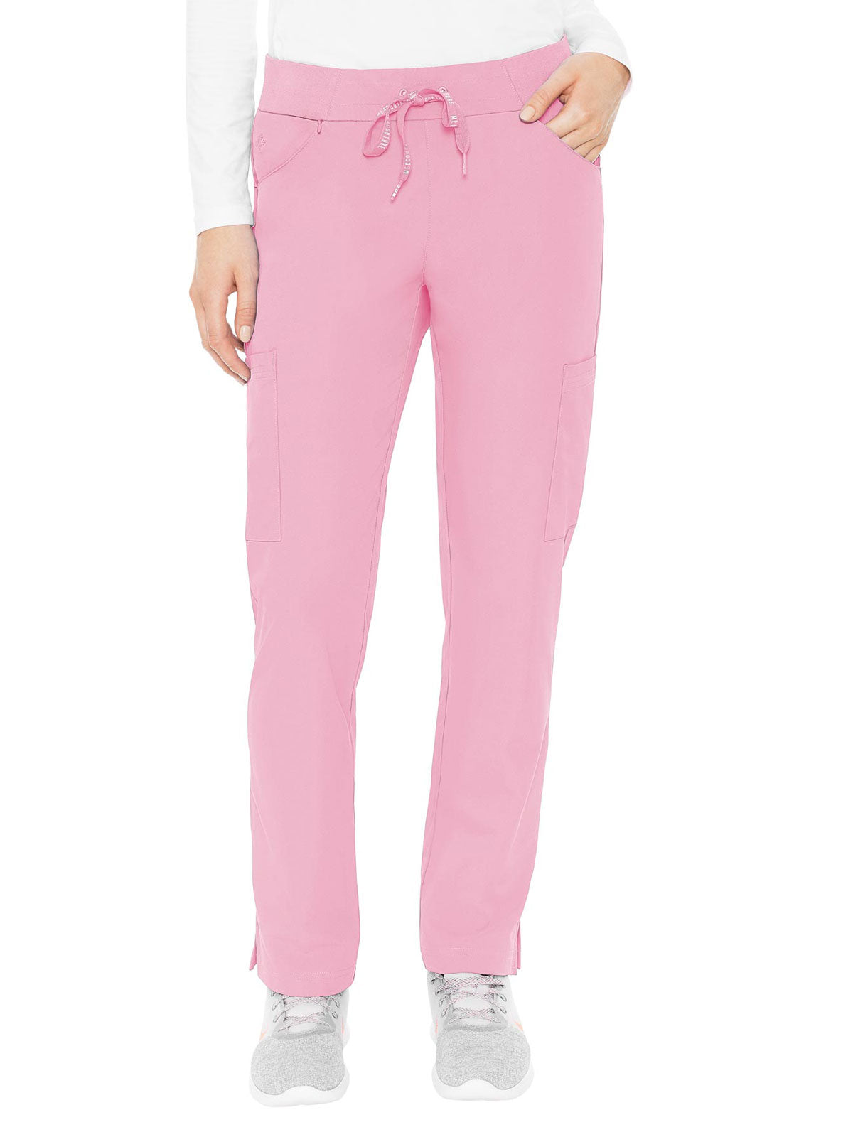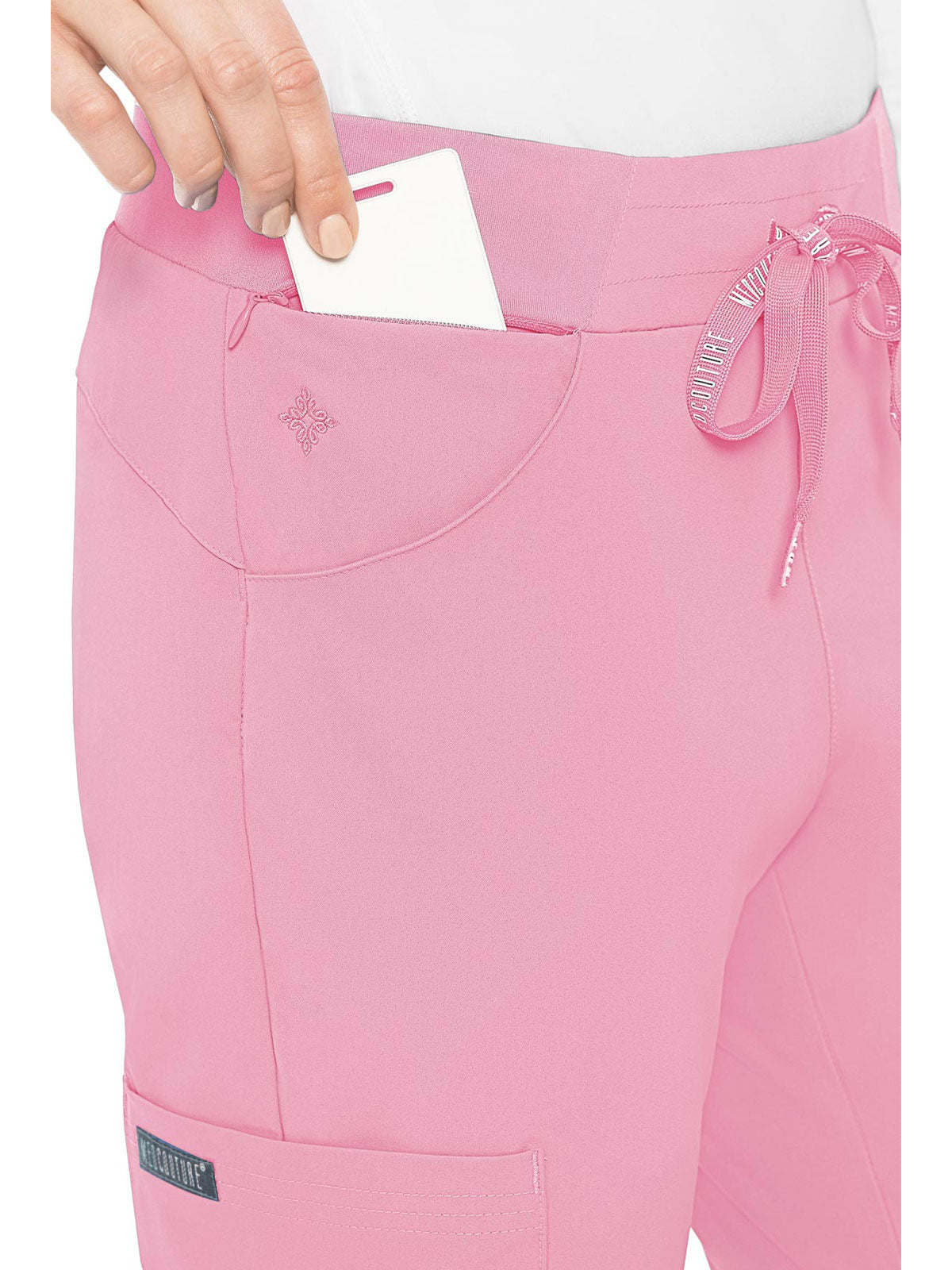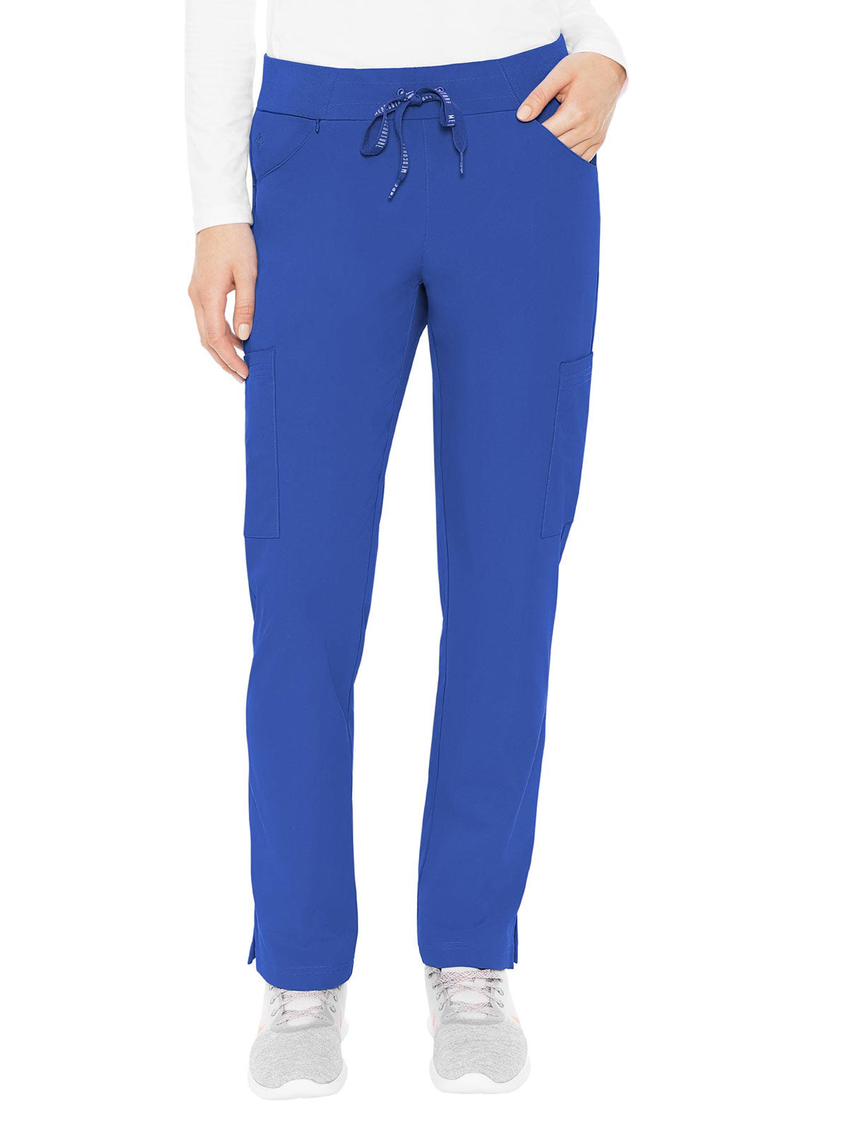 Stay organized and ready to take on your day in the super-comfortable Peaches by Med Couture Women's Scoop Cargo Pocket Scrub Pant. Ultra soft stretch fabric and a streamlined, contoured fit make for a great start to your day.
