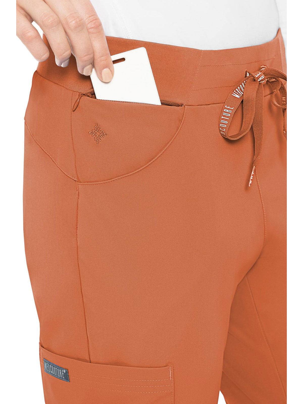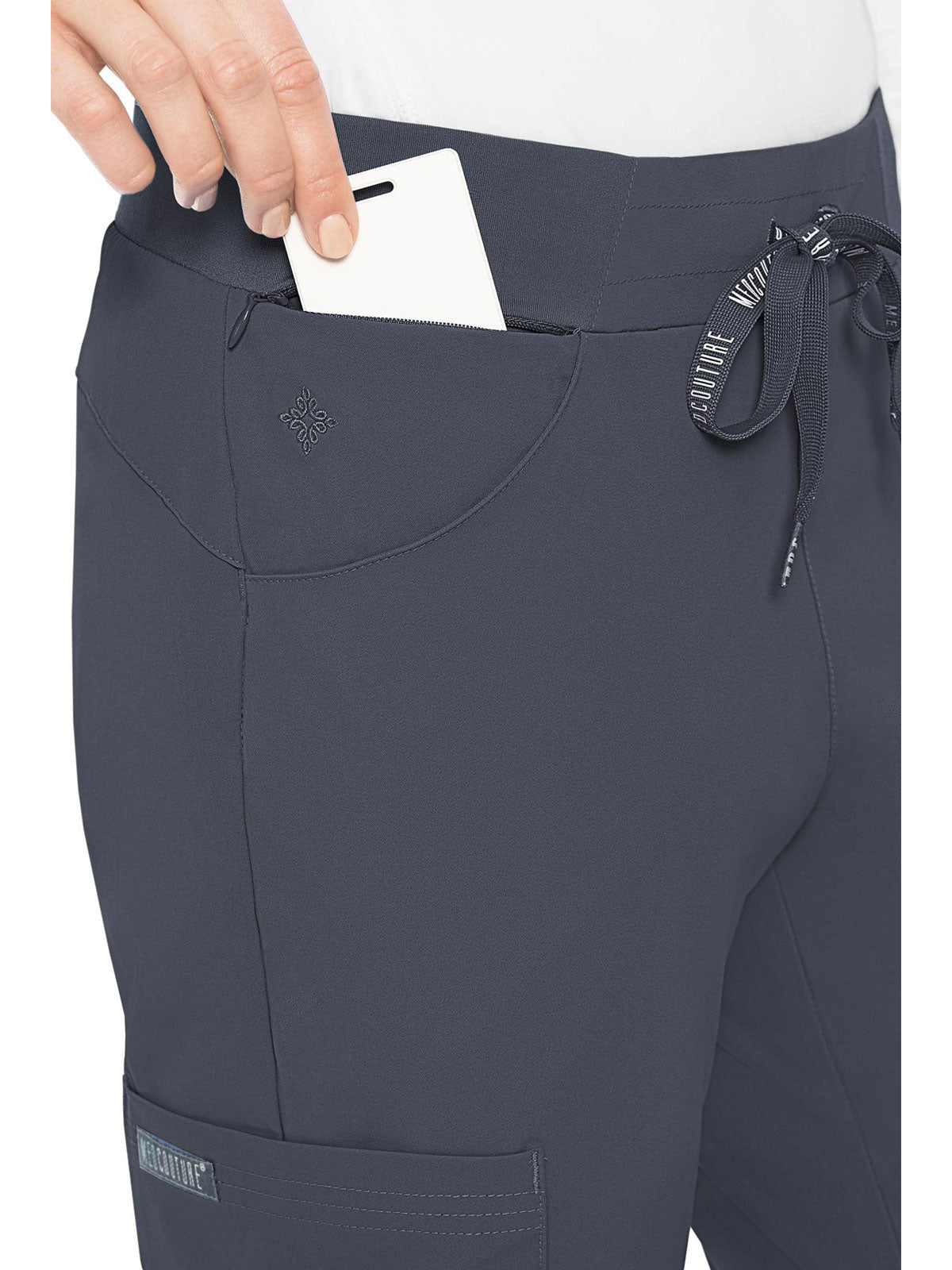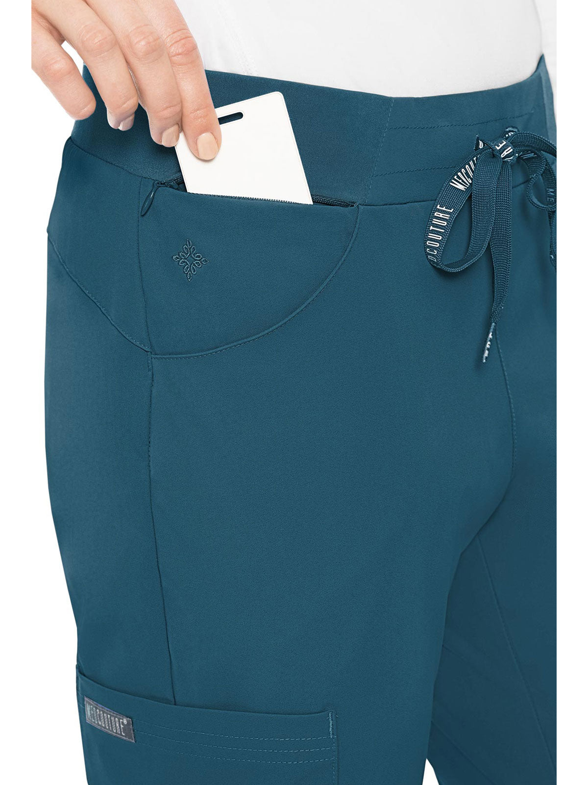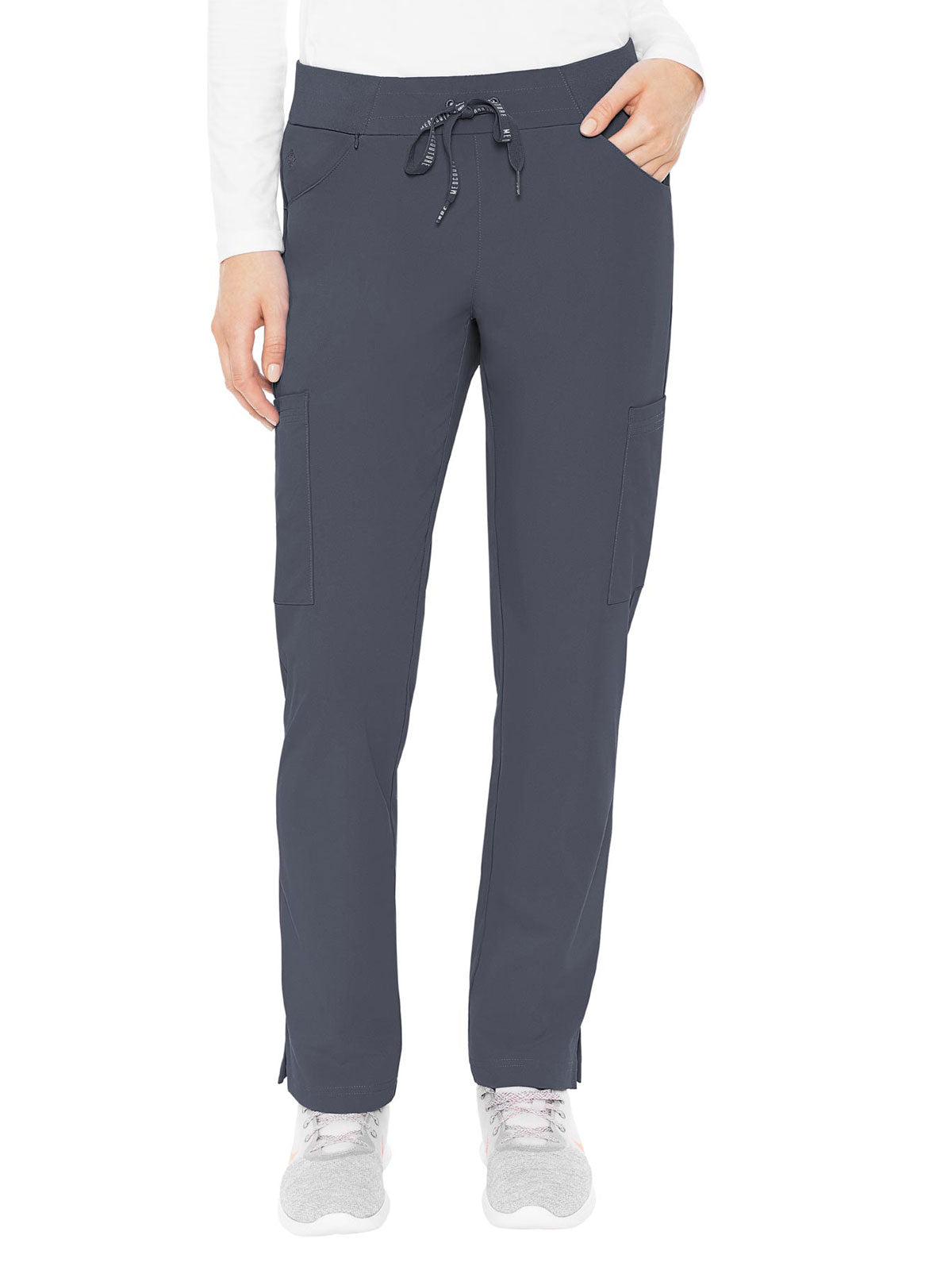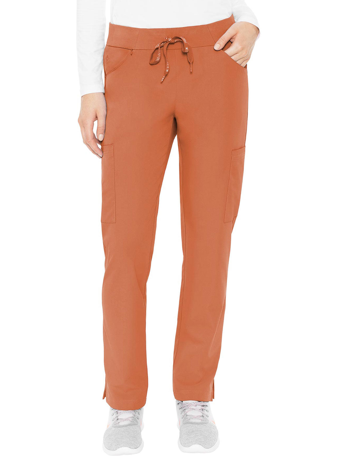 Stay organized and ready to take on your day in the super-comfortable Peaches by Med Couture Women's Scoop Cargo Pocket Scrub Pant. Ultra soft stretch fabric and a streamlined, contoured fit make for a great start to your day.