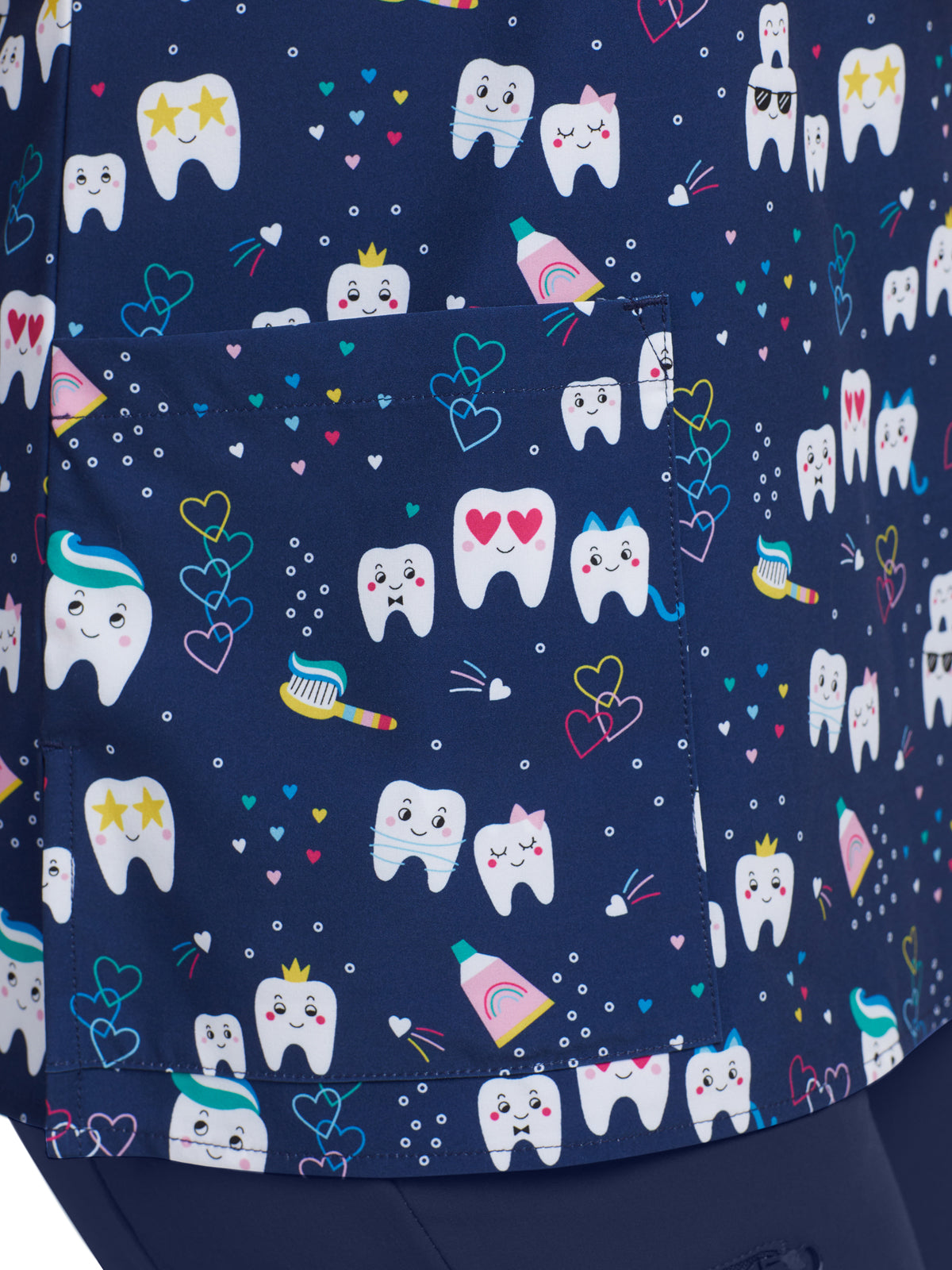 Our women's 3-pocket V-neck scrub top adds both comfort and fun to your work shift with breathable, 2-way stretch for mobility and a silky soft touch for all-day comfort. Created with a V-neck, side vents for extra ease of movement, and a contemporary Slim Fit that's contoured to conform to your body and complement your shape.