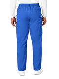 Drawstring waist, elastic back, and belt loops.