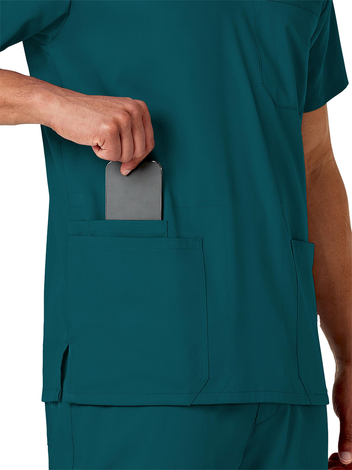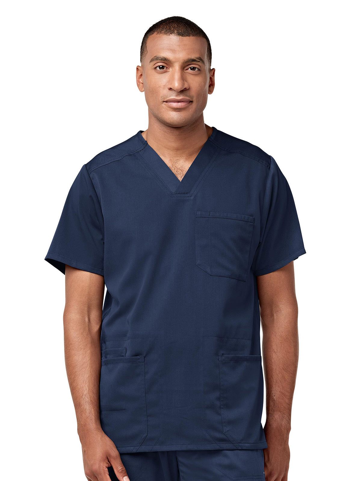 Go for maximum comfort, polished design, and easy utility with the PRO by WonderWink Men's Multi Pocket V-Neck Scrub Top. Built with plenty of storage options, this breathable scrub top is made with innovative stretch fabric technology that works just as hard as you do.