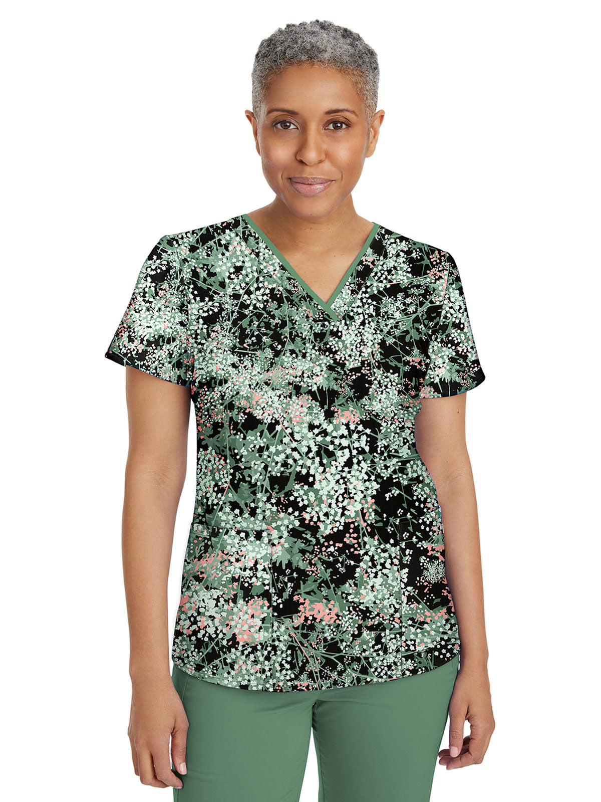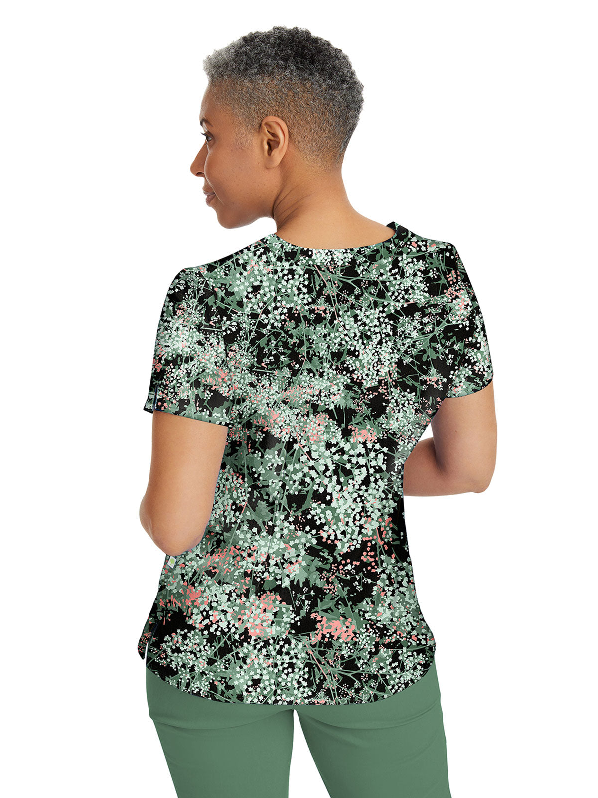 Embrace the season's darker florals in the Purple Label by Healing Hands Women's Amanda Into The Woods Print Scrub Top. Grosgrain ribbon details add feminine style, while three pockets give you the utility you need.