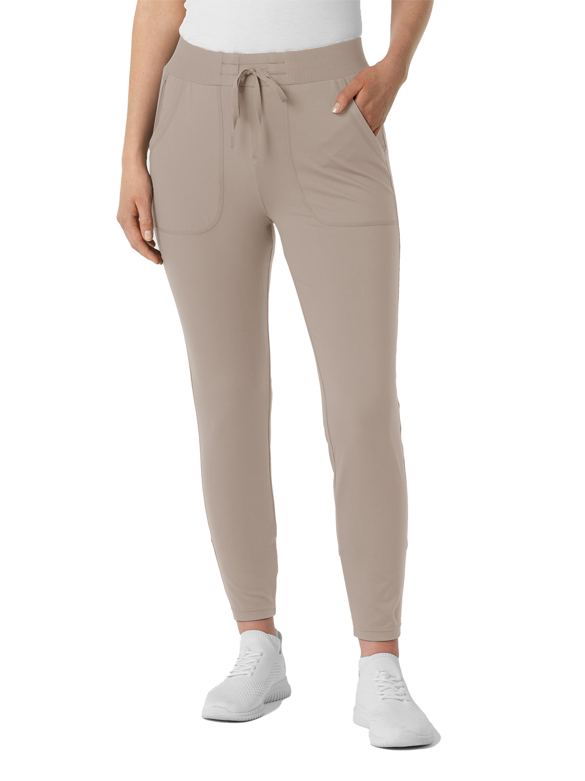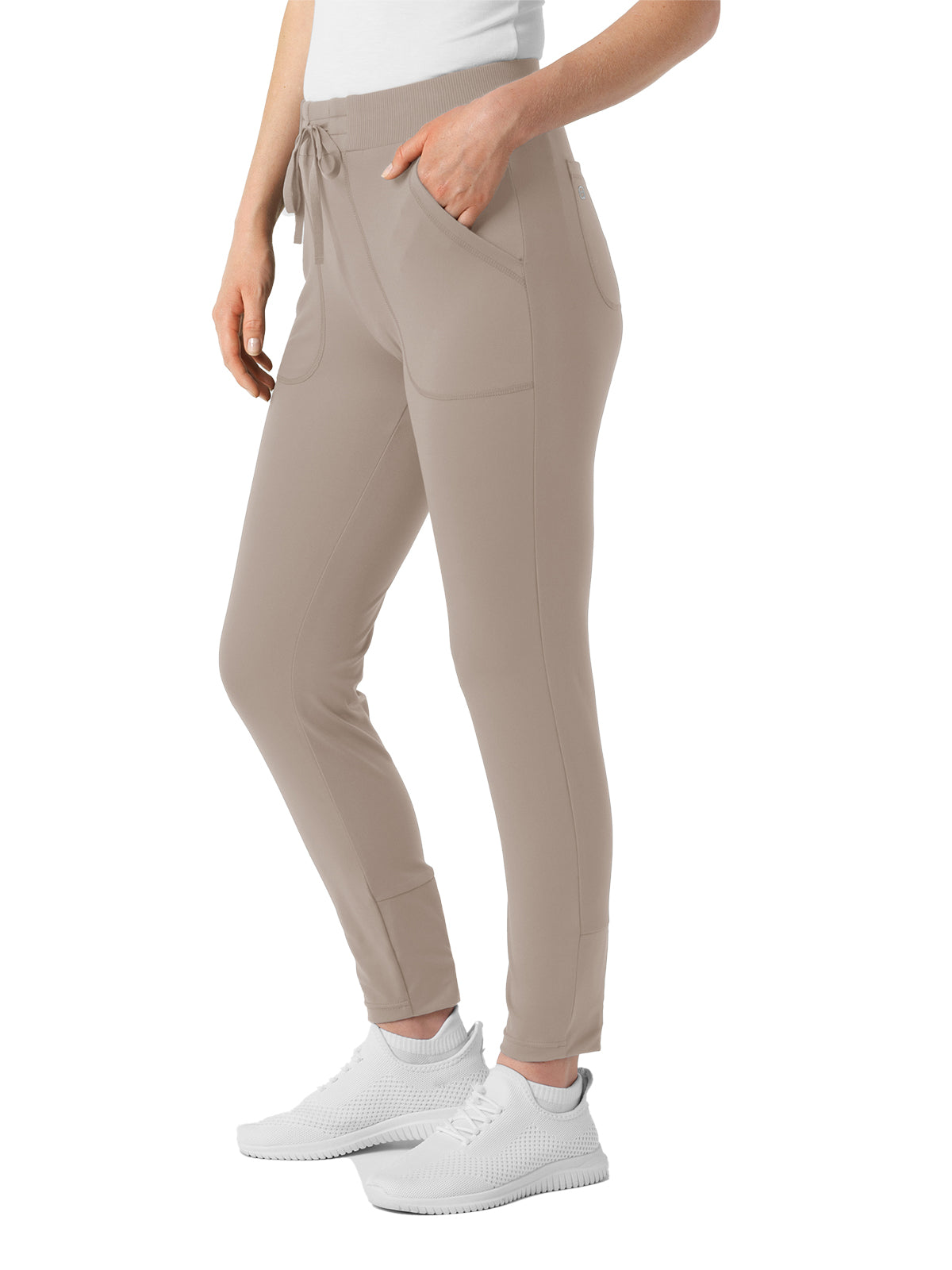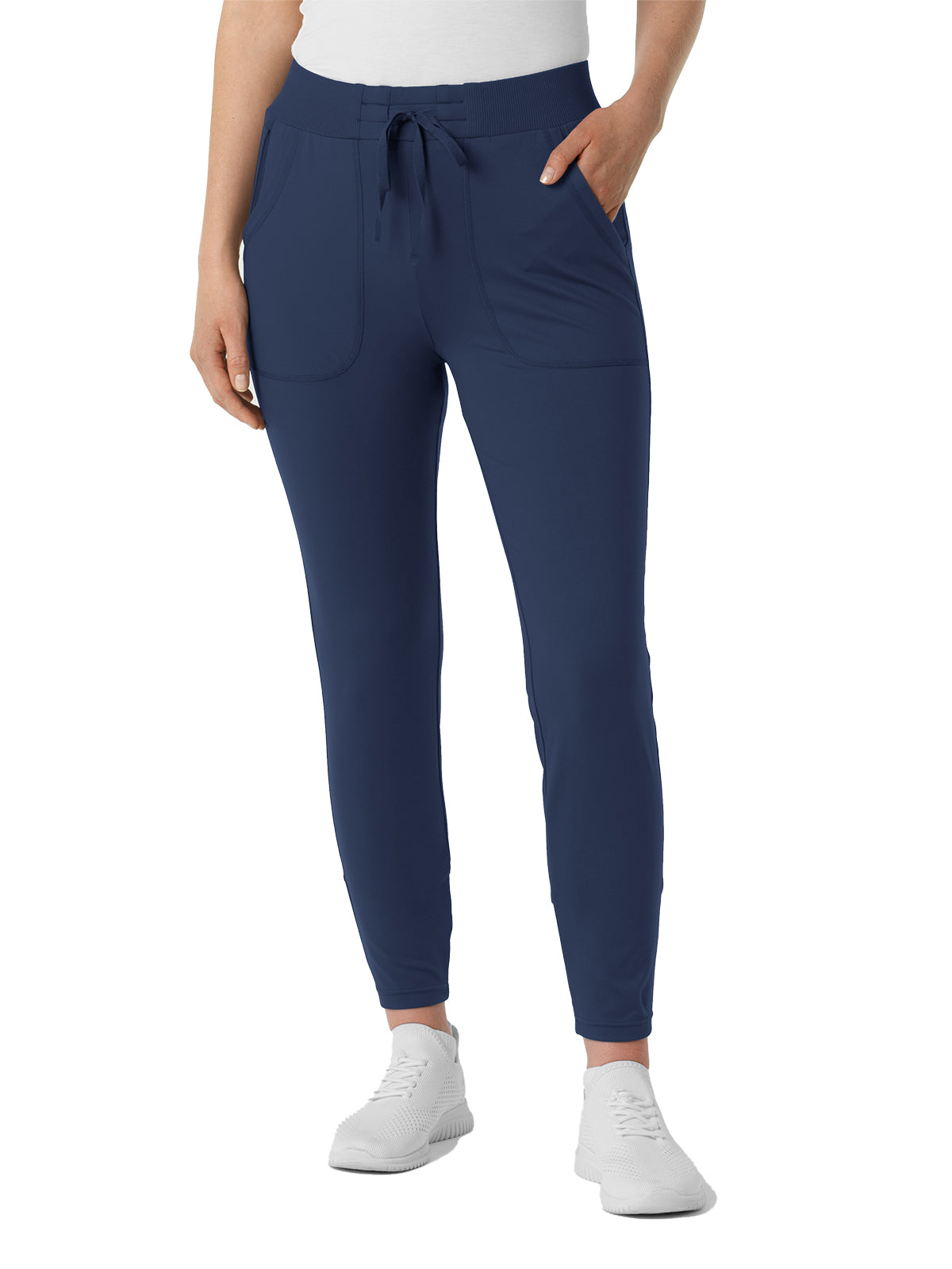 Bring sport-inspired style to your hard-working shifts with these women's knit track scrub pants. They're designed with thoughtful details so you can get just the right fit, like the drawstring-adjustable waist and adjustable back legs that give you more freedom of movement with every stride. Two front pockets and two back pockets take care of must-have tools and supplies as you make your way through busy appointments. One more pocket on the side zips shut for a secure place to store smaller essentials you'd prefer to keep close. These scrubs are built from a soft and stretchy material that's sustainably made, letting you feel good about what you wear to work every day. The modern athletic fit stays close to you with a fresh silhouette that invites versatility in style. The partially ribbed waist is soft and forgiving, and it never digs in whether you're bending down or leaning over.