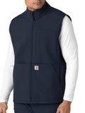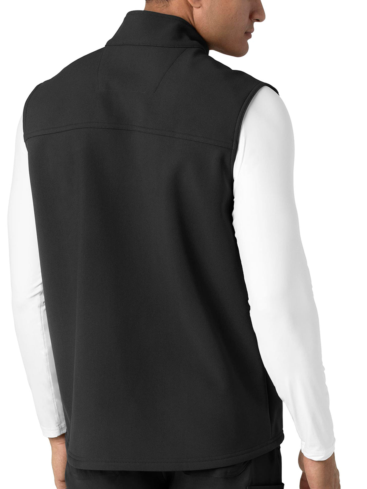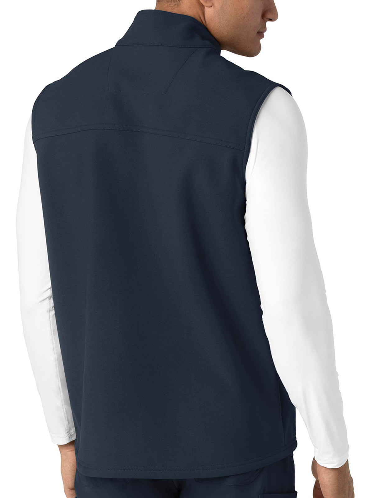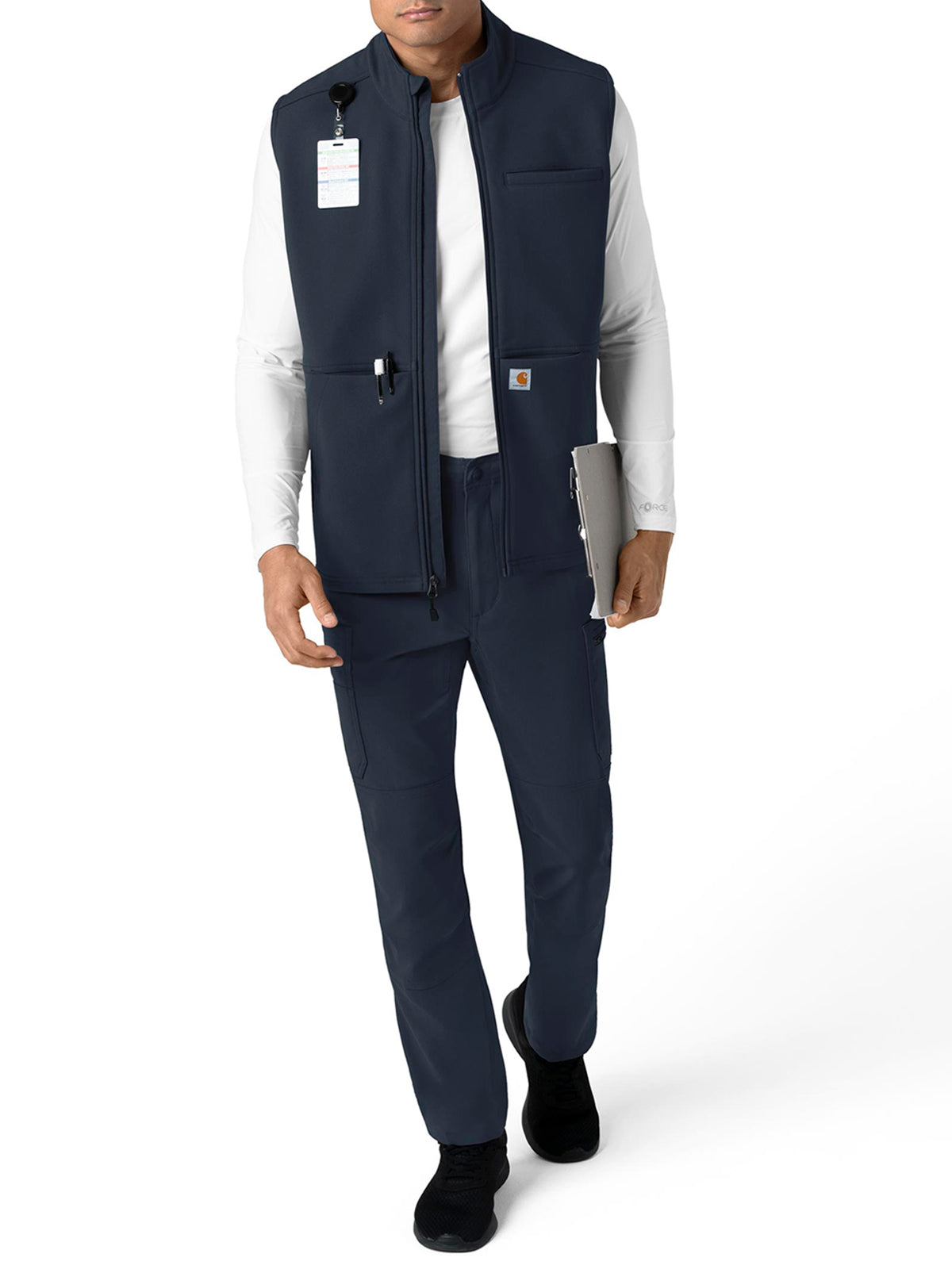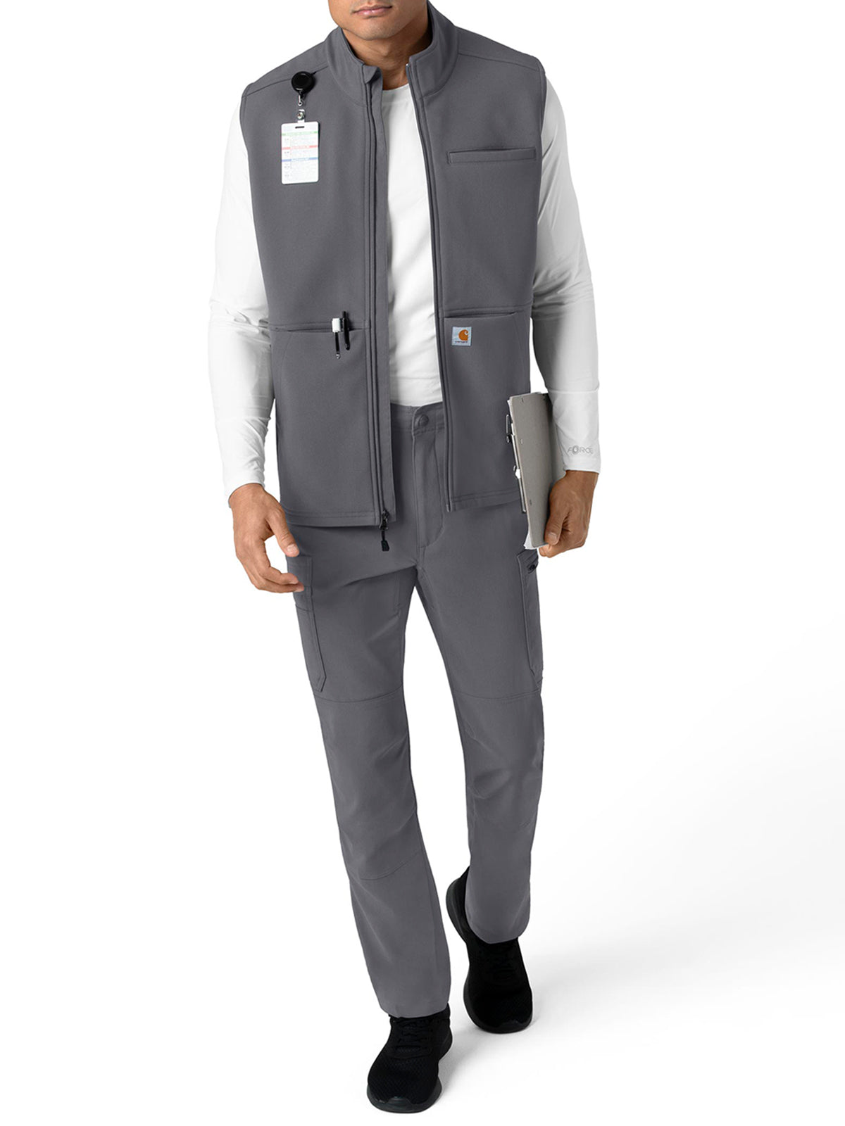 Introducing your go-to essential for in-between seasons and chilly weather. Capitalizing on versatility, this men's vest is the perfect layer that surrounds you with cozy comfort in a durable bonded fleece material. The full-zip front lets you add breathability when you want it and more warmth when you don't. Your badge will stay on full display thanks to a loop at the shoulder. A zip-shut chest pocket makes sure smaller items stay in place, while deep patch pockets on the front offer a spacious place to hold essentials. An internal pocket is perfect for things you want to keep out of the way, like your phone or your glasses. The silhouette is finished with a curve in the back, extending the hem slightly for confident coverage. Durable yet lightweight, this vest wicks away moisture to keep you dry and releases soil for a fresh look and feel, shift after shift. It's made with Rugged Flex™ stretch technology that moves with you in any situation. Snag and spill-resistant, it has a soft, broken-in feel that handles your day with ease.