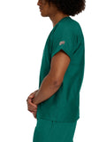 This classic fit, no-pocket scrub top has a flattering crossover neck band and woven label at the left sleeve for a clean, professional look.
