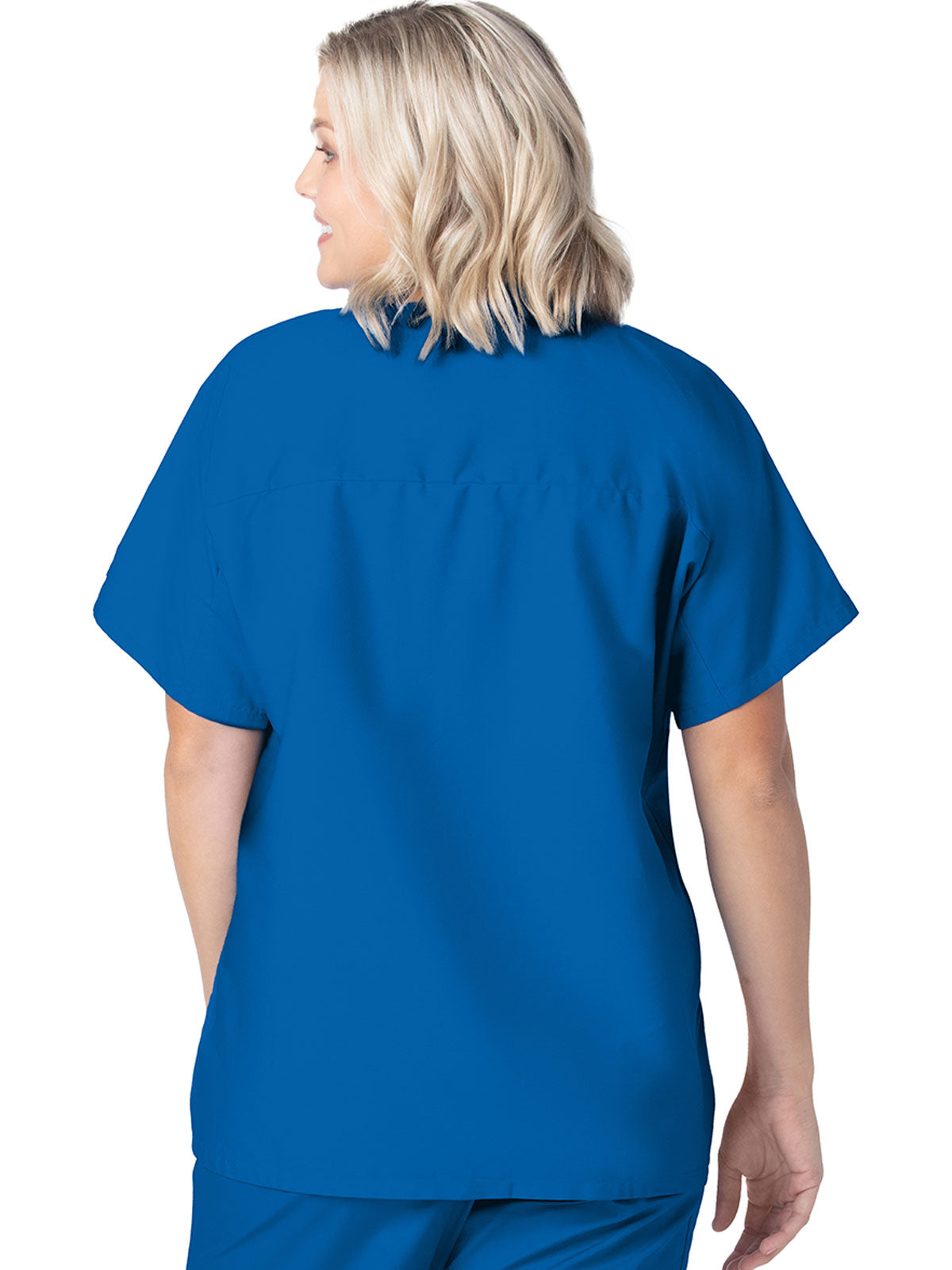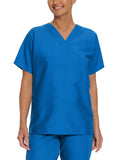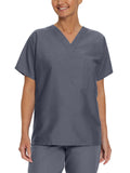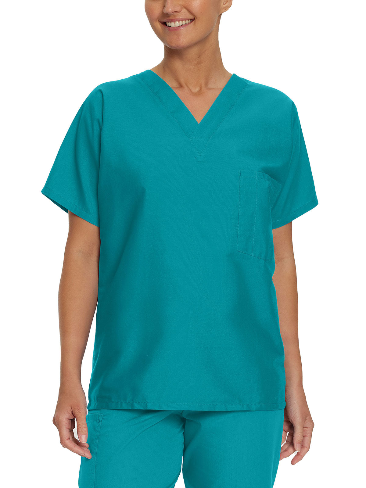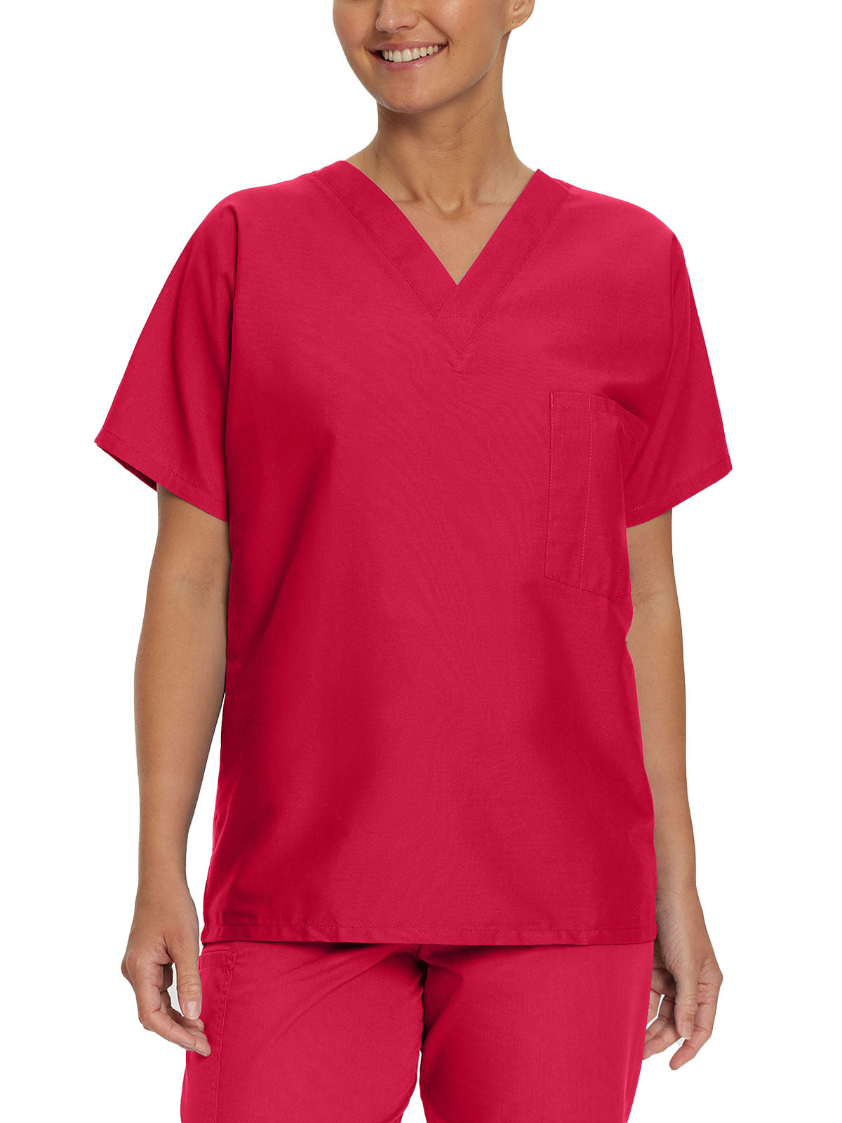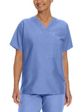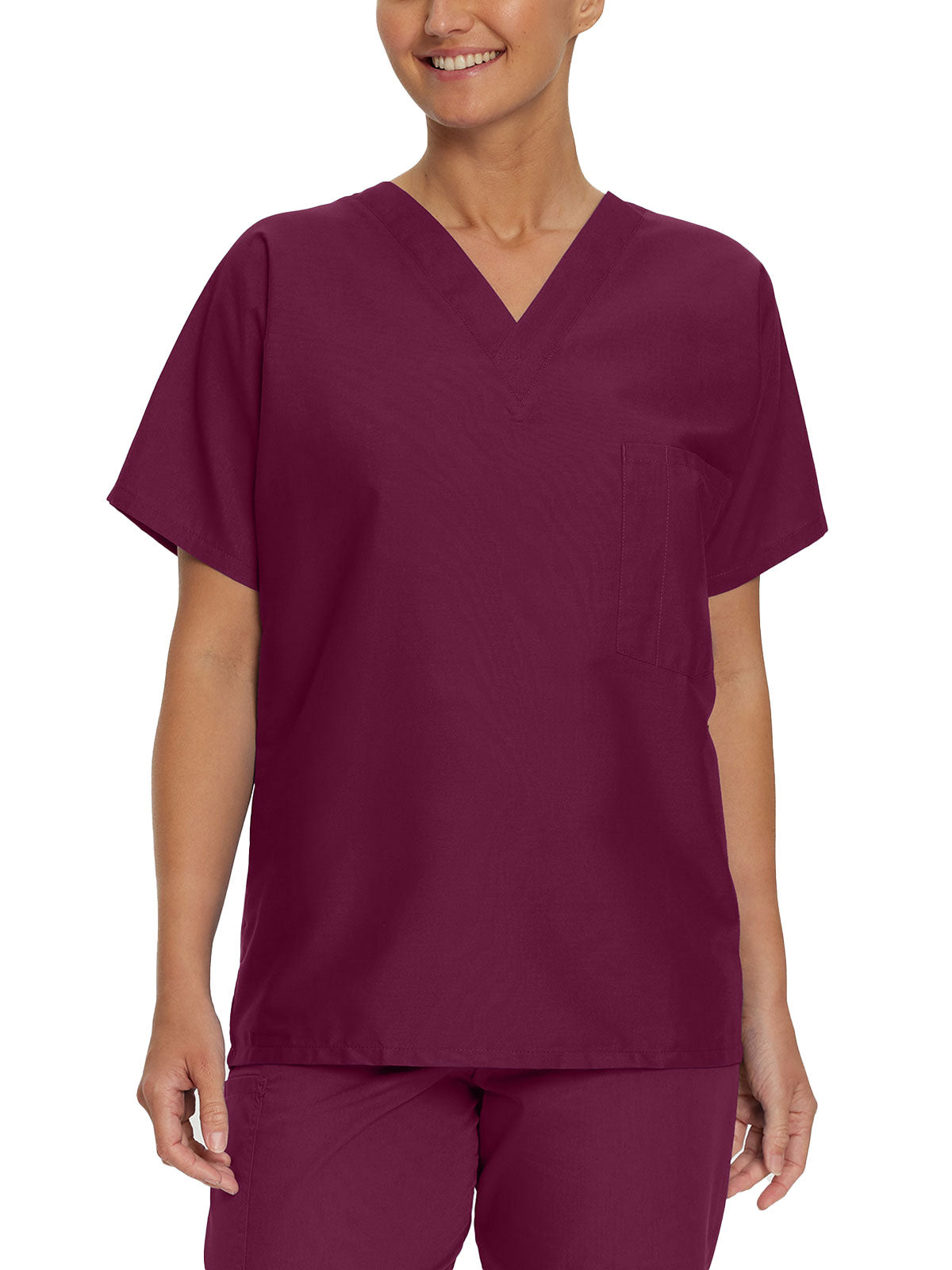 Scrub Zone scrubs work tough, fit comfortably and offer extraordinary value. This V-neck unisex scrub top has dolman sleeves, back yoke and chest pocket with pencil division.