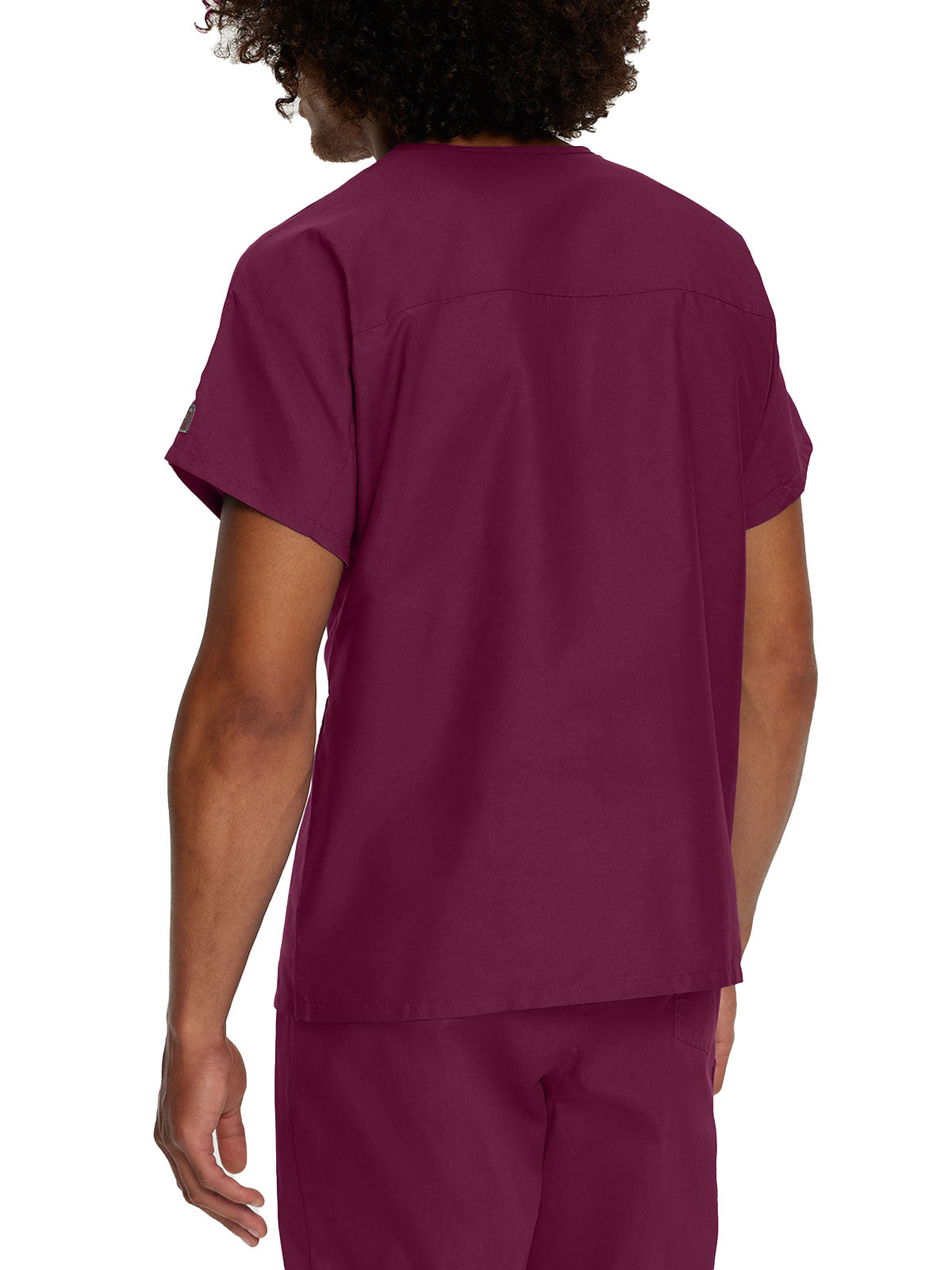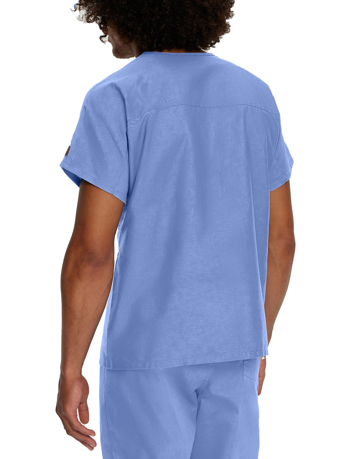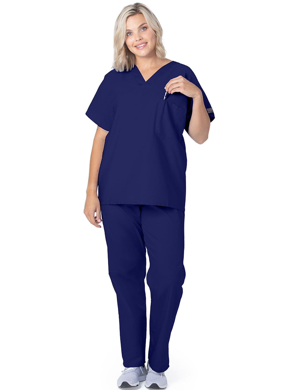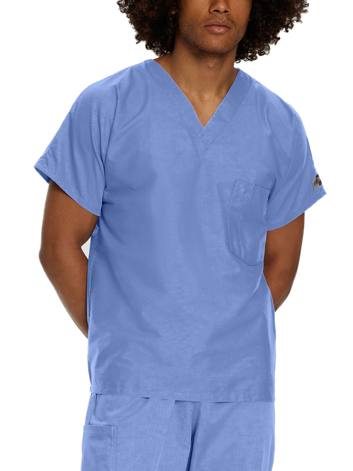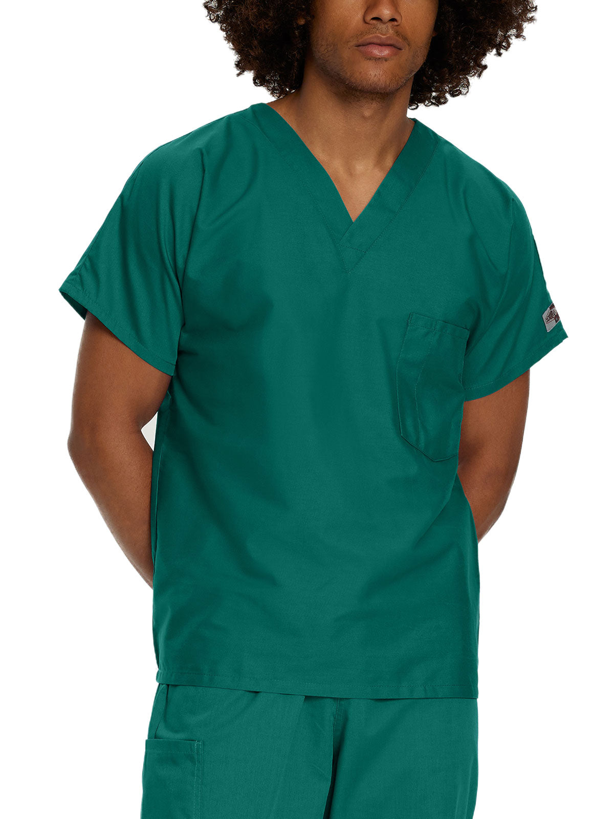 Scrub Zone scrubs work tough, fit comfortably and offer extraordinary value. This V-neck unisex scrub top has dolman sleeves, back yoke and chest pocket with pencil division.