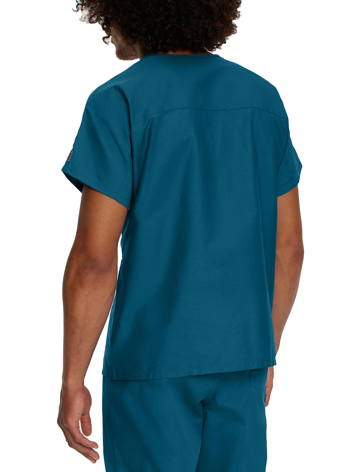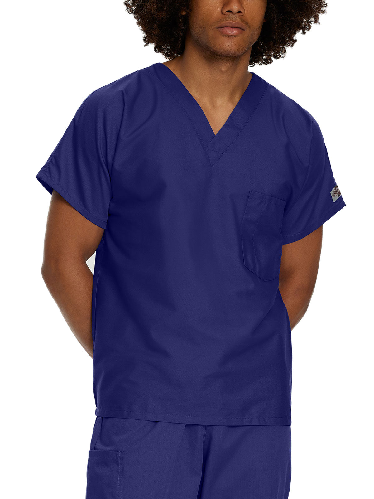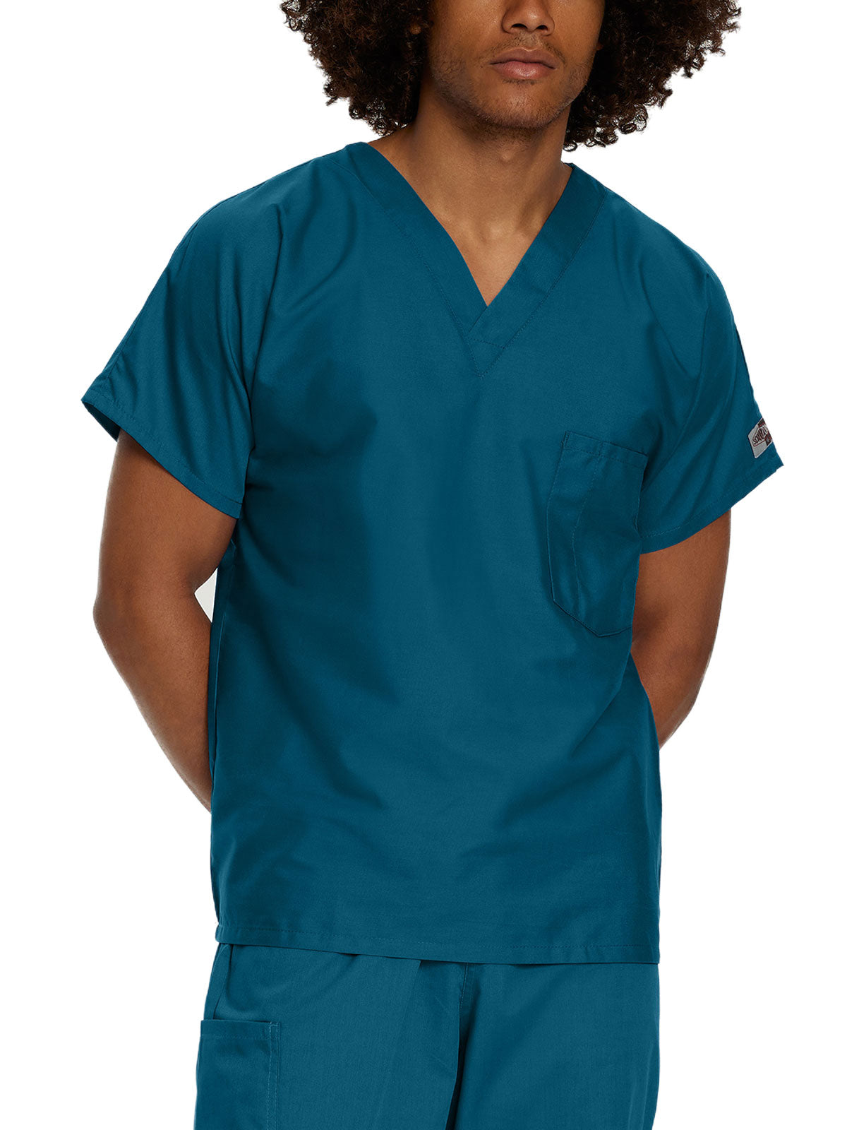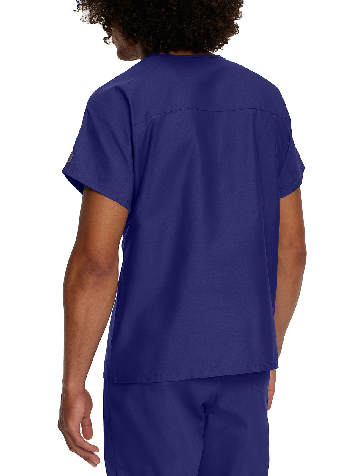 Scrub Zone scrubs work tough, fit comfortably and offer extraordinary value. This V-neck unisex scrub top has dolman sleeves, back yoke and chest pocket with pencil division.