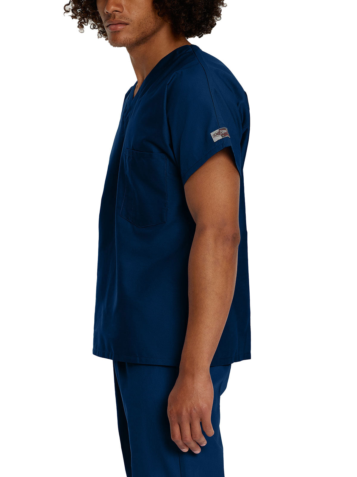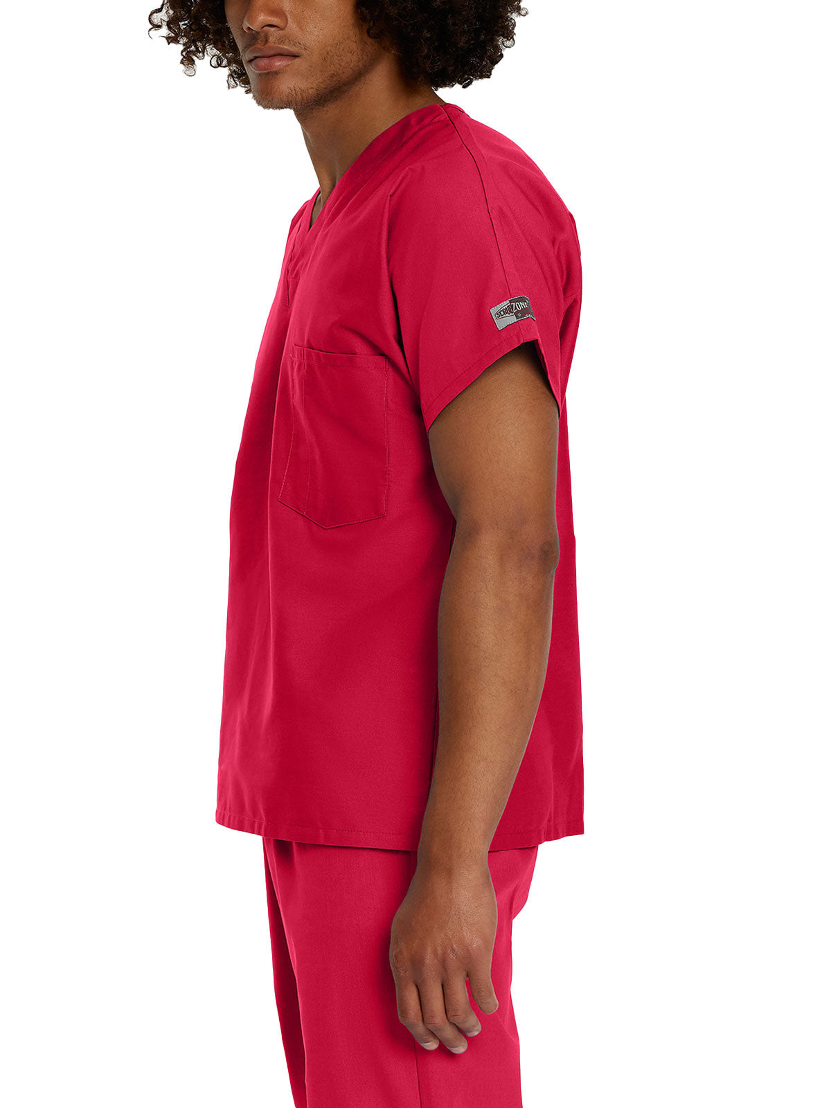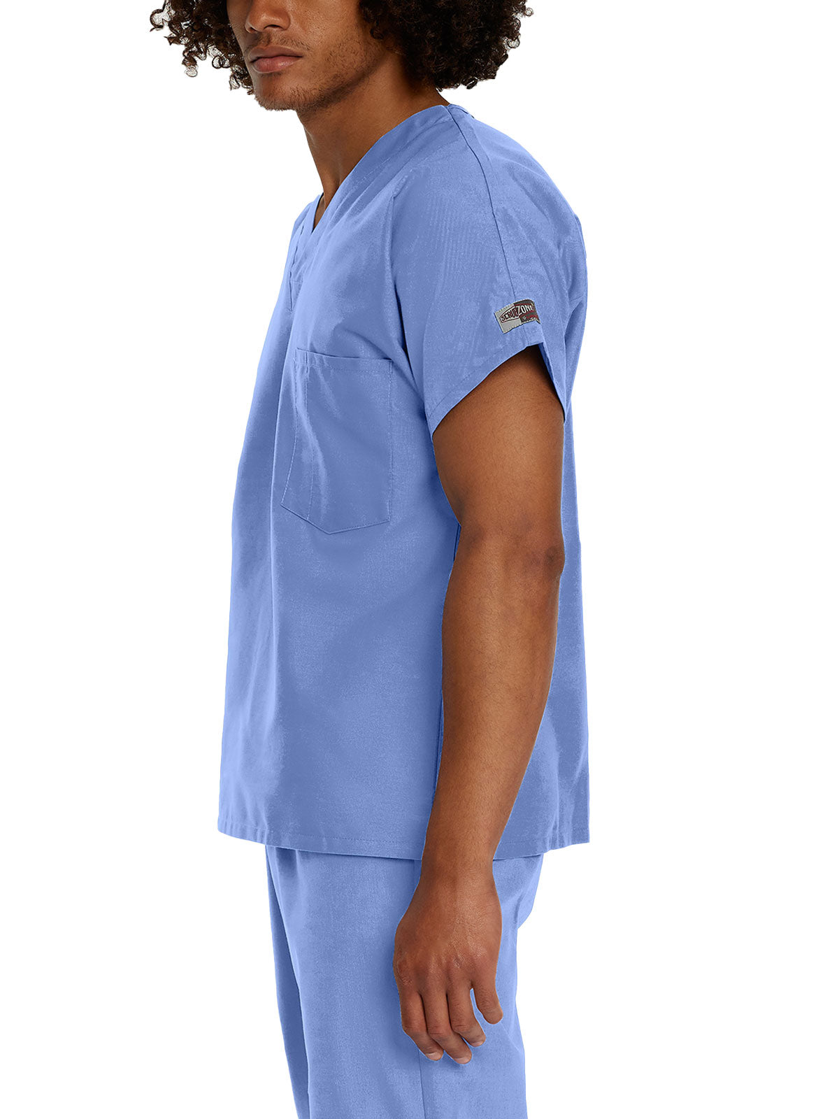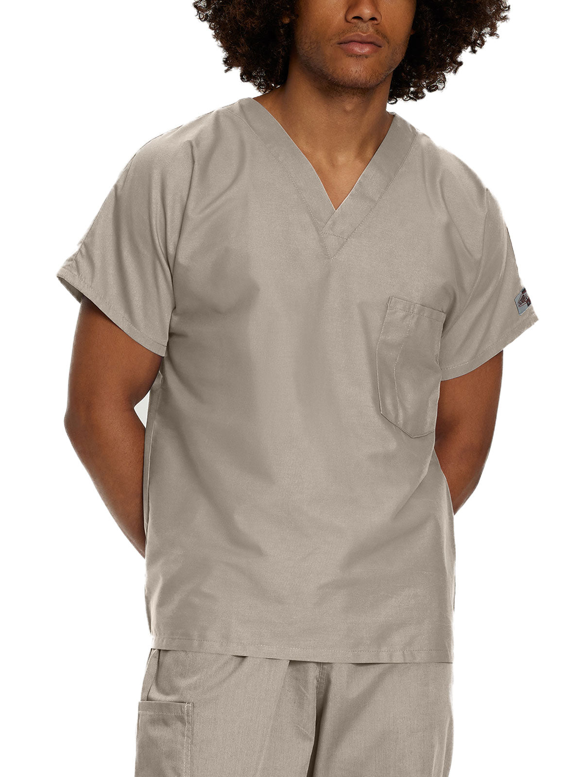 Scrub Zone scrubs work tough, fit comfortably and offer extraordinary value. This V-neck unisex scrub top has dolman sleeves, back yoke and chest pocket with pencil division.
