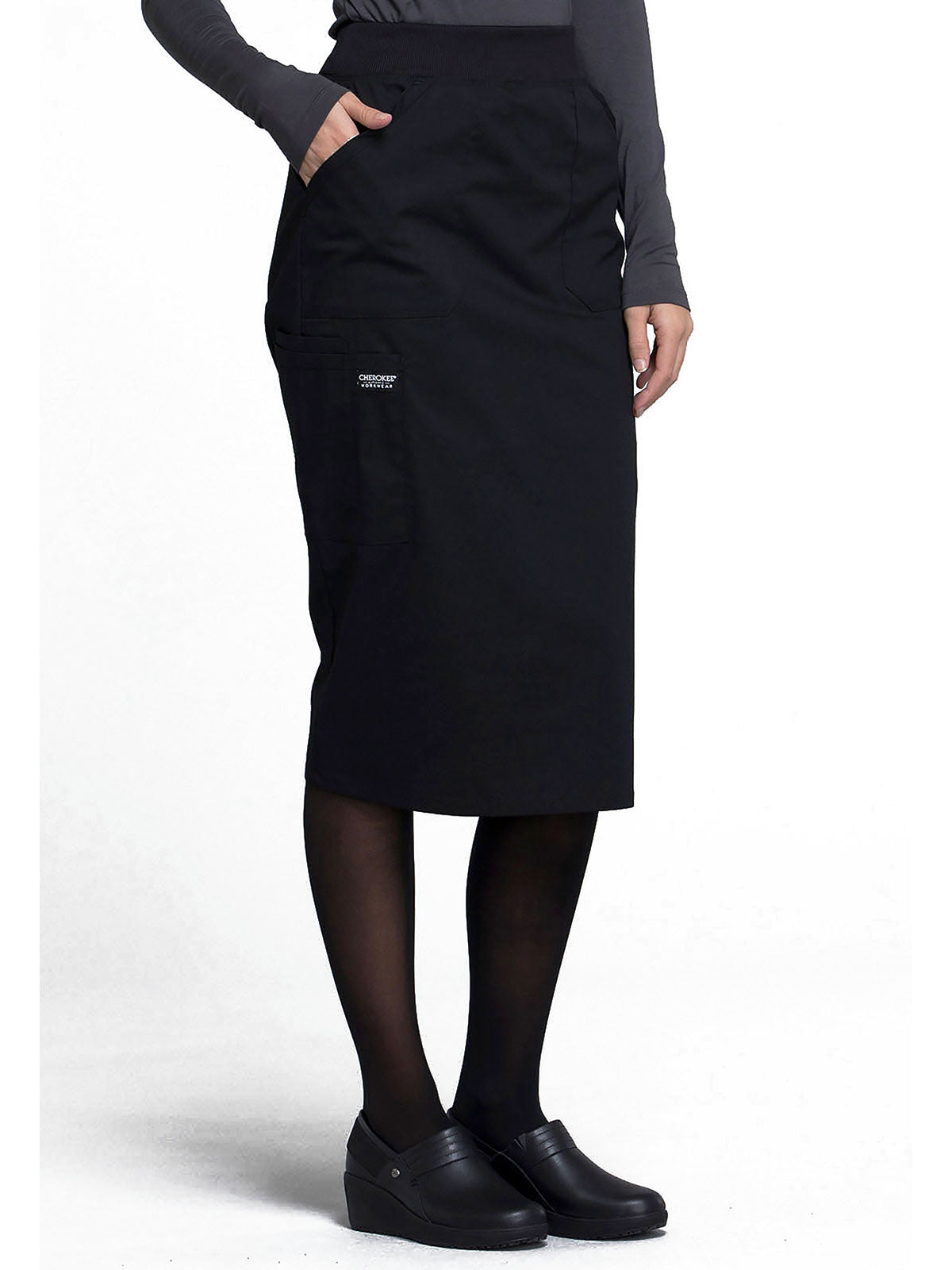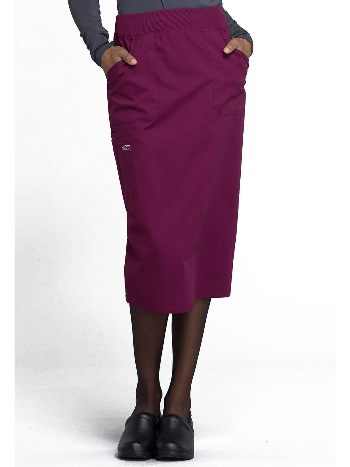 The Scrub Skirts Professionals - 30" Knit Waistband Skirt by Cherokee is the ideal option for those who prefer skirts in their medical uniform due to its functional yet fashionable design. Add this skirt to your collection of scrubs to improve your professional appearance while remaining at ease. Upgrade your work wardrobe right away with scrub skirts!