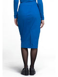 This skirt offers a snug and comfortable fit all day thanks to its soft knit waistband, which sits at the natural waist. It is useful for a variety of work settings because of the 30" length's modest coverage and ease of movement.