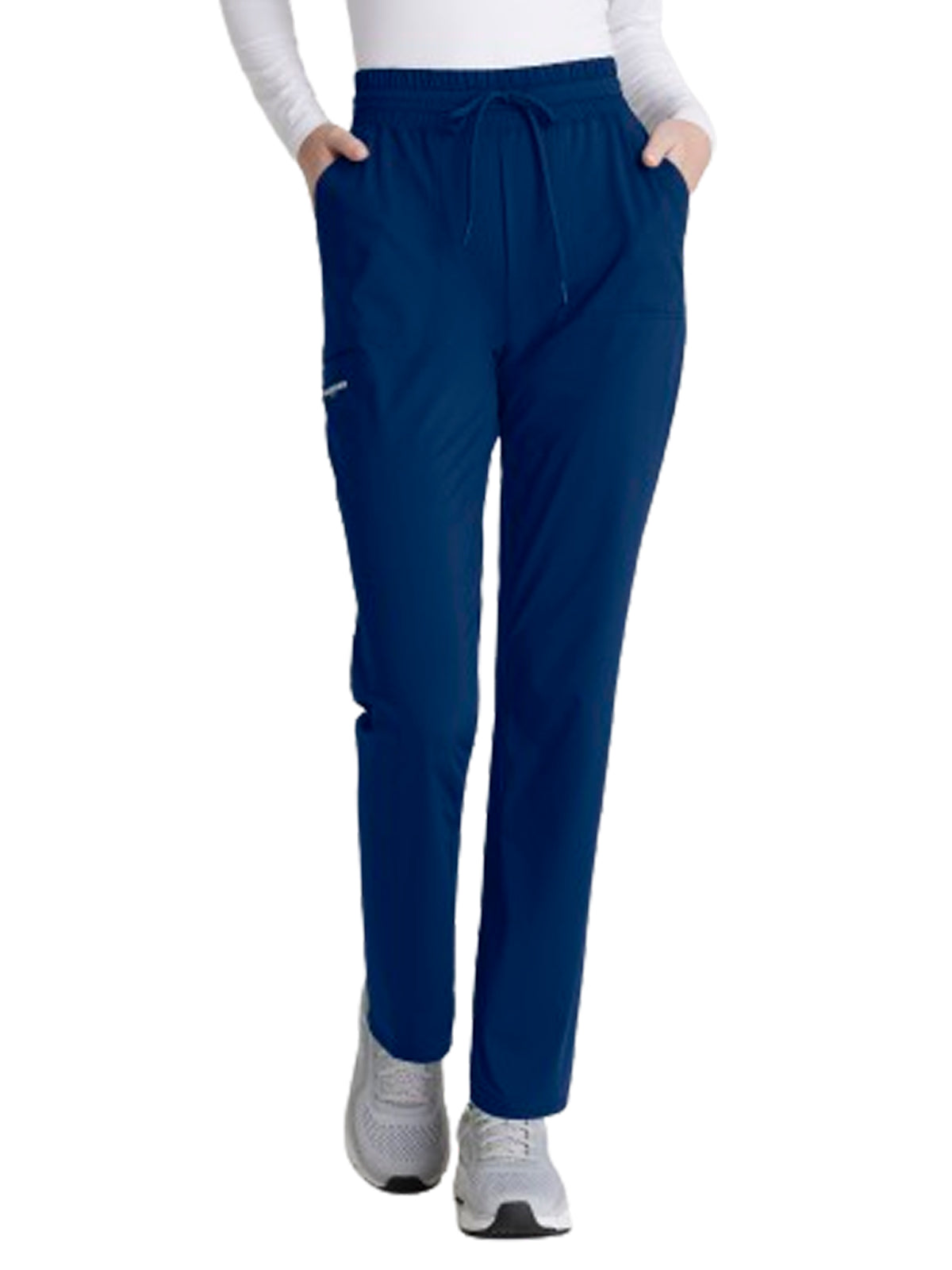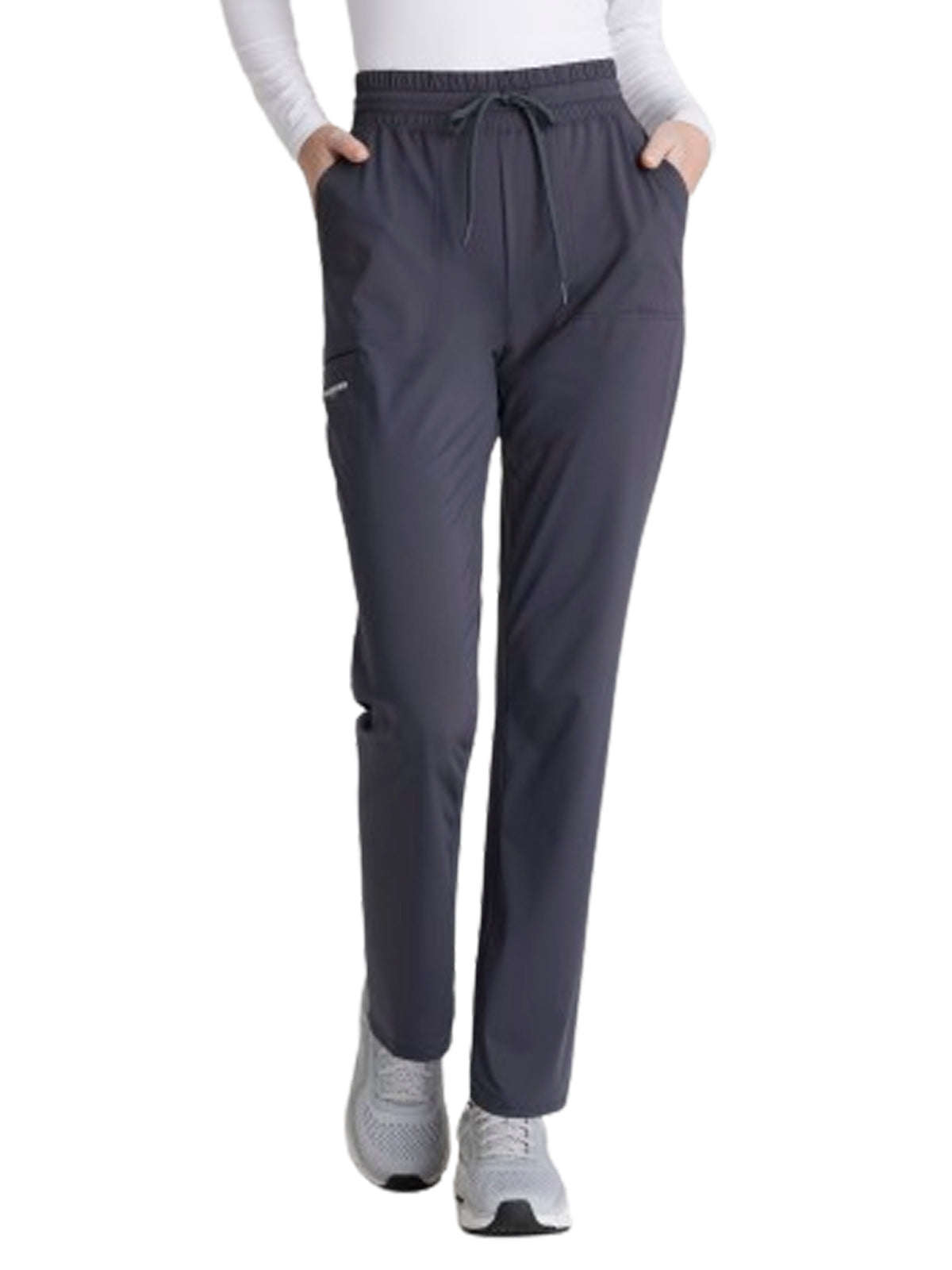 Welcome to the comfort zone with Skechers Slip-in's by Barco Reach Pants. Featuring our innovative Comfort Knit fabric, these pants are crafted for durability and flexibility with a high-stretch nylon and spandex, giving you the feel of your favorite athleisure wear. With four pockets, a shirred elastic waistband, slanted front pockets with shadow topstitching, as well as moisture wicking, they offer both functionality and flair.