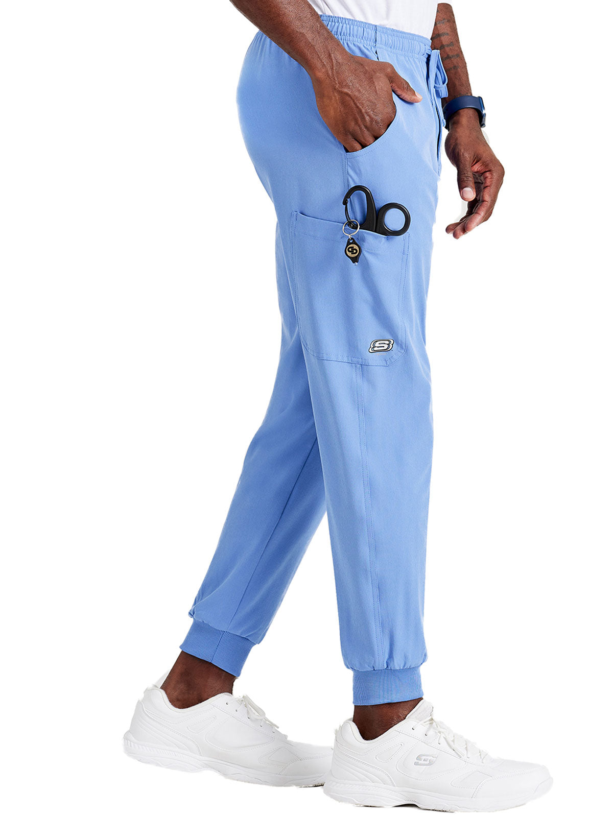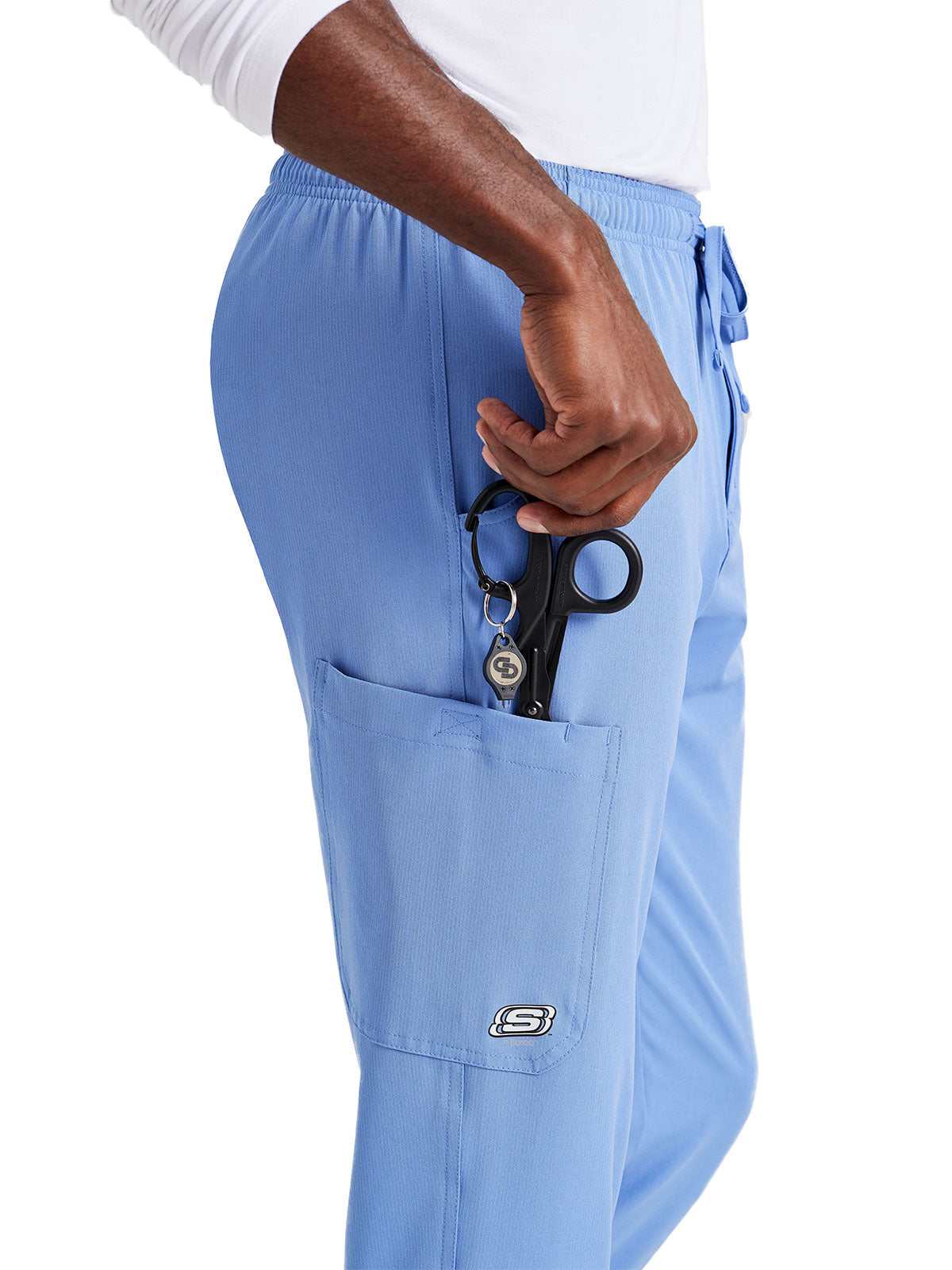 A total of three pockets are attached to Skechers Scrub Pant. The two of the pockets are the side curved pocket, which is also called normal pockets. These pockets are used to carry small items like keys, Handkerchiefs, business cards, etc. These side pockets are also used to keep your hand in the pocket to look more stylish and attractive. The one pocket is a cargo pocket on which the logo of Skechers is also made.