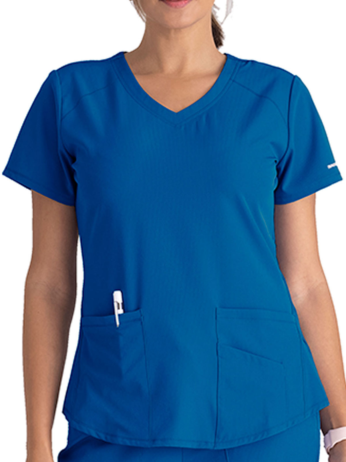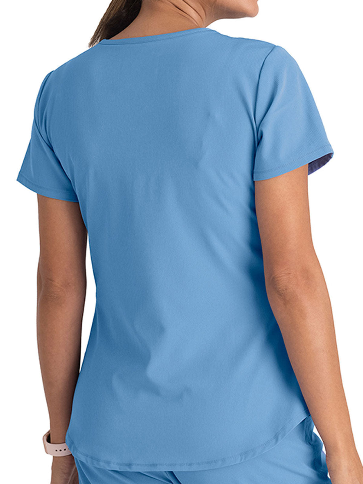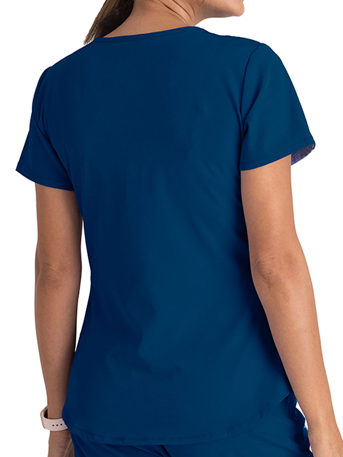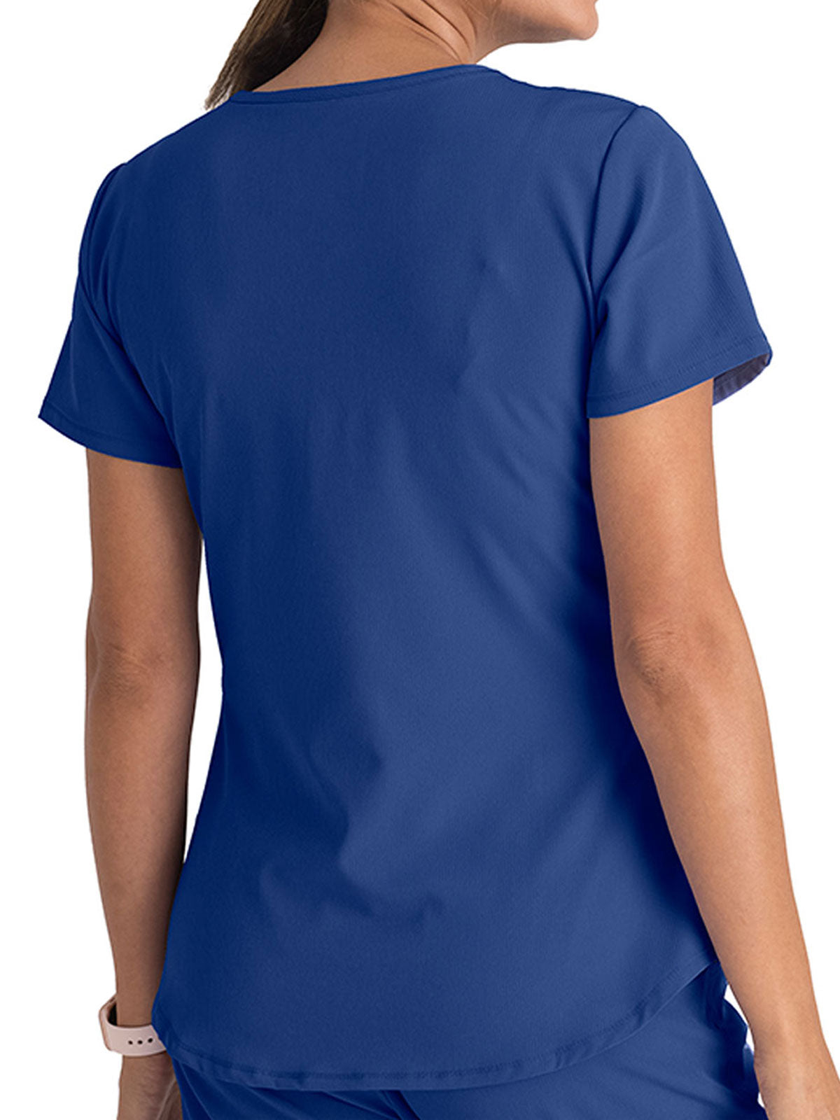 The flattering modern fit of this scrub top is designed to boost your confidence, allowing you to feel and look your best while providing exceptional care to your patients.