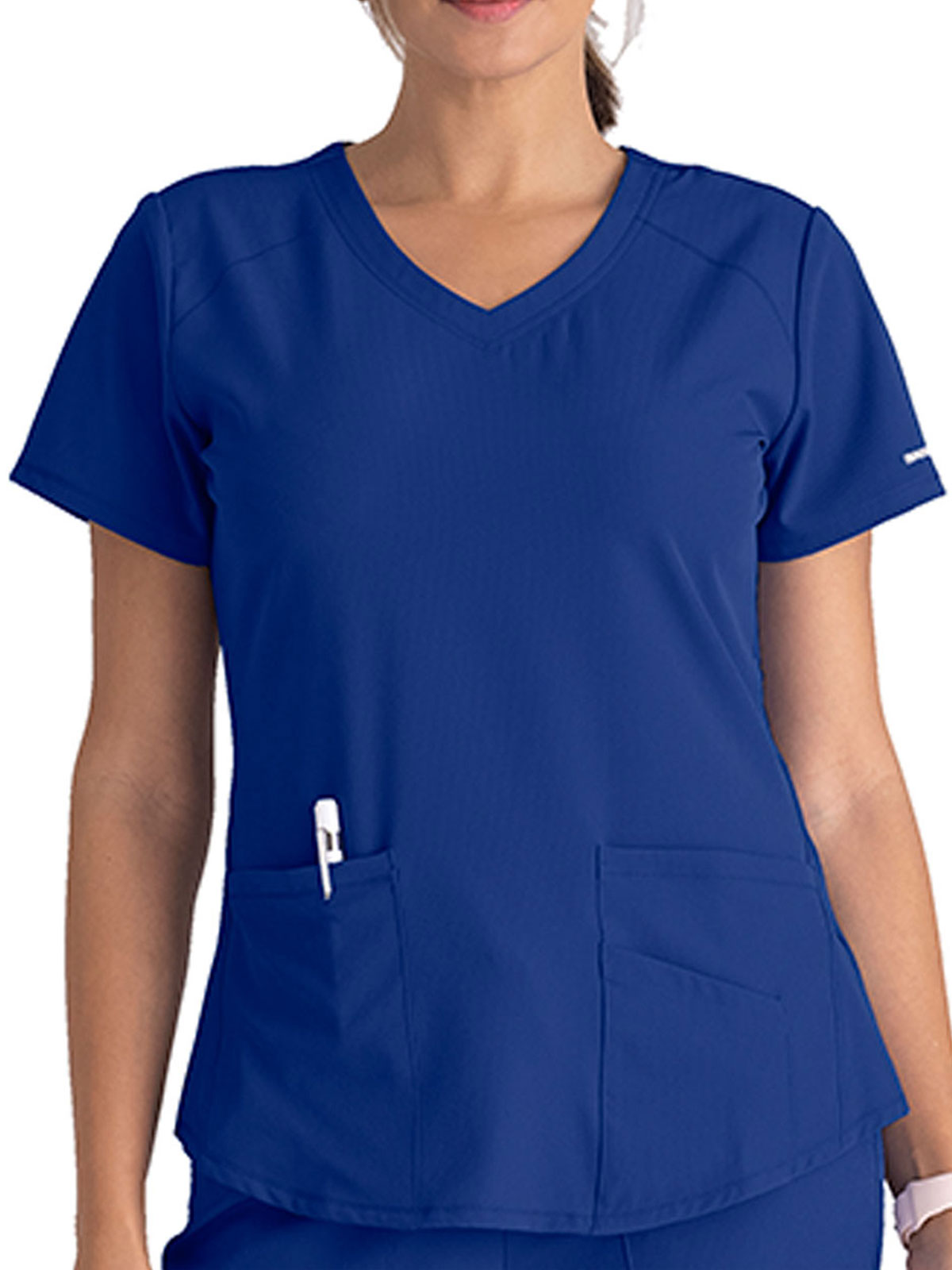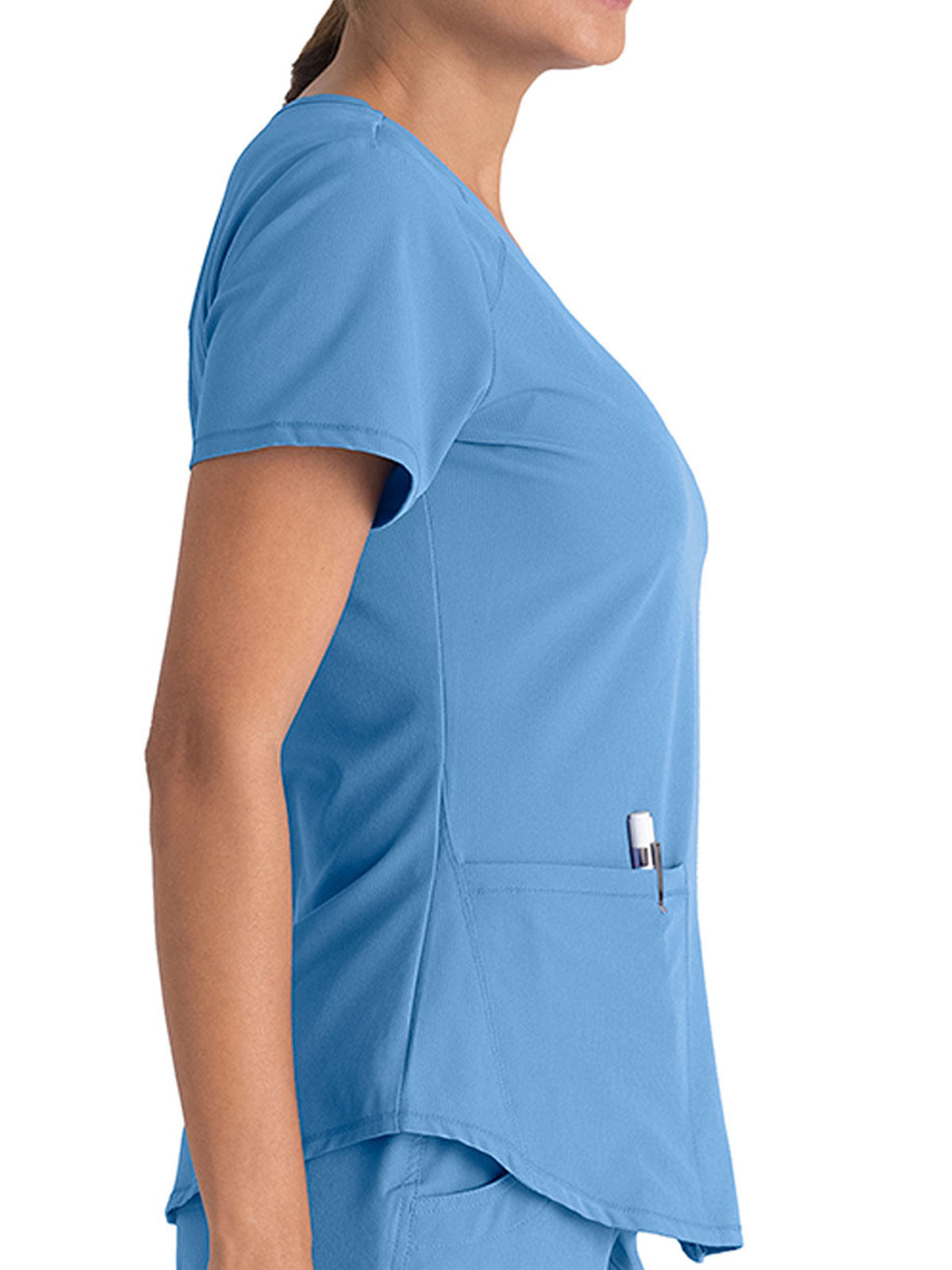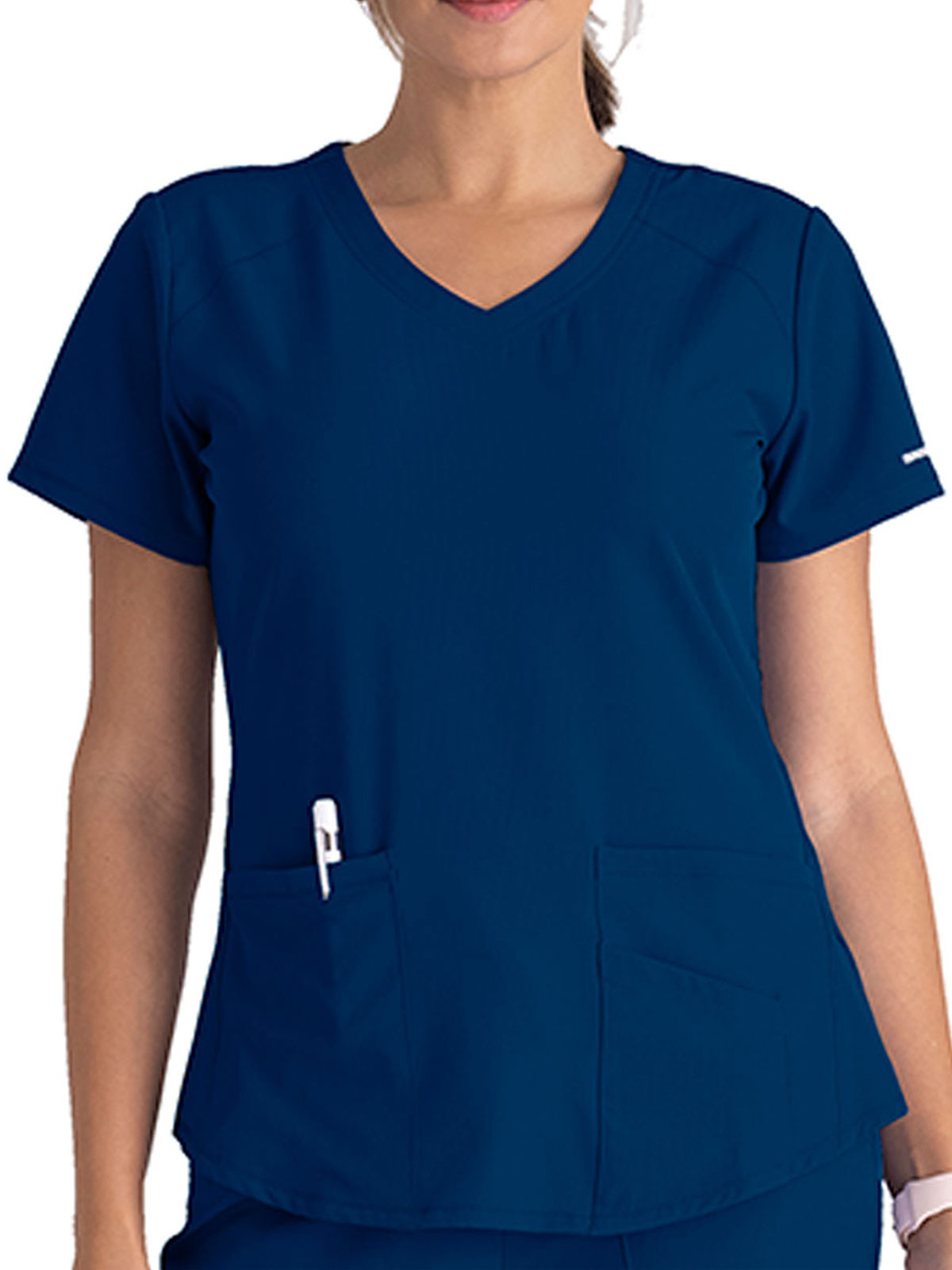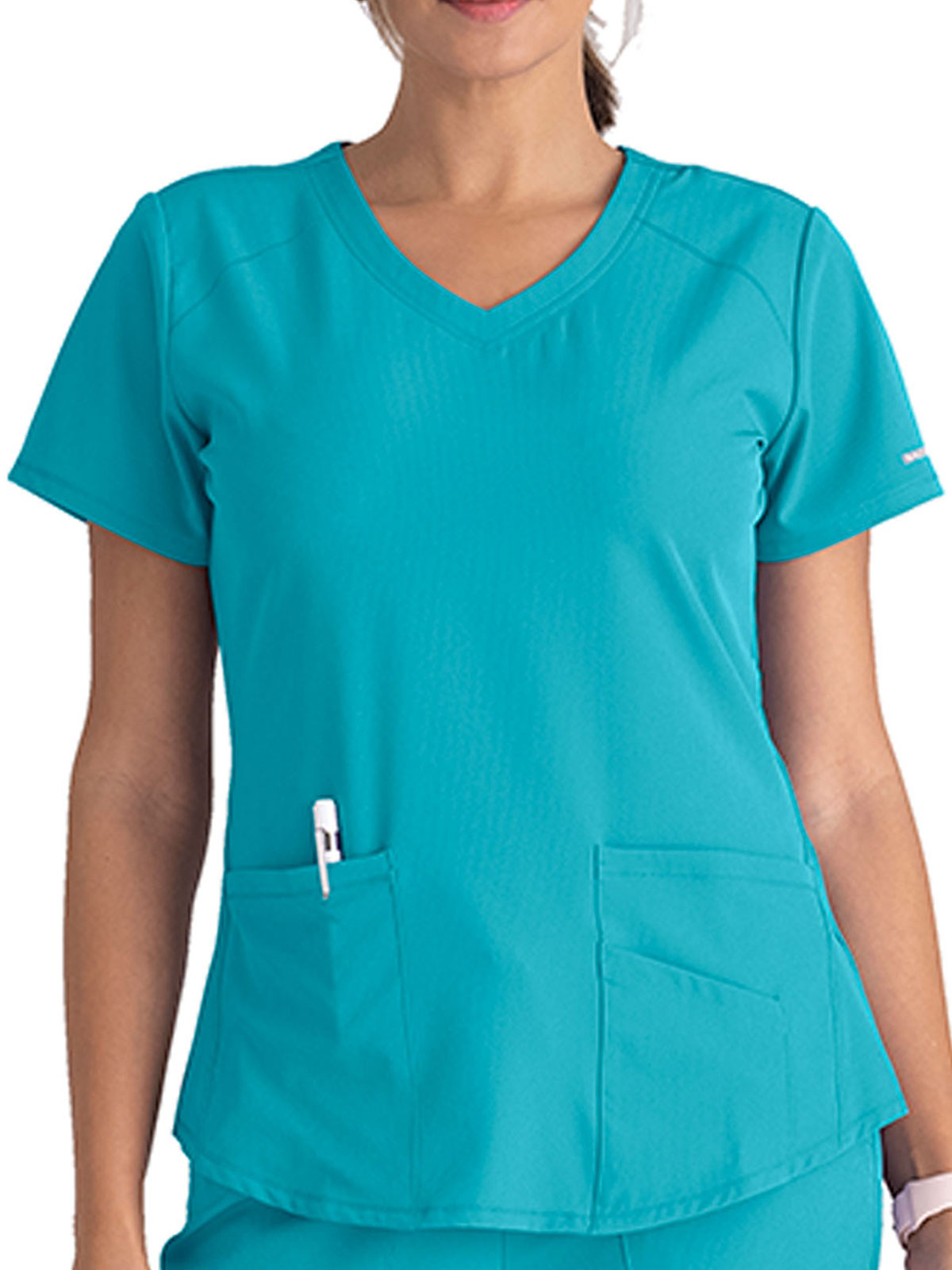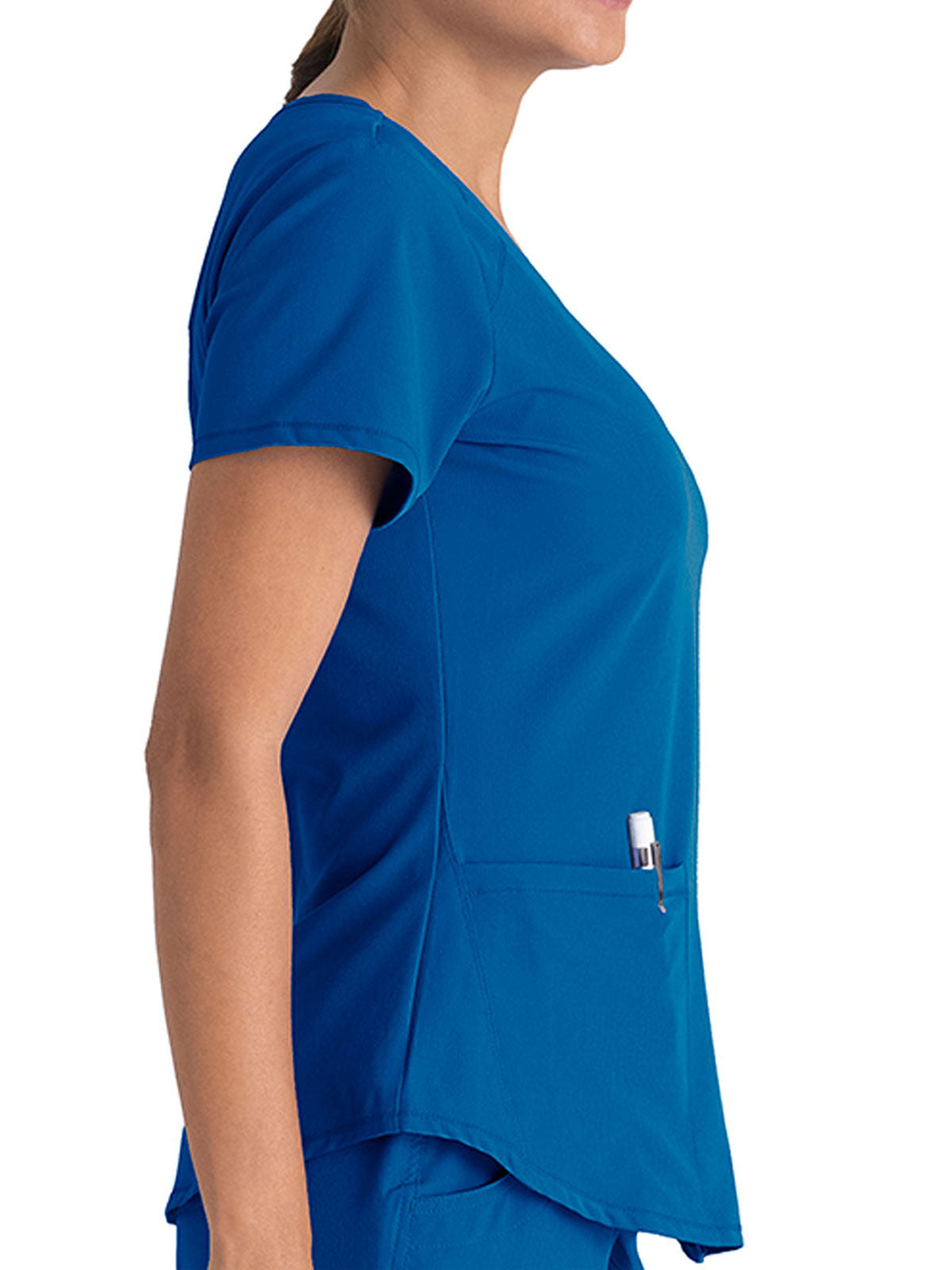 The flattering modern fit of this scrub top is designed to boost your confidence, allowing you to feel and look your best while providing exceptional care to your patients.