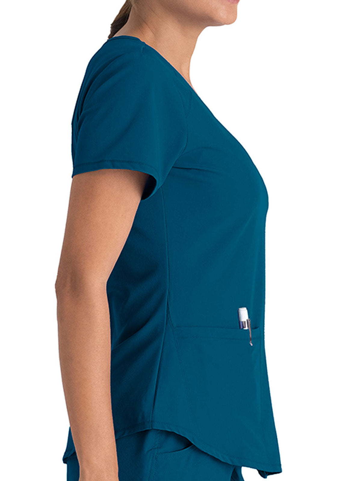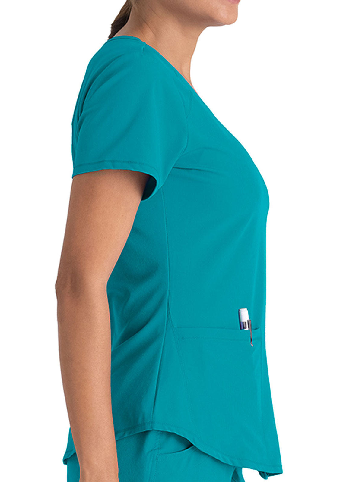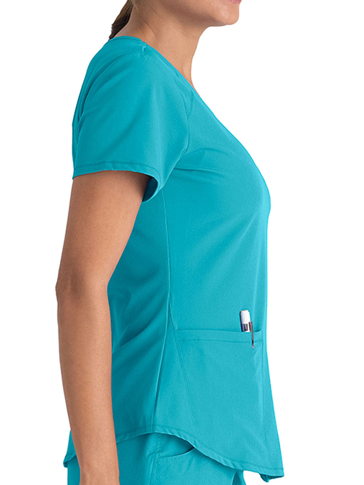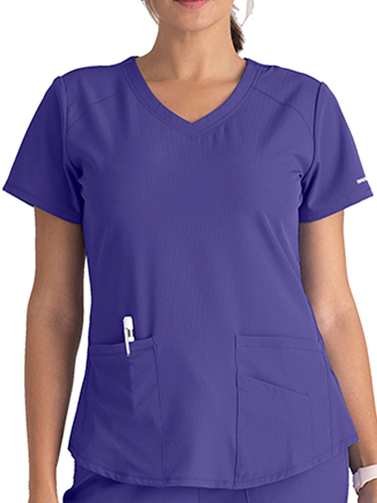 The flattering modern fit of this scrub top is designed to boost your confidence, allowing you to feel and look your best while providing exceptional care to your patients.