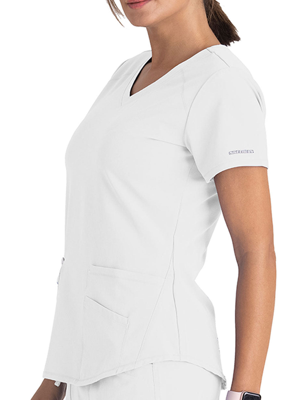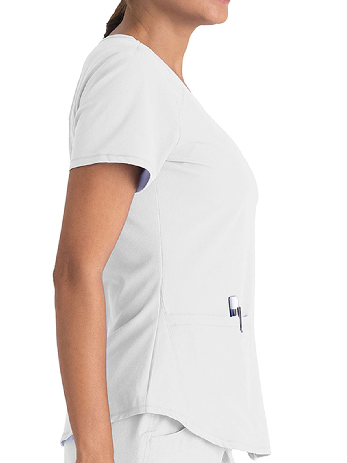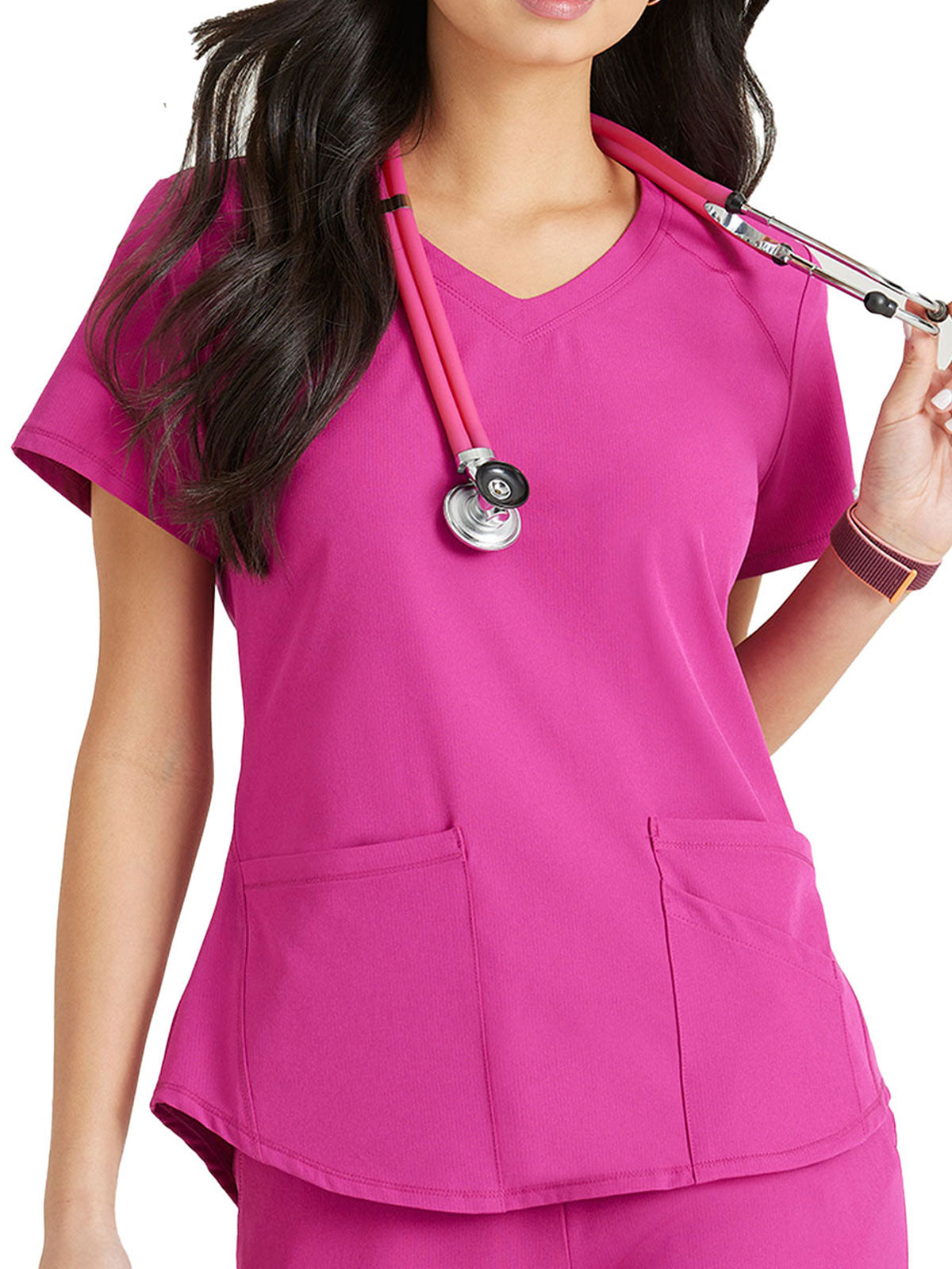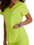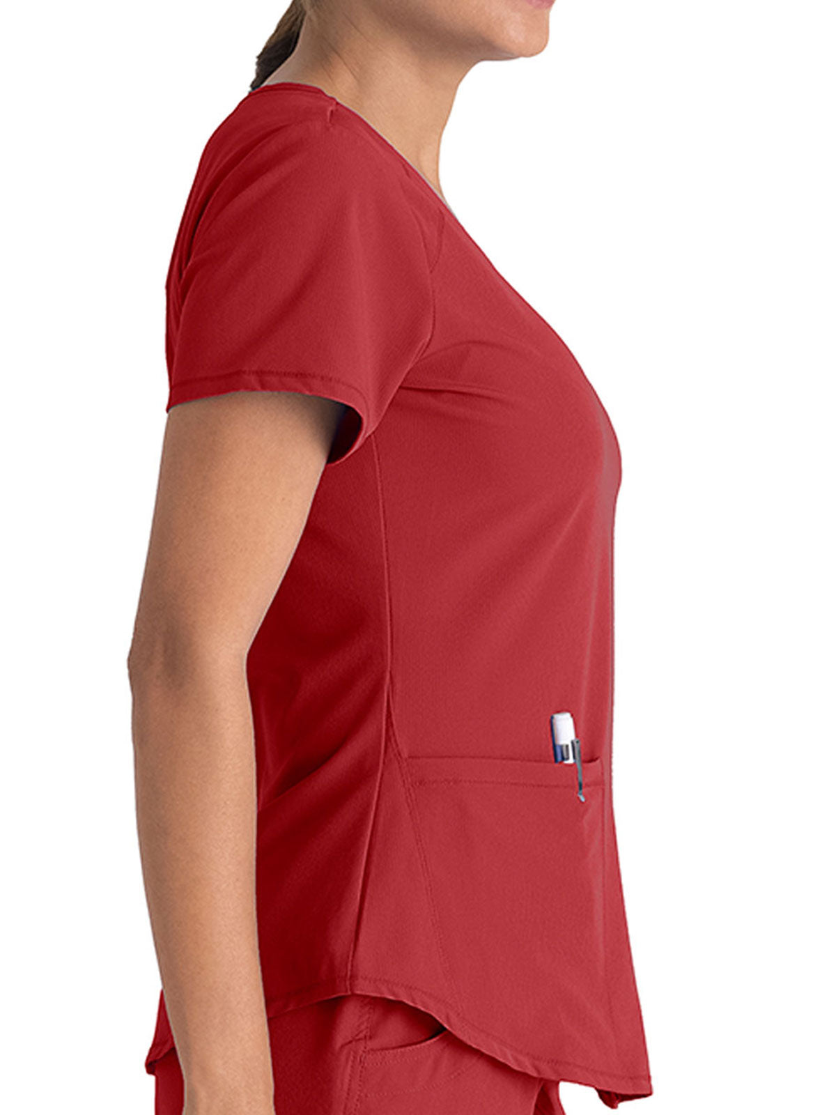The flattering modern fit of this scrub top is designed to boost your confidence, allowing you to feel and look your best while providing exceptional care to your patients.