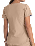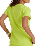 The V-neck design adds a touch of elegance and modernity to this scrub top. It sets it apart from traditional scrub tops and gives a professional and stylish appearance.