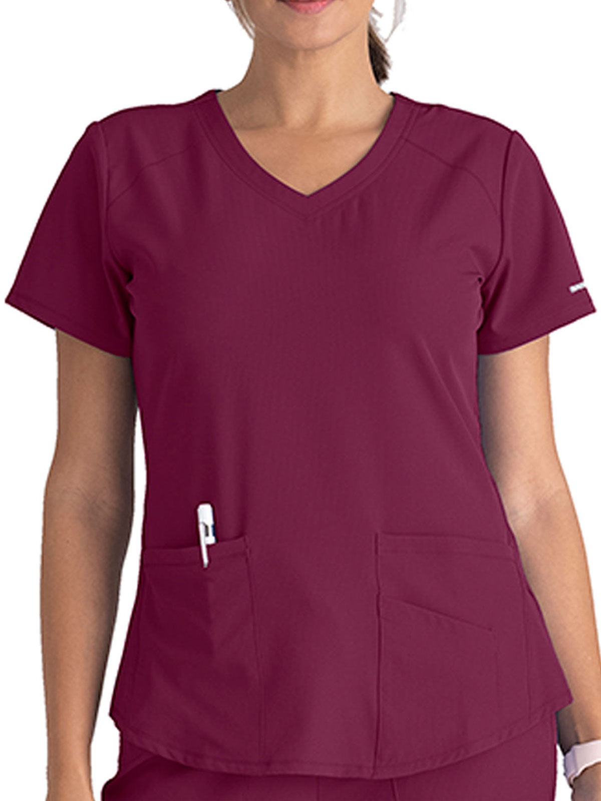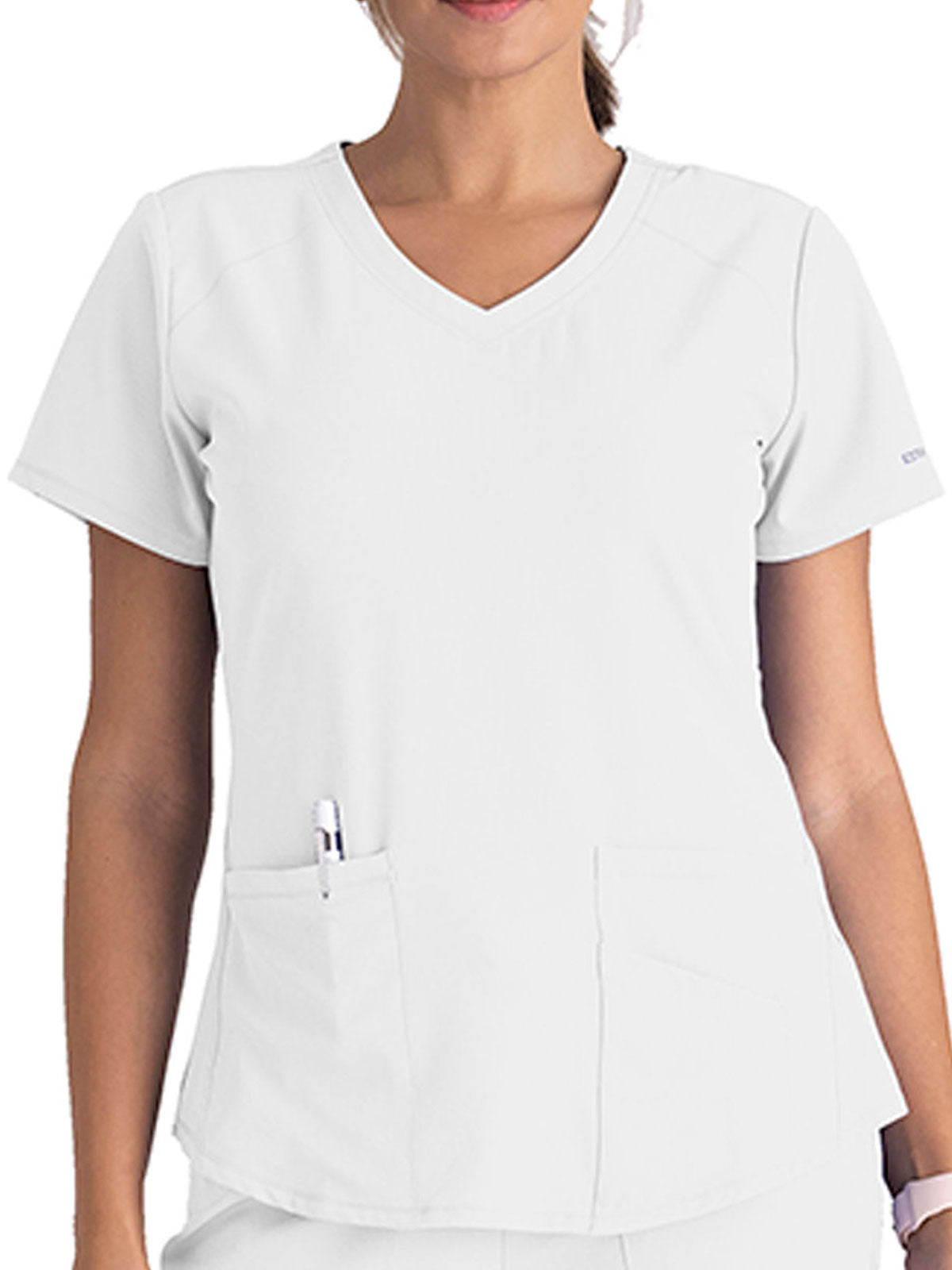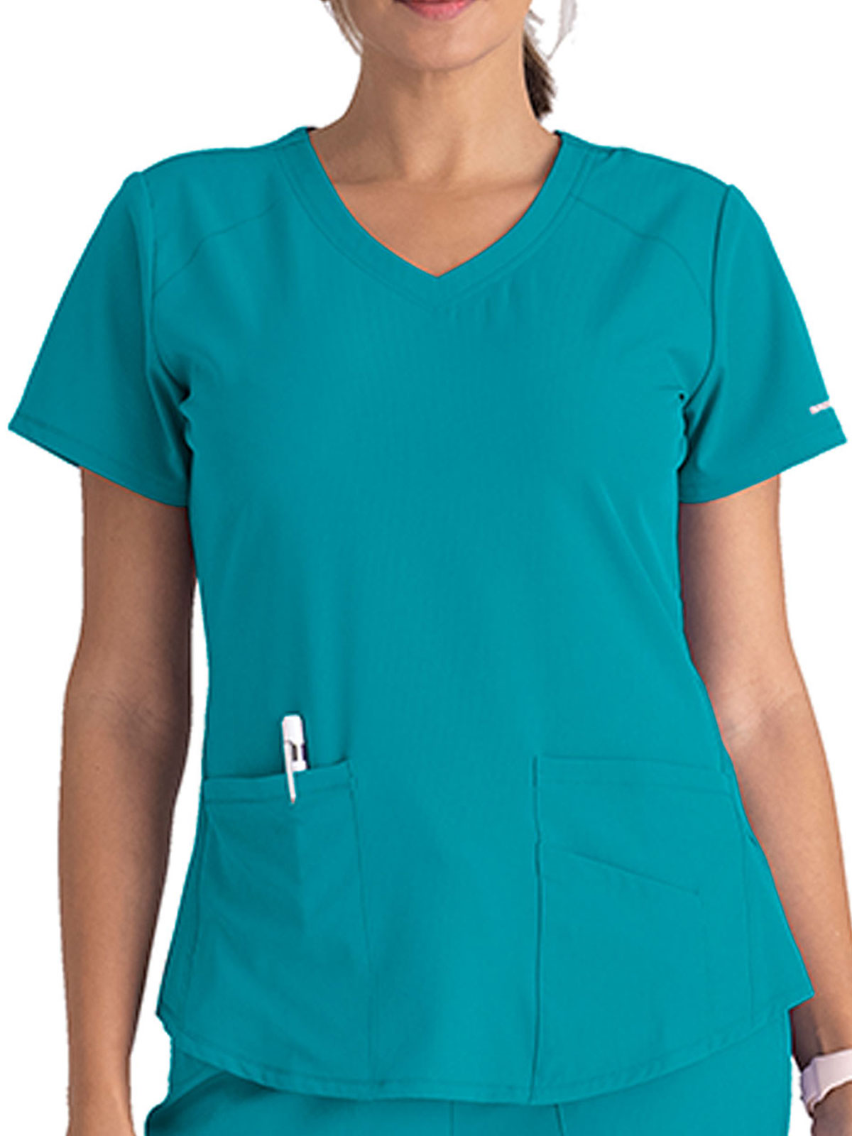 The flattering modern fit of this scrub top is designed to boost your confidence, allowing you to feel and look your best while providing exceptional care to your patients.