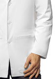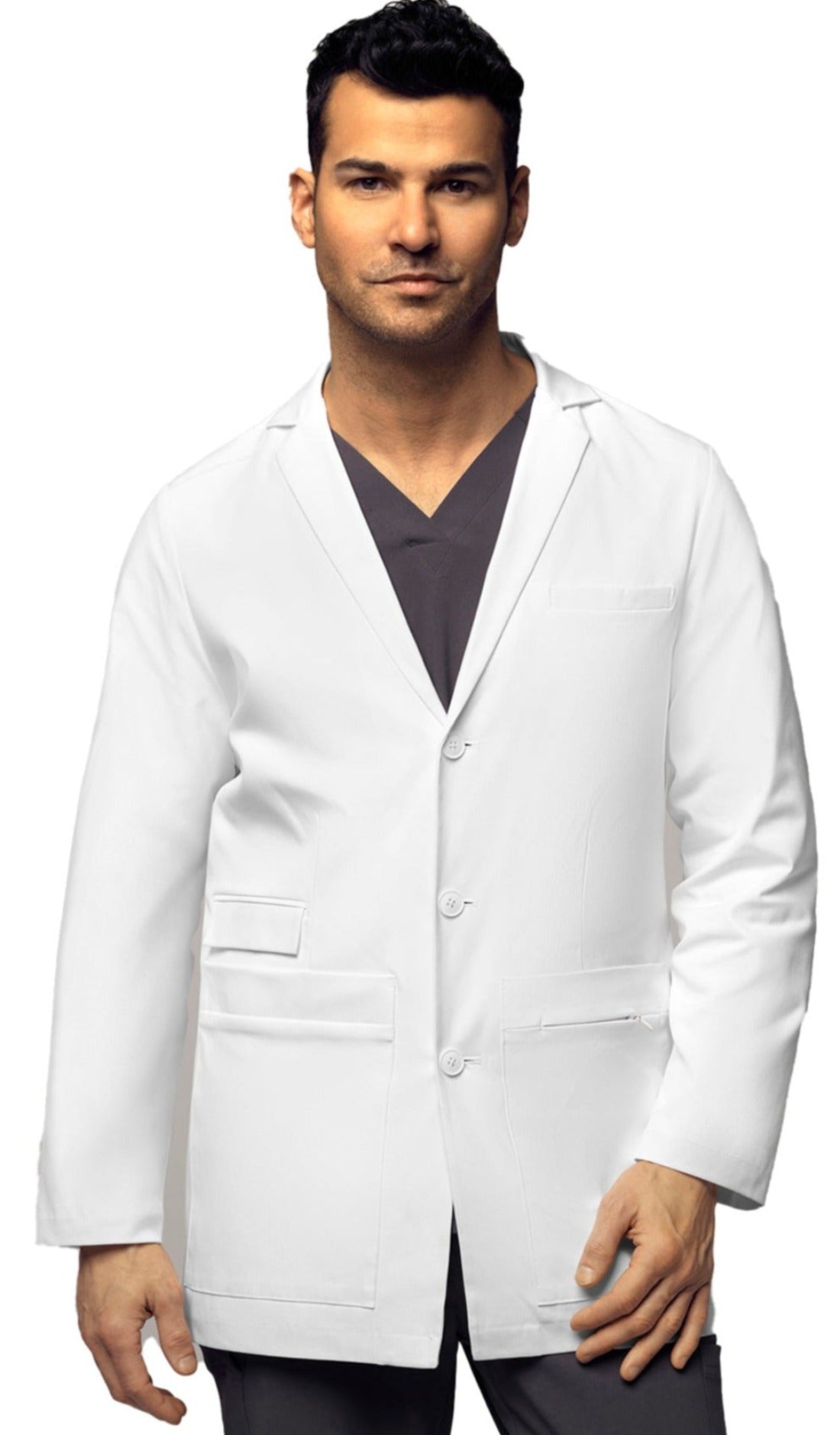 Suiting-inspired style meets ultimate utility in the Slate by WonderWink Men's 34" Welt Pocket Lab Coat. Superior tailoring and refined details give you the polished look you want, while several inner and outer pockets offer functionality you need.