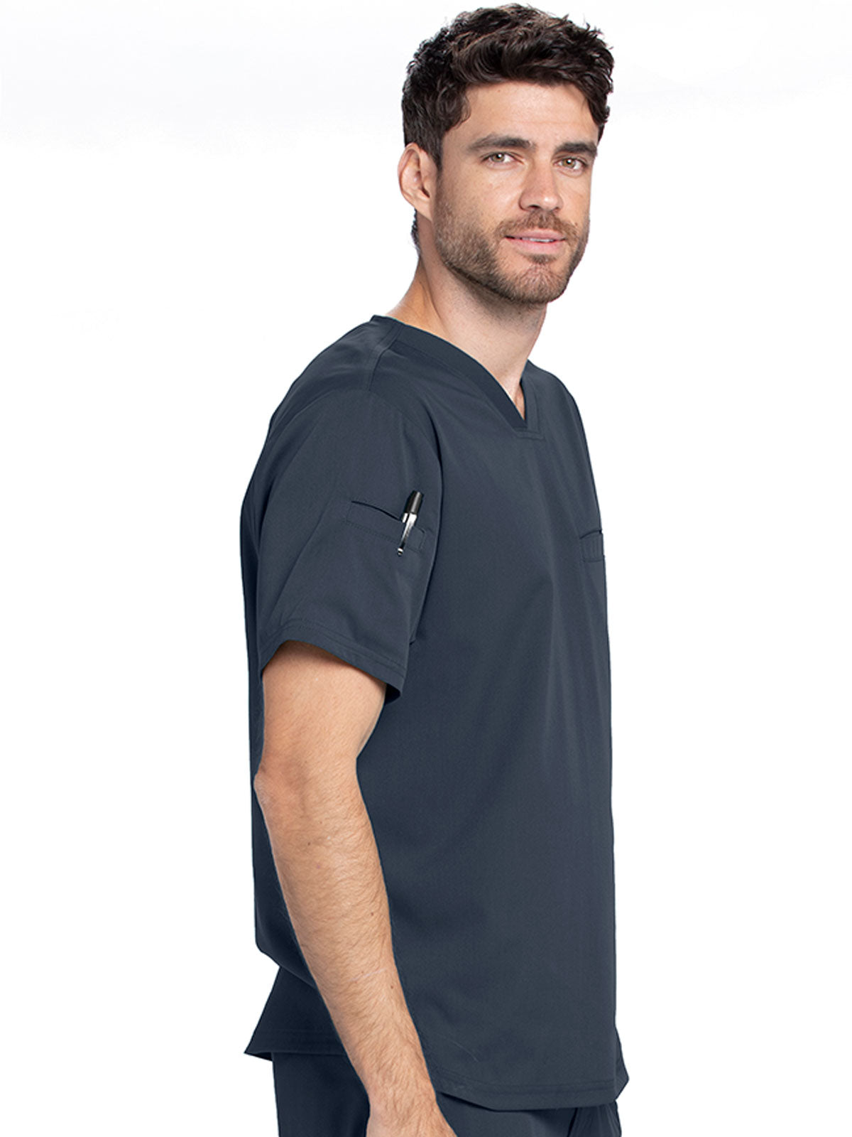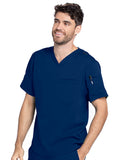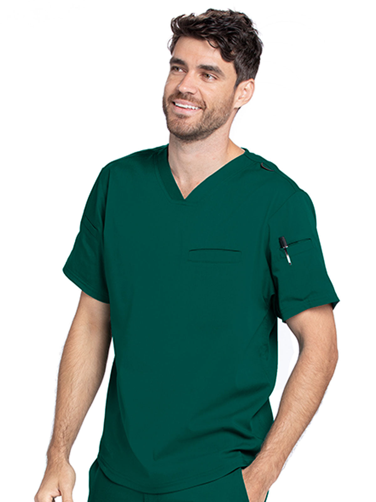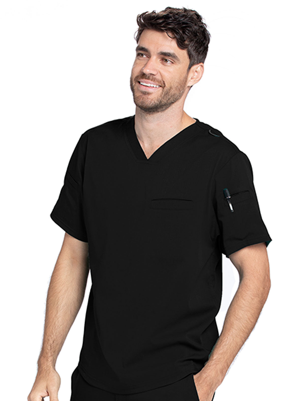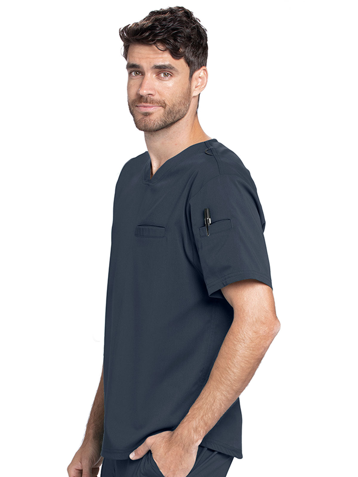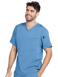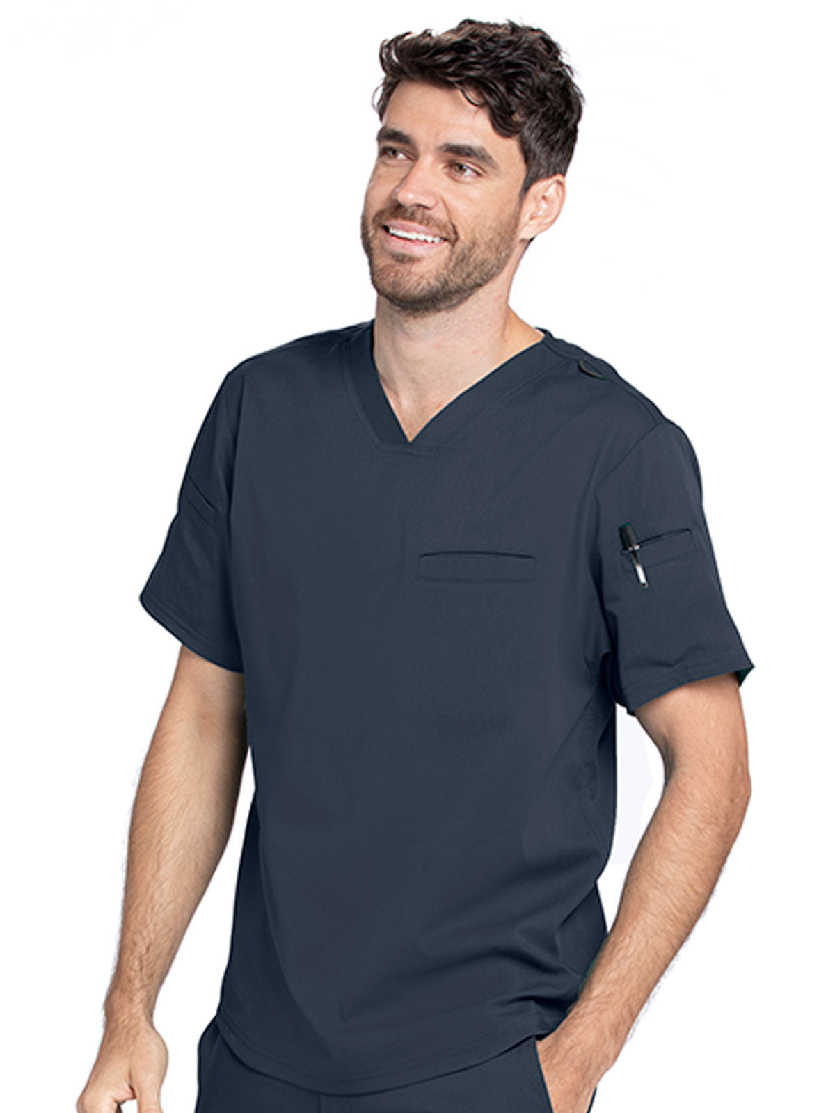 Long days of seeing patients calls for comfort you can count on. This men's Grey's Anatomy + SpandexStretch scrub top is made with soft fabric that moves with you. Trauma shears to gel pens, convenient pockets on the chest and sleeves keep your gear close and available.