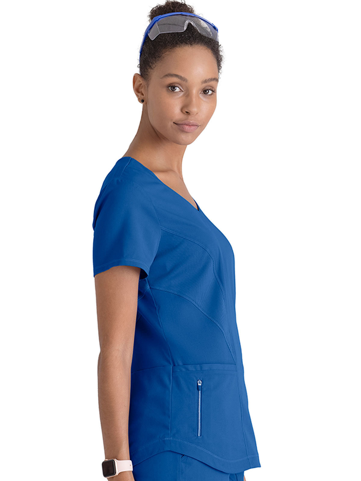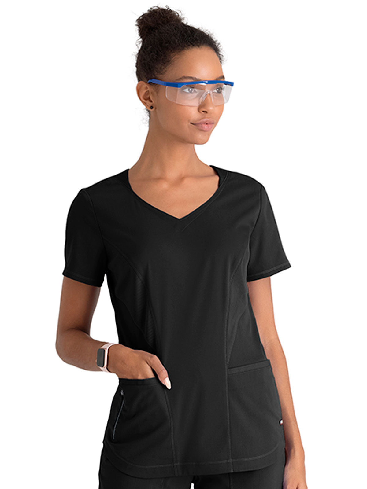 The Spandex Stretch Women's Antimicrobial Sport Neck Carly Scrub Top, a flexible addition to your workwear grey anatomy collection, is now available. This contemporary scrub top blends comfort and style. It is intended to provide healthcare professionals with a dependable and functional solution for their busy days. With an emphasis on both performance and fashion, this scrub top has a sleek and athletic style that flatters a variety of body types. Whether working in a busy hospital or a clinical setting, the Spandex Stretch Carly Scrub Top will keep you comfortable and confident during your shifts. Also, grey's anatomy scrubs sale offers you discounts too.