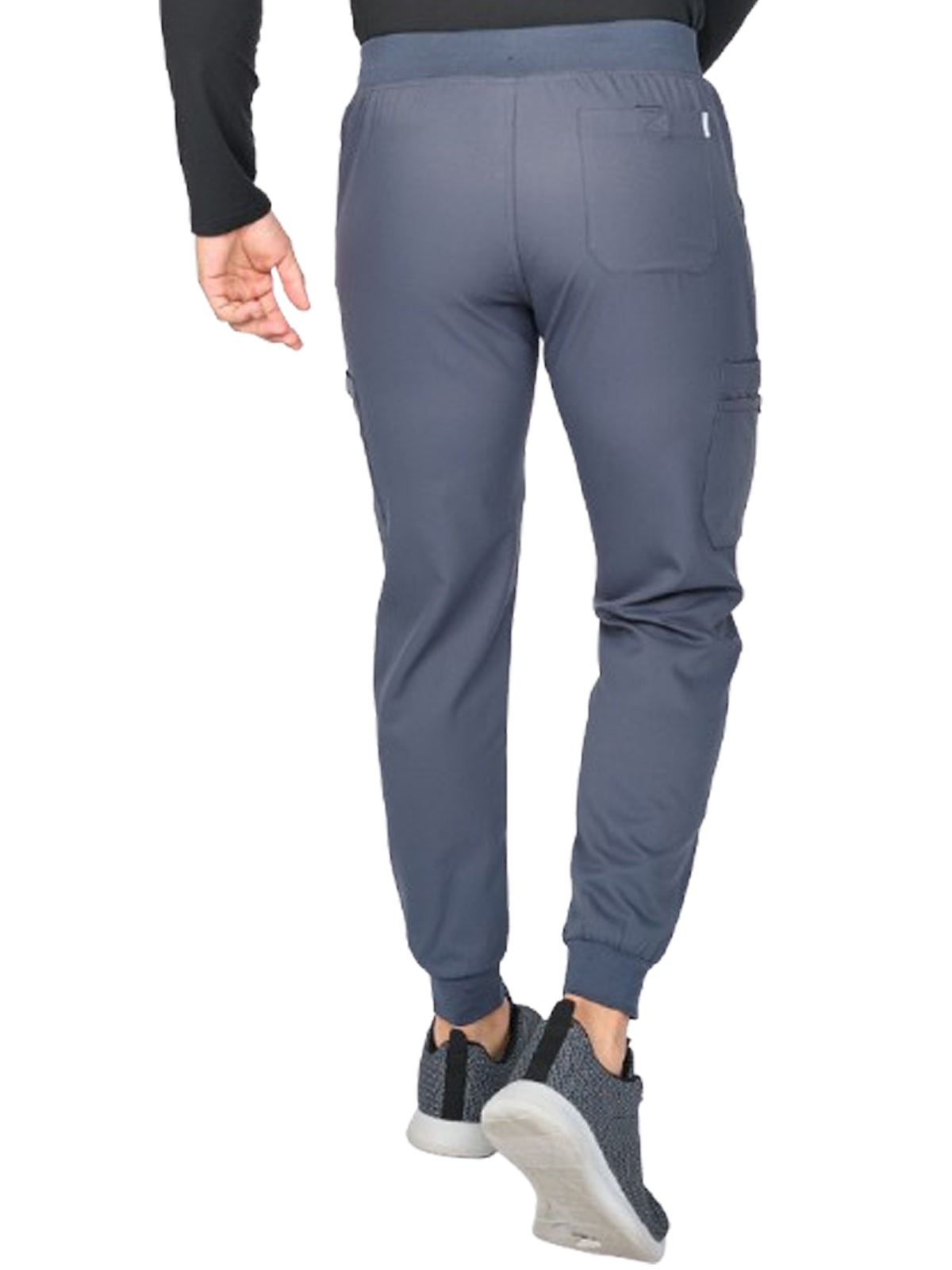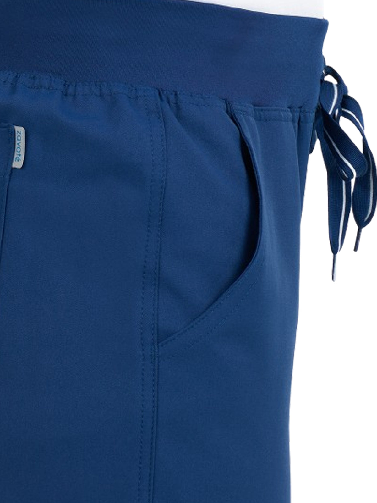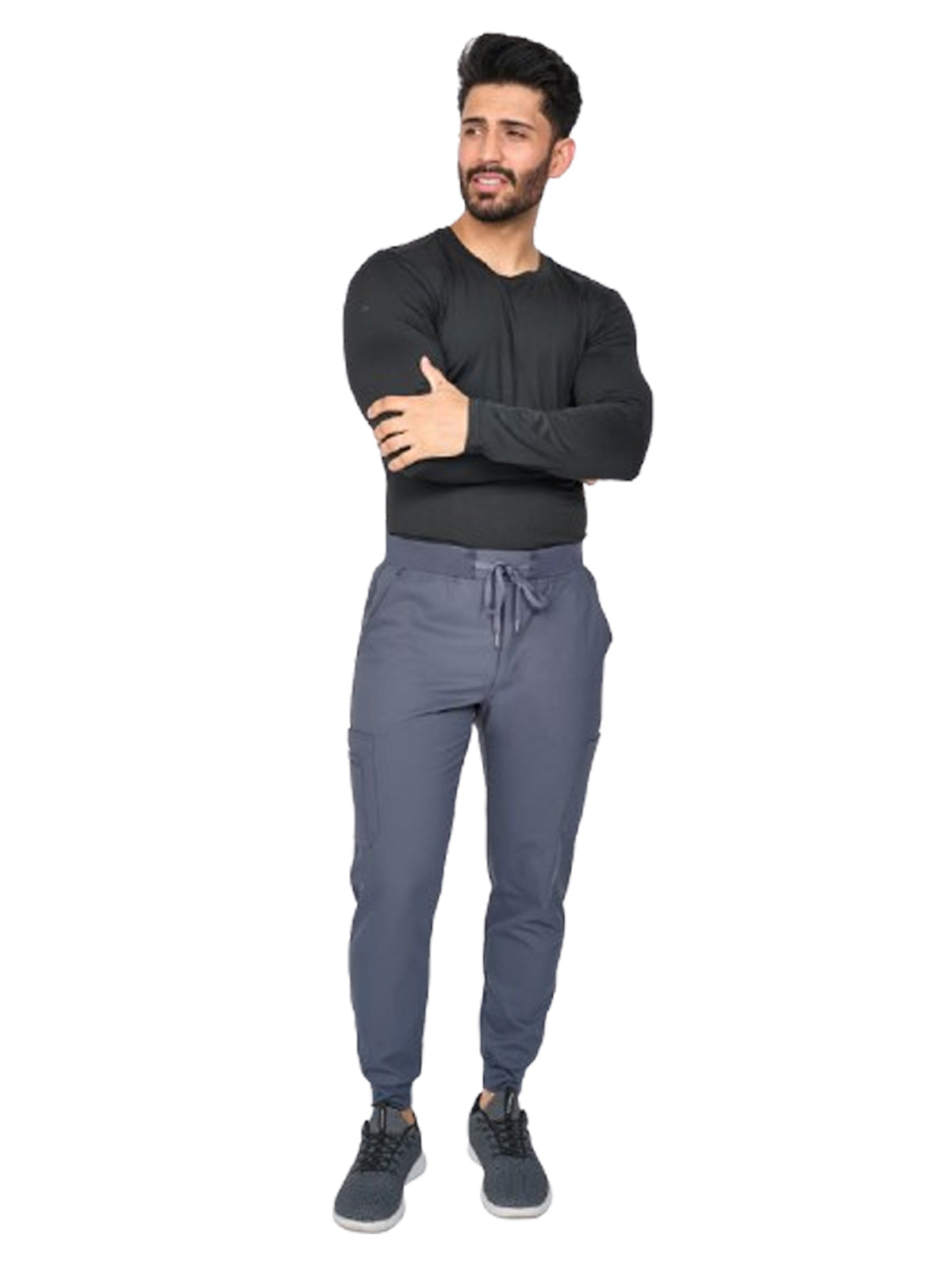 Extra layered pocket with triple needle detail and elastic bungee on wearer’s right cargo pocket