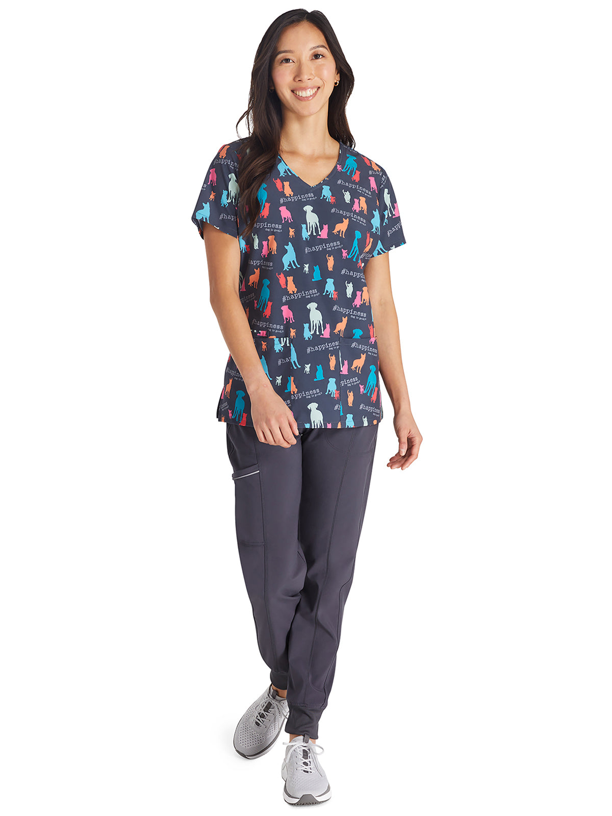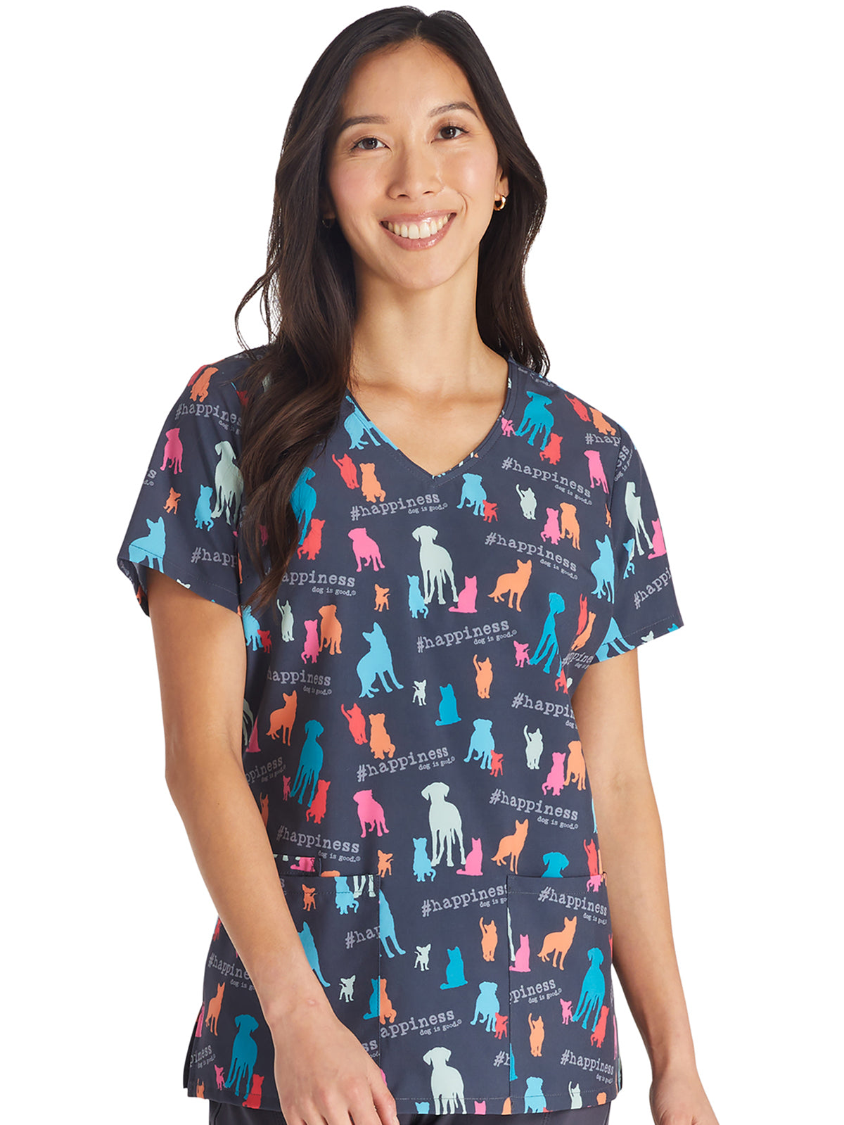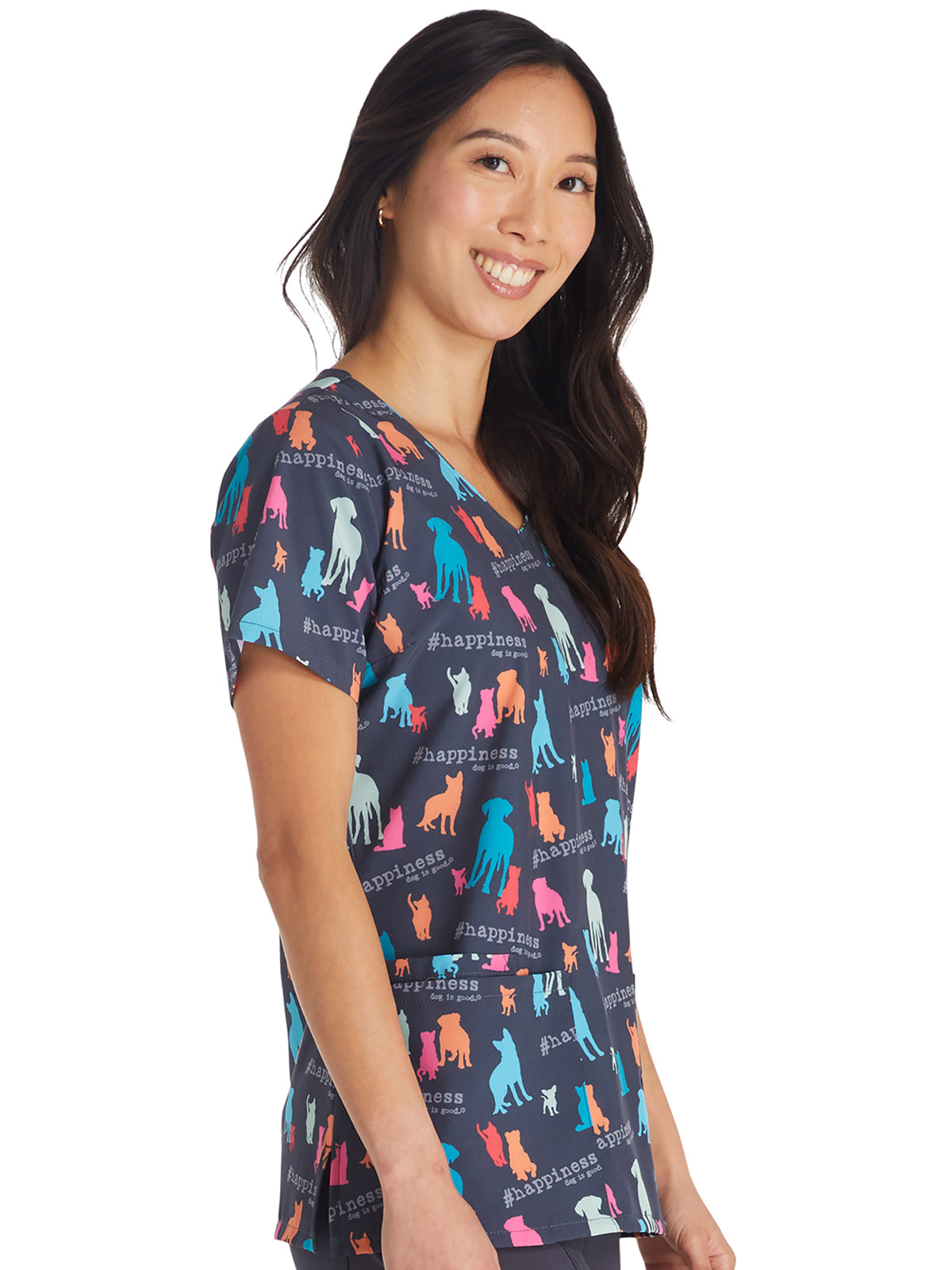 Tooniforms - Women's Hashtag Happiness V-Neck Print Top