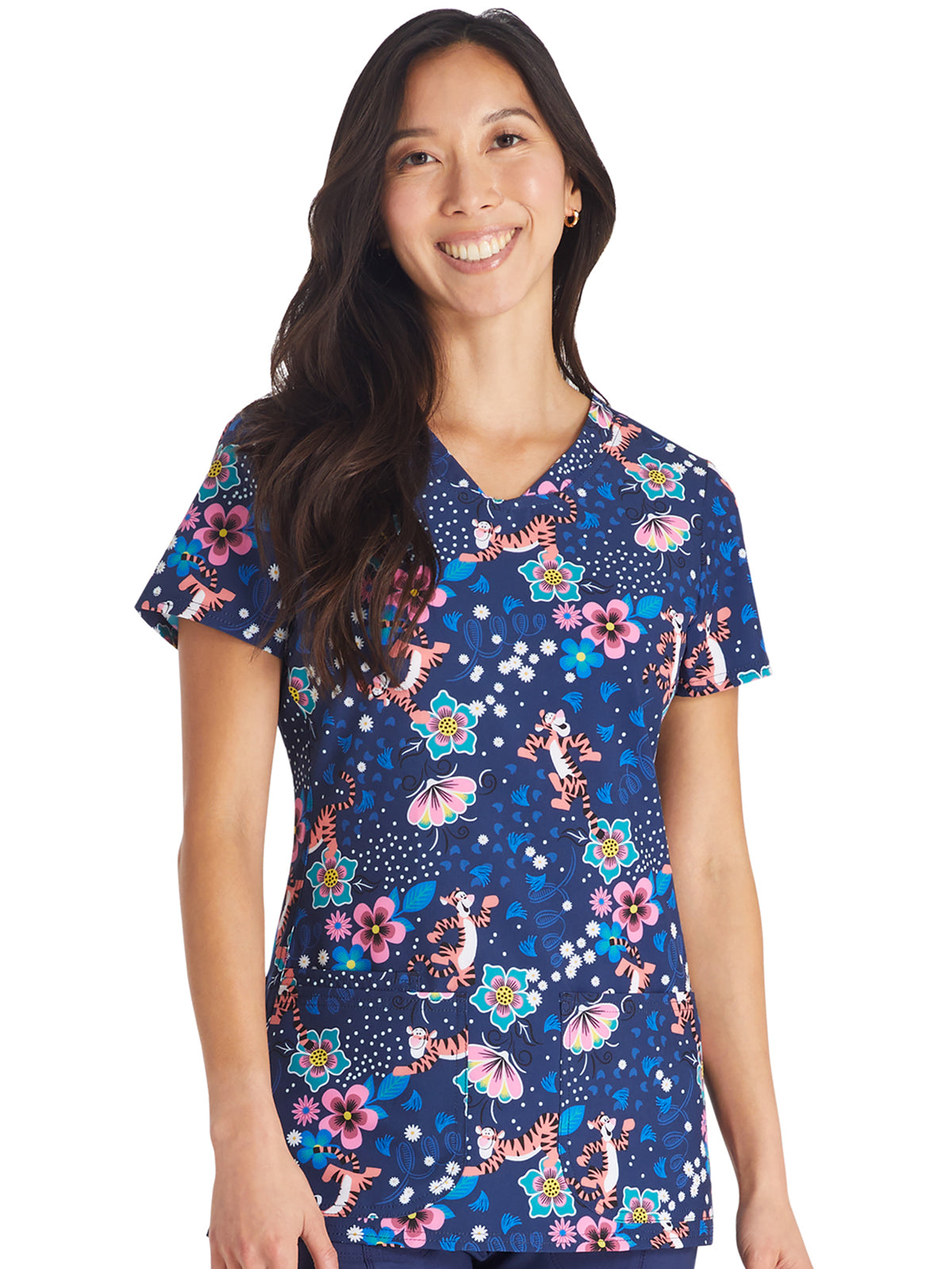 Tooniforms - Women's Tigger Bounces V-Neck Print Top