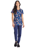This v-neck print top features a contemporary fit, front and back princess seams, two front patch pockets, one utility pocket on the wearer's right side, and side vents.