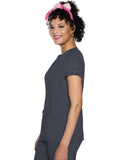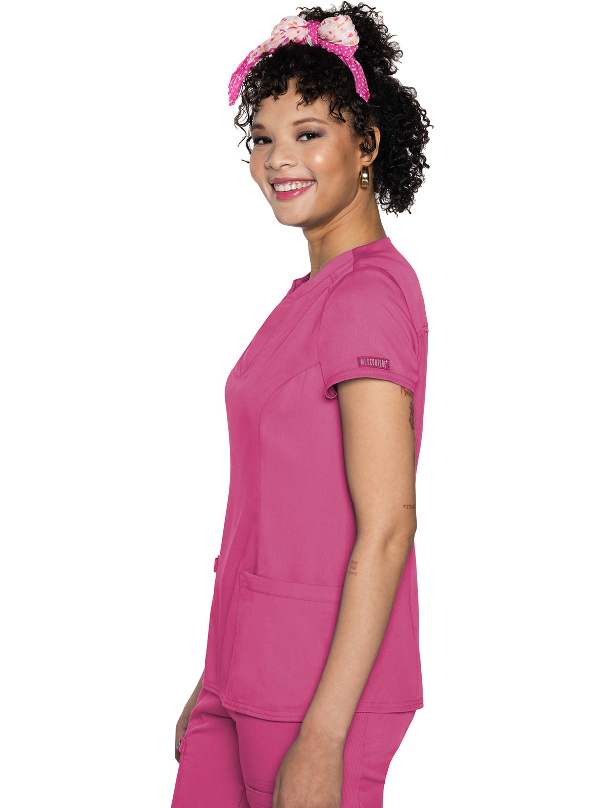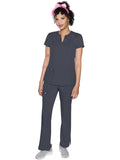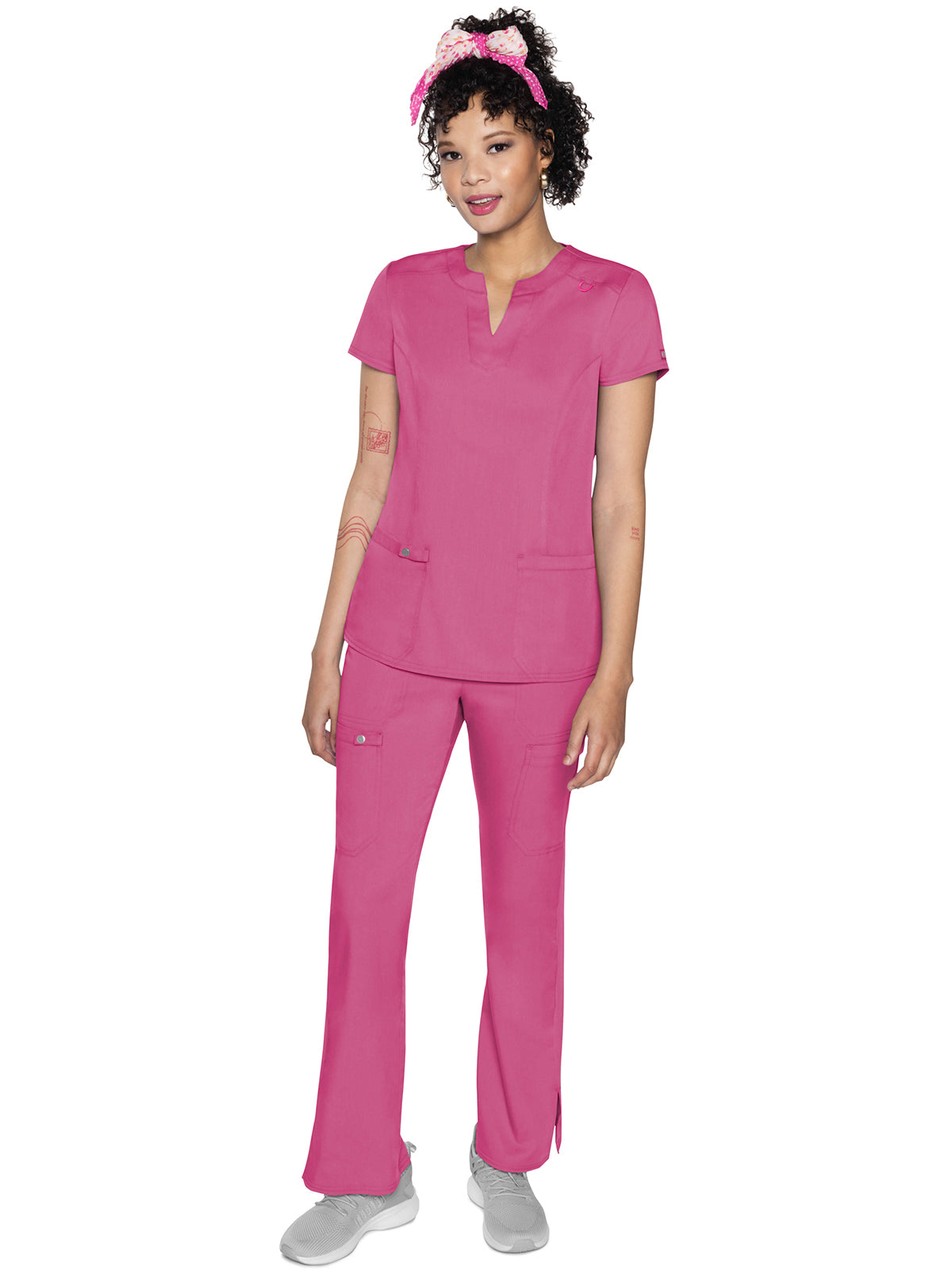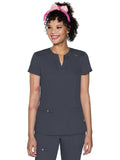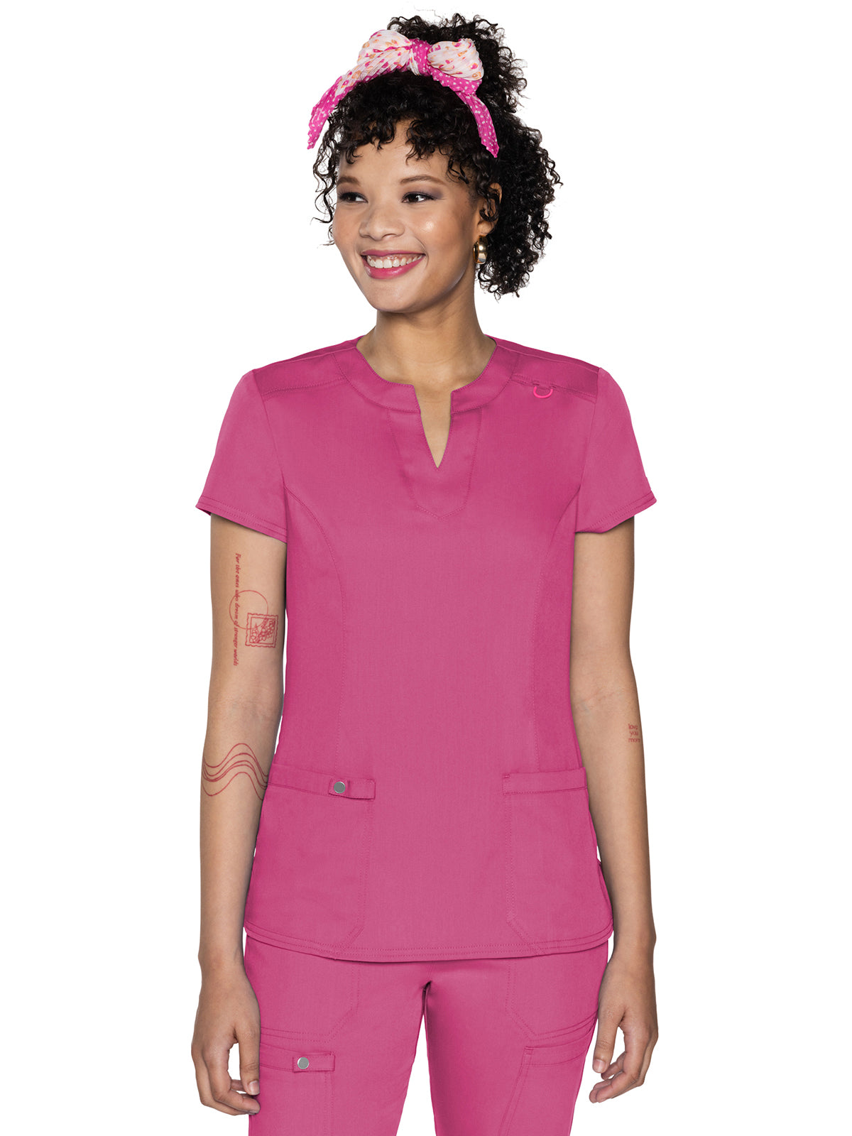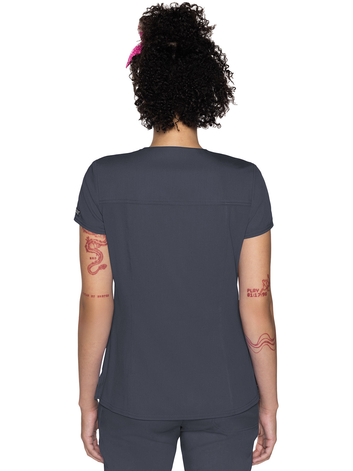 The Split Round Neck Top is an enduring style. It's crafted with a split crew neck, front shoulder yokes, back yoke, and princess seams. There's plenty of storage with two patch pockets, a utility tab for tools or pens, and a bungee ID badge loop on the wearer's left shoulder. The rib-knit back side panels help to create a flattering shape while the side vents allow for ease of movement. Missy fit. Center back length: 25 ½"